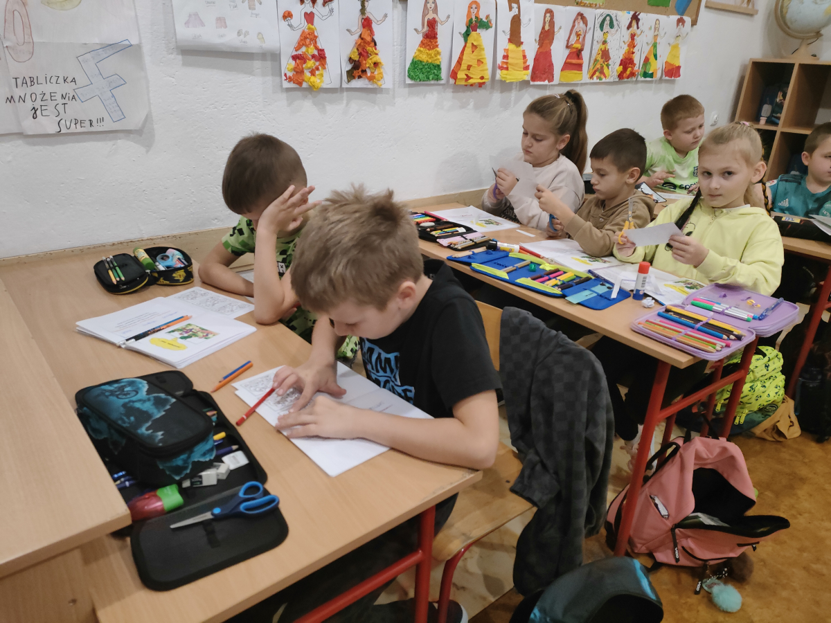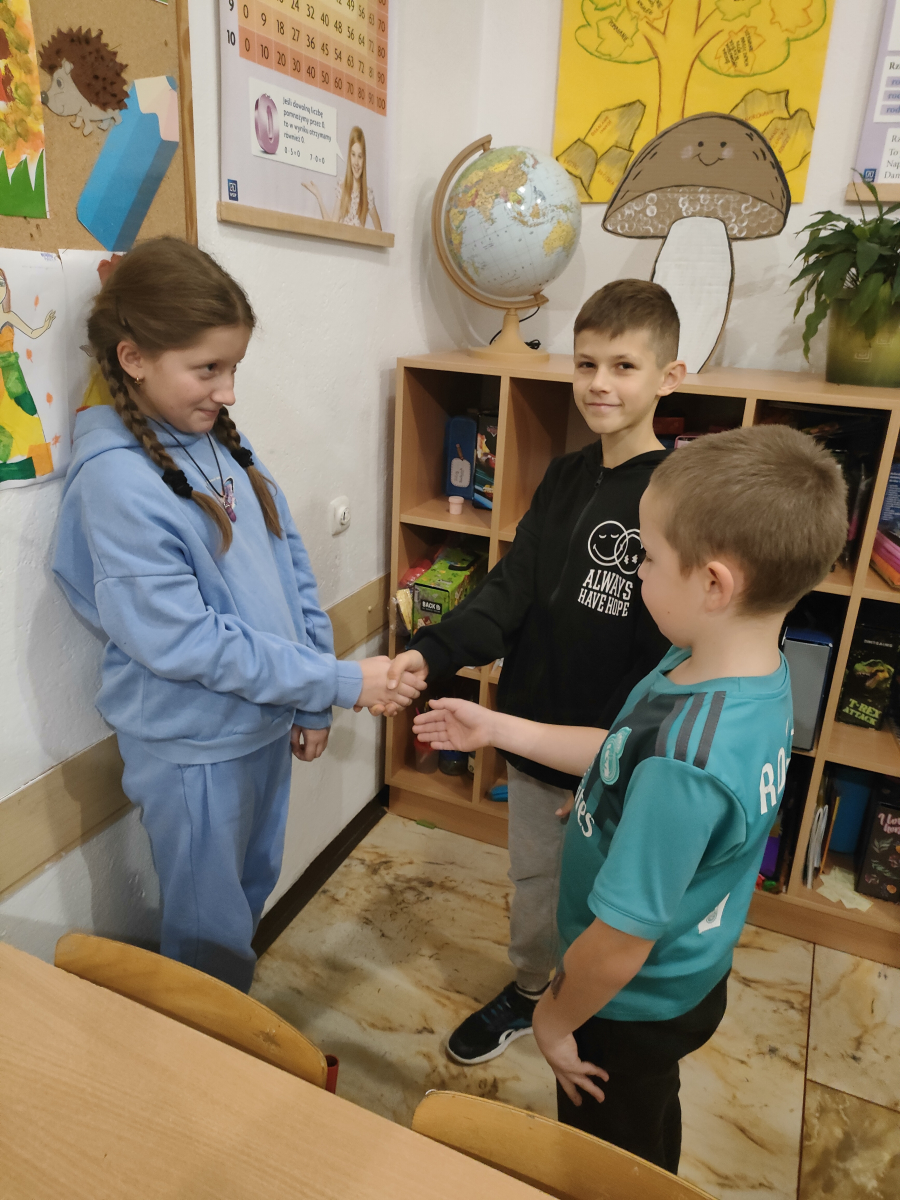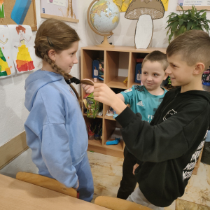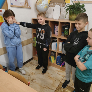 17 października 2025 roku w klasach I – III odbyła się lekcja biblioteczna pod hasłem „Czarodziejskie słowa w książce i życiu”. Uczniowie wysłuchali z uwagą opowiadania pod tytułem „Czarodziejskie słowo” autorstwa Walentyny Osiejewy. Wspólnie wyszukiwaliśmy na obrazkach ukryte czarodziejskie słowa oraz rozwiązywaliśmy krzyżówkę. Na koniec naszego spotkania chętni uczniowie wykonali scenkę mimiczną w której za pomocą wyrazu twarzy, ruchów ciała opowiedzieli historię, wyrażając emocje i intencje. W swojej krótkiej scence zostały zawarte magiczne słowa PRZEPRASZAM, PROSZĘ i DZIĘKUJĘ. Mali aktorzy za swoją rolę uzyskali od swoich kolegów i koleżanek gromkie brawa. Niech magiczne, czarodziejskie słowa zawsze nam towarzyszą a dodatkowo uzupełnienie miłym uśmiechem, pomocną dłonią sprawią, że codzienność stanie się lepsza i bardziej przyjazna./EW/