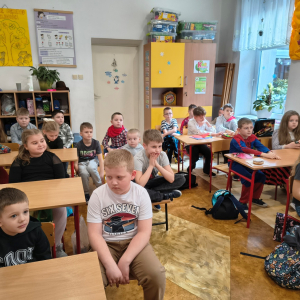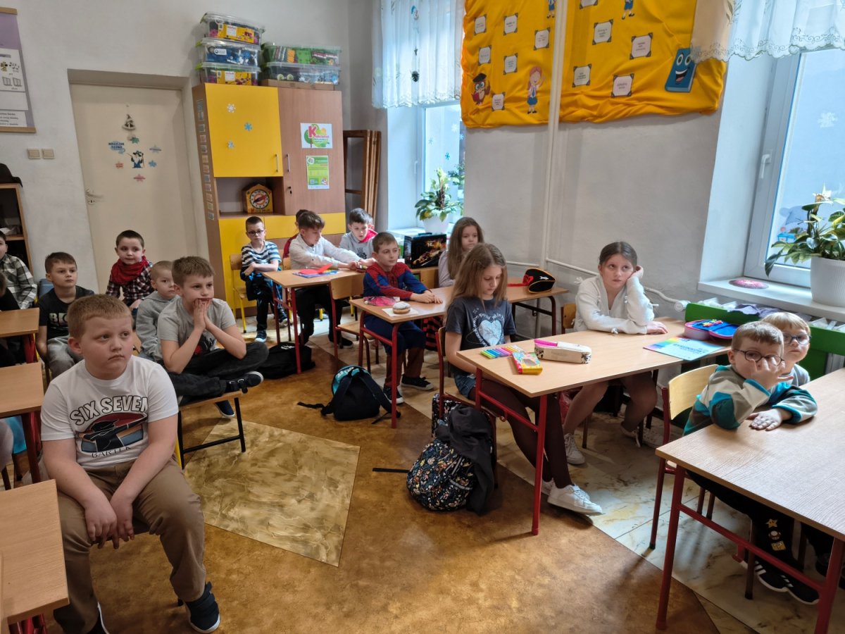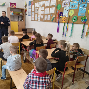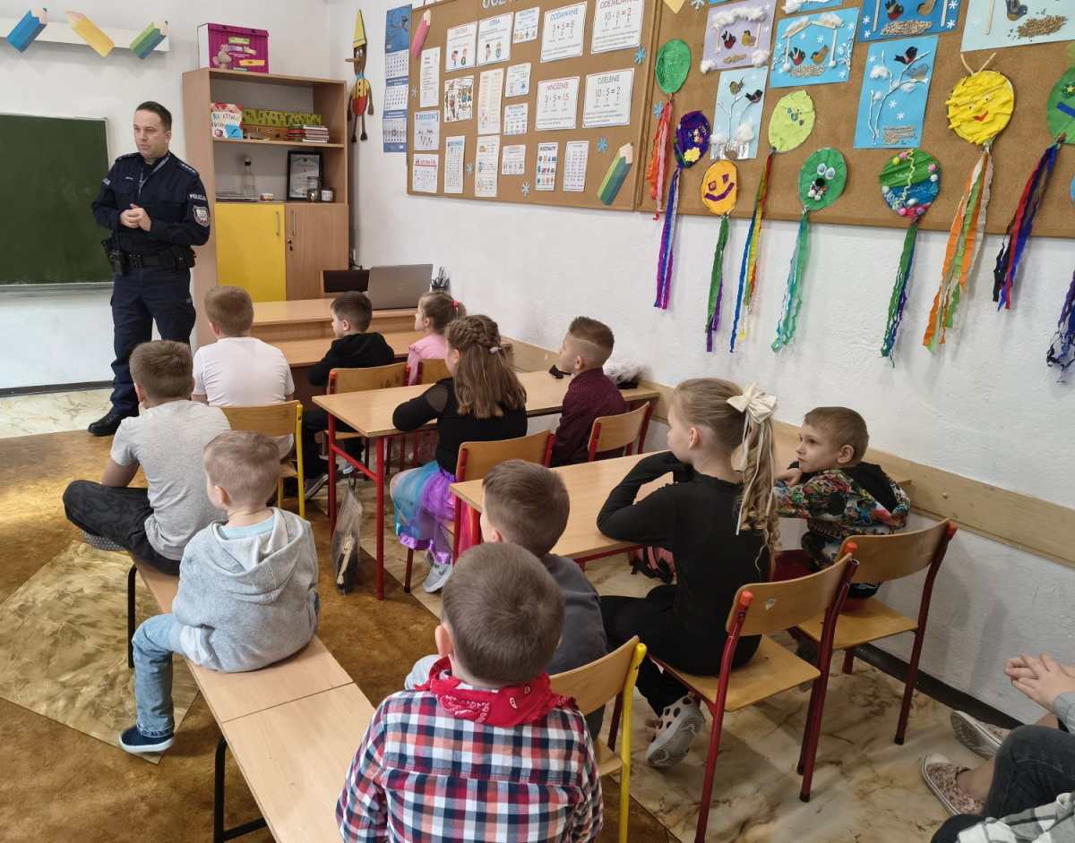 12.02.2026 r. w naszej szkole miało miejsce spotkanie uczniów klas 0-III z policjantem Komendy Powiatowej Policji w Jaśle, podczas którego została przeprowadzona pogadanka na temat "Bezpieczne ferie". Uczestnicy poznali zasady bezpieczeństwa podczas zabaw zimowych na świeżym powietrzu np. jazdy na sankach, nartach, łyżwach, a także zabaw grupowych takich jak bitwa na śnieżki. Prowadzący przypomniał, że po drogach publicznych nie mogą poruszać się samodzielnie na rowerach i hulajnogach elektrycznych dzieci nieposiadające karty rowerowej. Podczas pogadanki uczniom zostały przypomniane także zasady bezpieczeństwa w domu, szczególnie pod nieobecność rodziców. Ważnym punktem była rozmowa dotycząca bezpiecznego korzystania z internetu oraz informacja dotycząca zakazu zakładania kont i korzystania z nich na platformach społecznościowych takich jak Messenger, Facebook, YouTube dzieciom poniżej 13 lat. Uczniowie z uwagą i zaciekawieniem słuchali przekazywanych informacji, zadawali pytania i włączali się w dyskusję.
