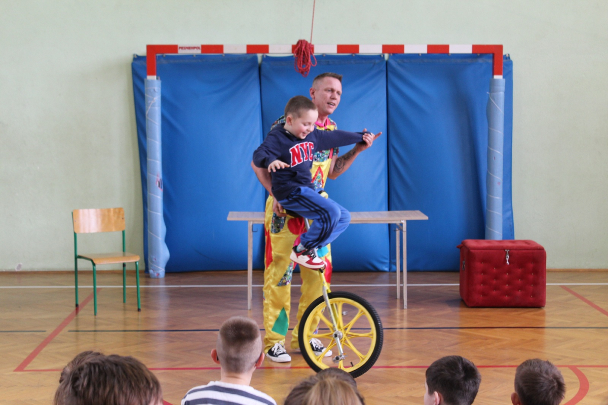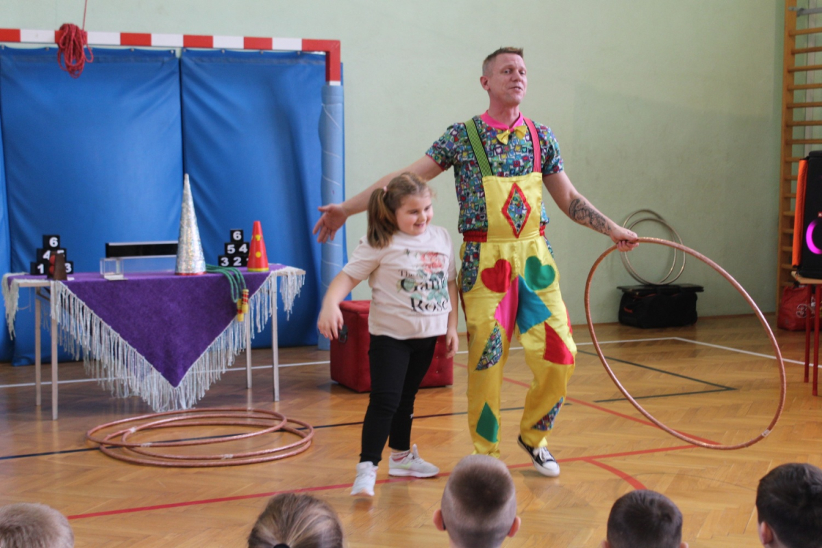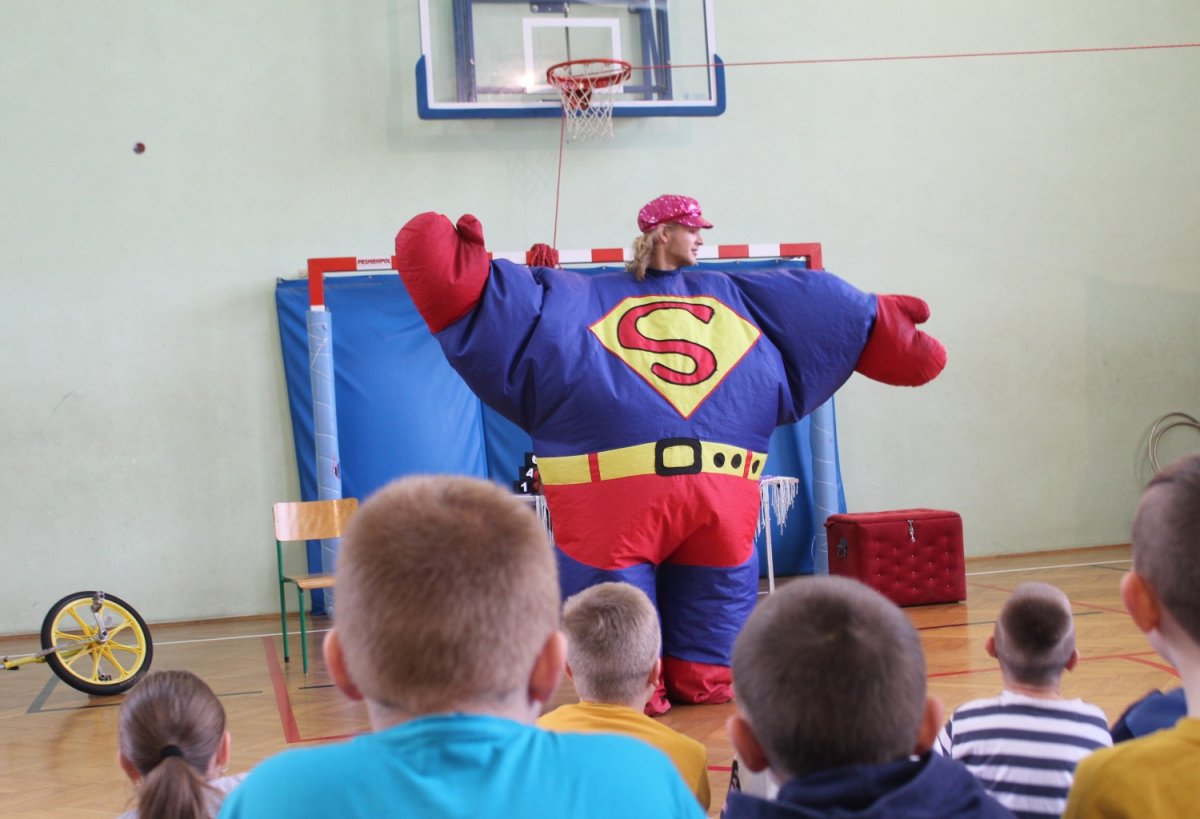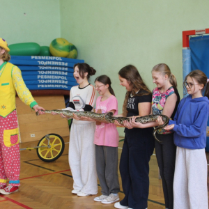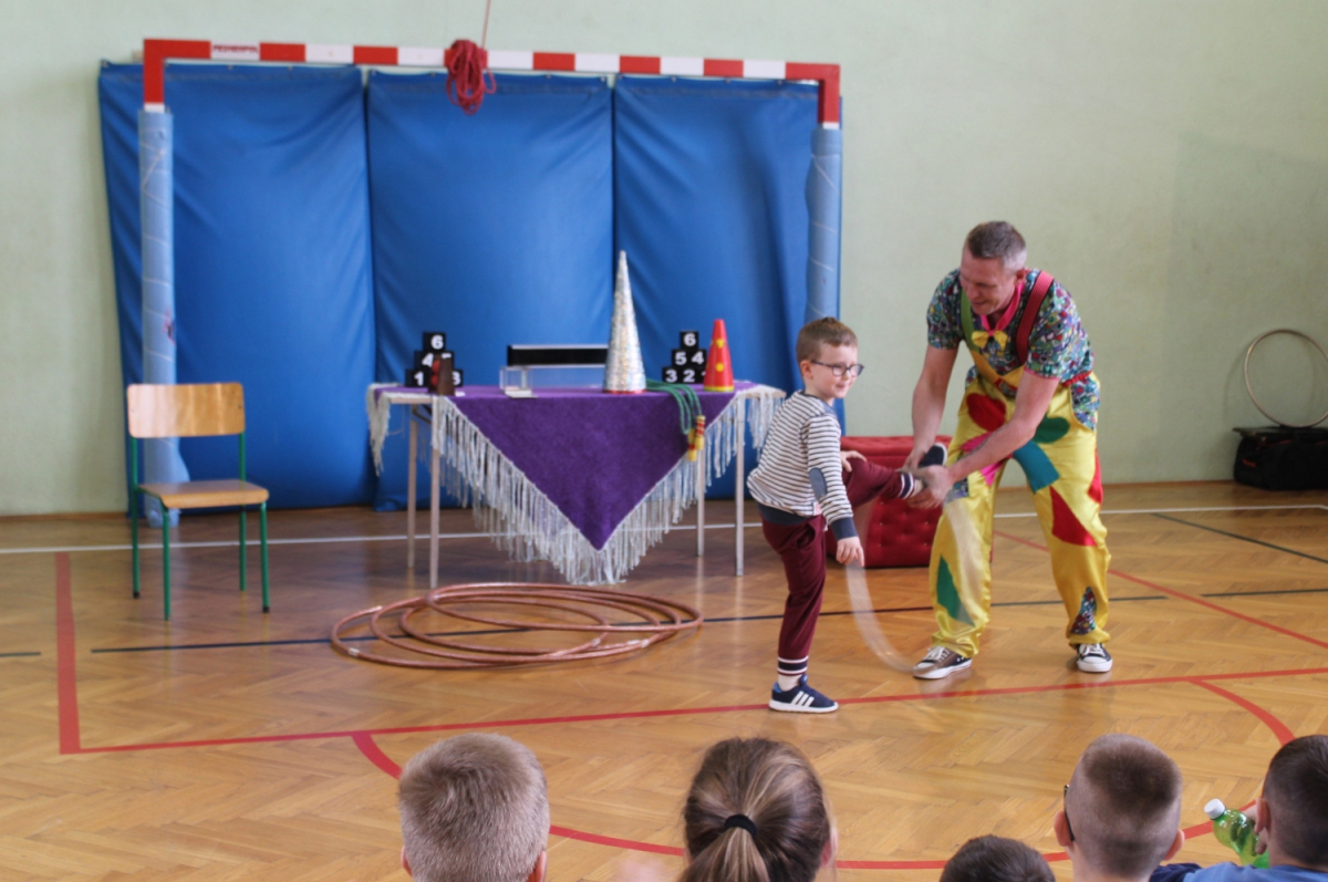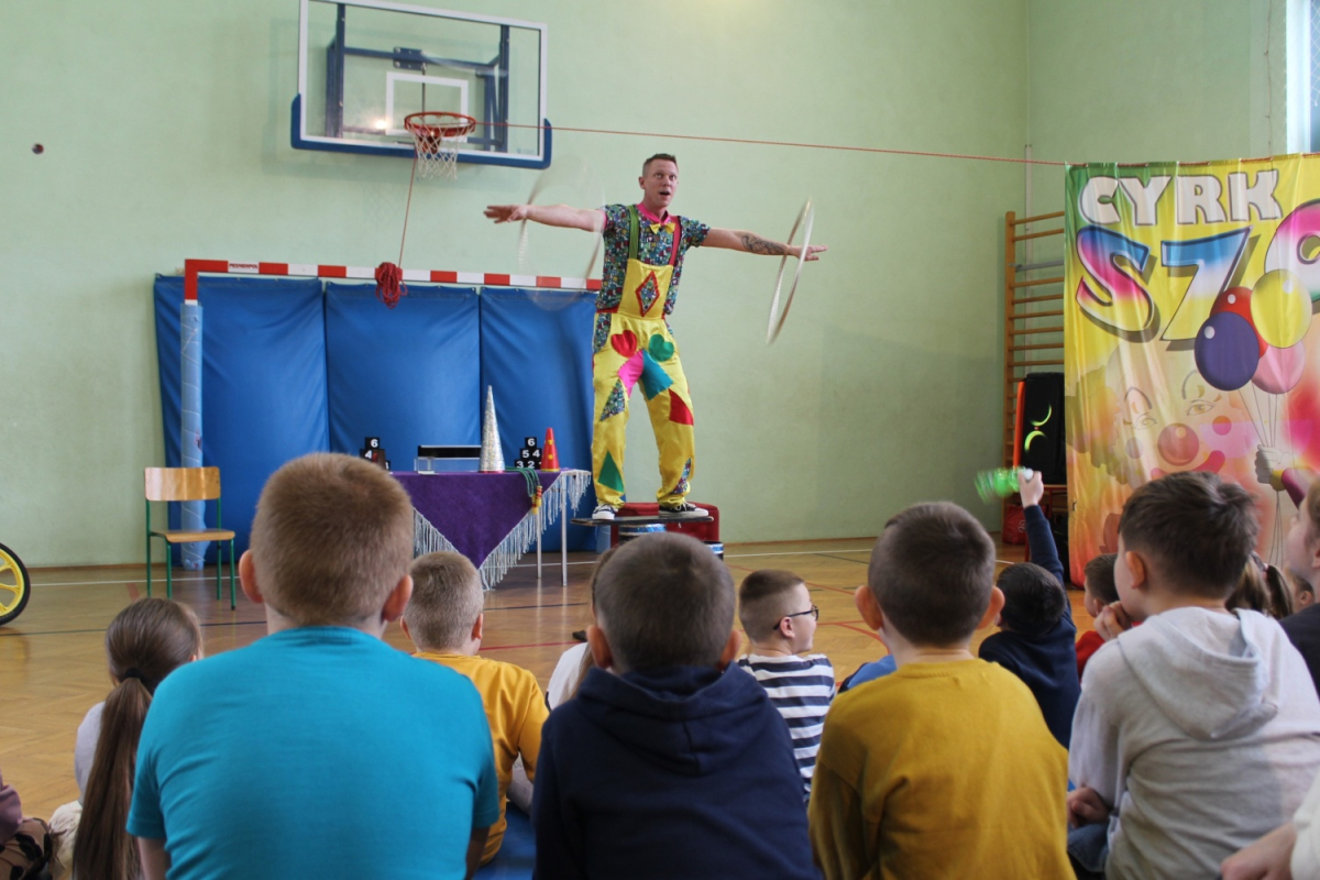 5.02.2026 roku do naszej szkoły zawitali niecodzienni goście – Cyrk „Szok”. Uczniowie wraz ze swoimi opiekunami obejrzeli ciekawy i jednocześnie zabawny program artystyczny. Wystąpili: superman, wesoły klaun oraz biały miś”. Chętne i odważne dzieci nie tylko miały okazję podziwiać sztuczki cyrkowe, ale także brać w nich czynny udział. Dzieci z entuzjazmem próbowały wykonać cyrkowe akrobacje, co wzbudzało radość wszystkich widzów. Największe emocje wzbudził duży wąż boa dusiciel! I nie brakło śmiałków, którzy go dotykali i nawet trzymali na ramionach. :)
