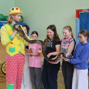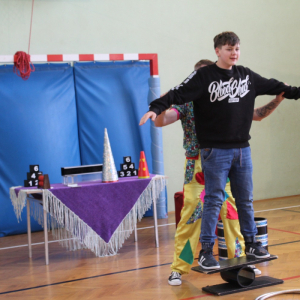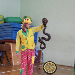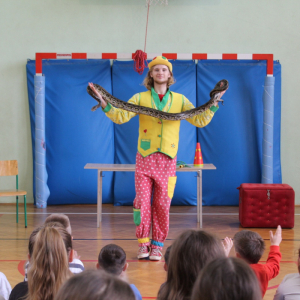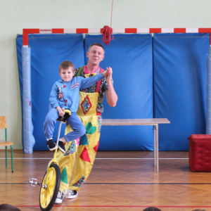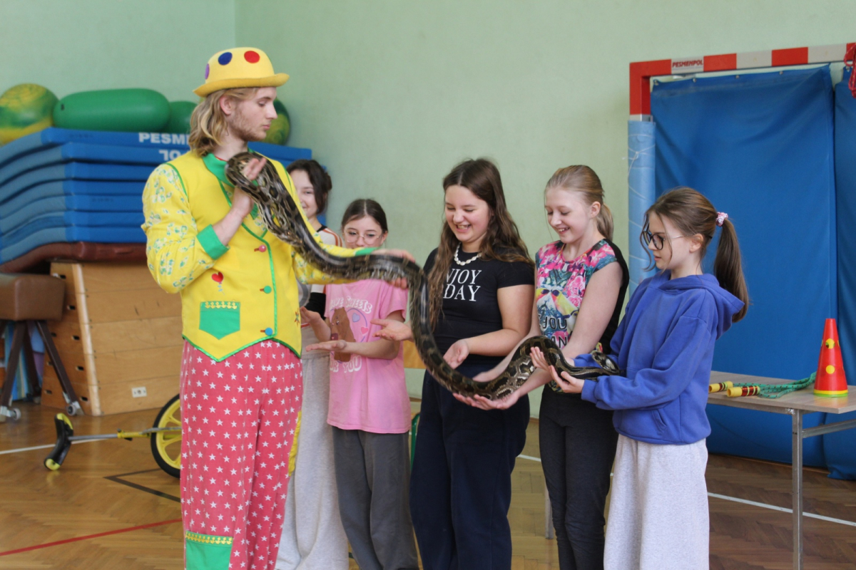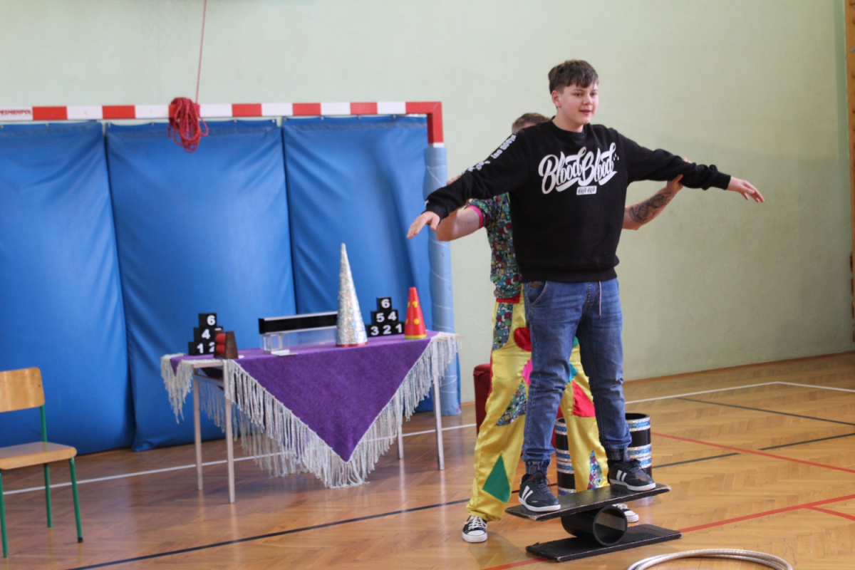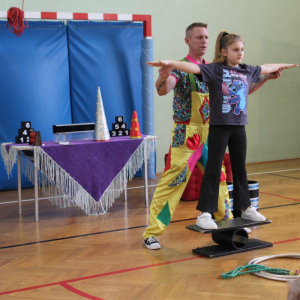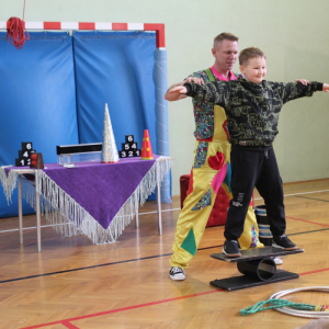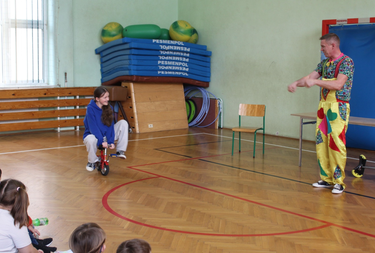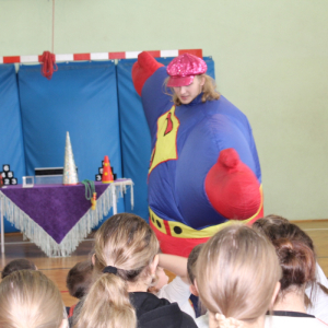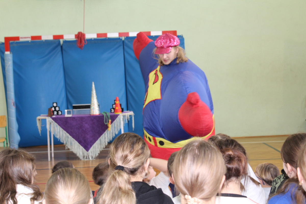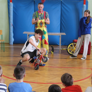 5.02.2026 roku do naszej szkoły zawitali niecodzienni goście – Cyrk „Szok”. Uczniowie wraz ze swoimi opiekunami obejrzeli ciekawy i jednocześnie zabawny program artystyczny. Wystąpili: superman, wesoły klaun oraz biały miś”. Chętne i odważne dzieci nie tylko miały okazję podziwiać sztuczki cyrkowe, ale także brać w nich czynny udział. Dzieci z entuzjazmem próbowały wykonać cyrkowe akrobacje, co wzbudzało radość wszystkich widzów. Największe emocje wzbudził duży wąż boa dusiciel! I nie brakło śmiałków, którzy go dotykali i nawet trzymali na ramionach. :)
