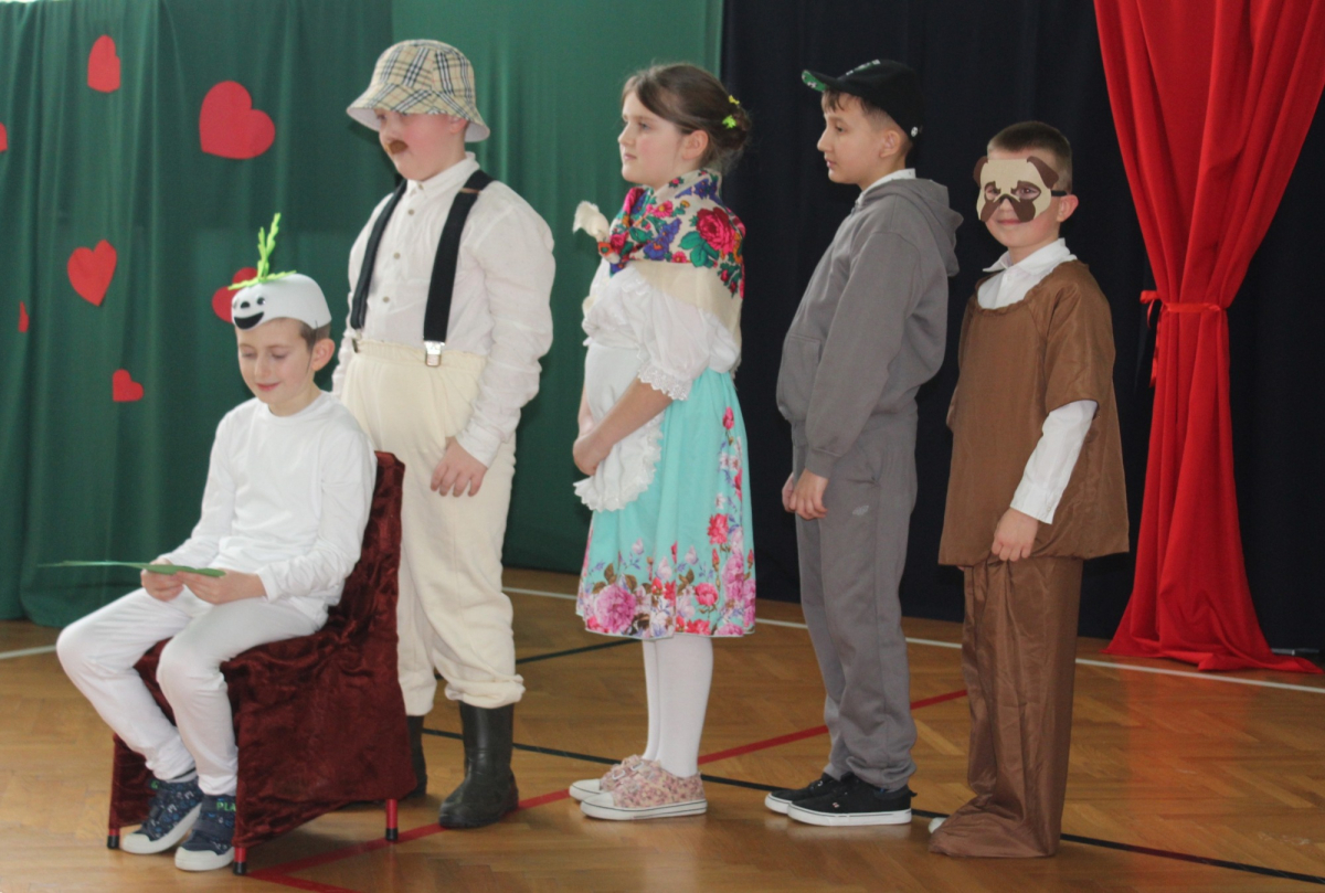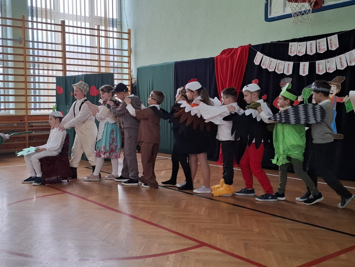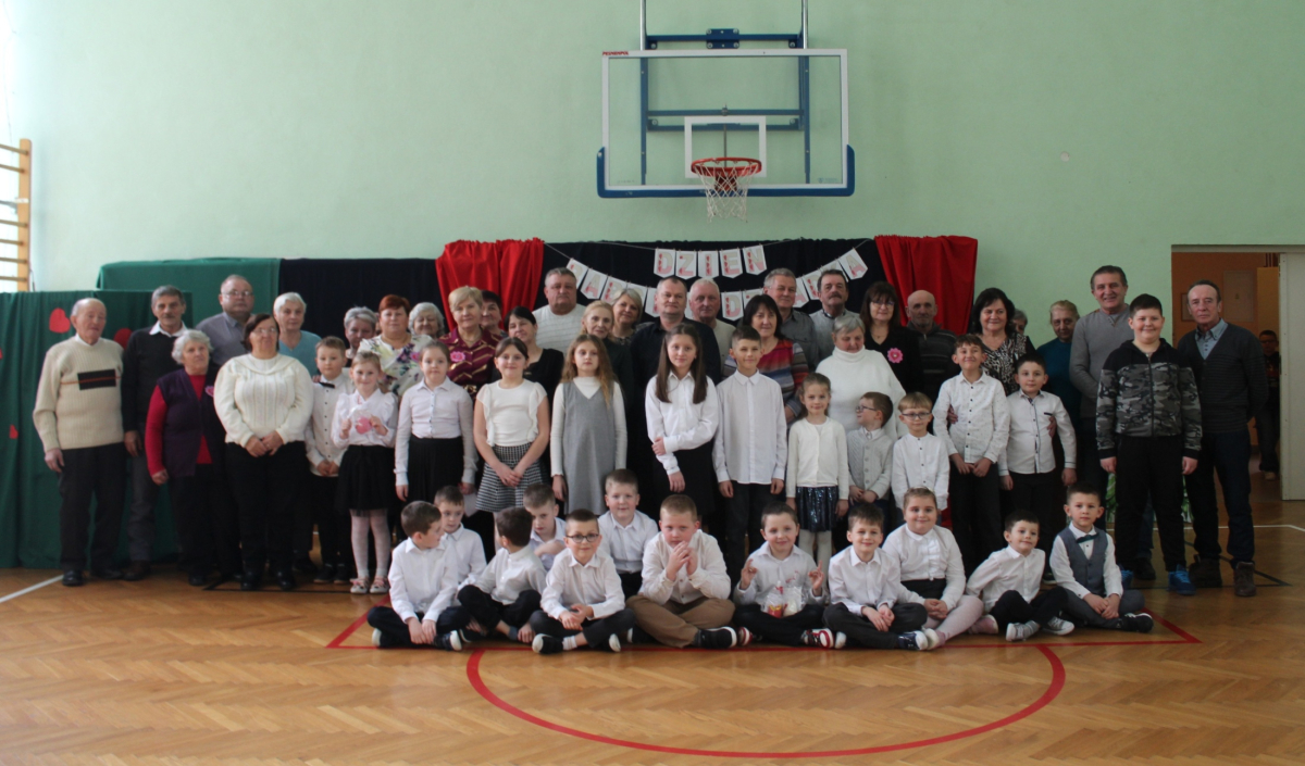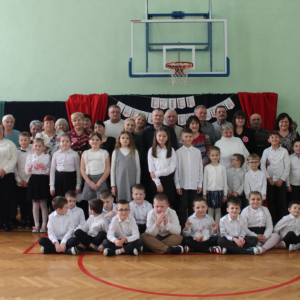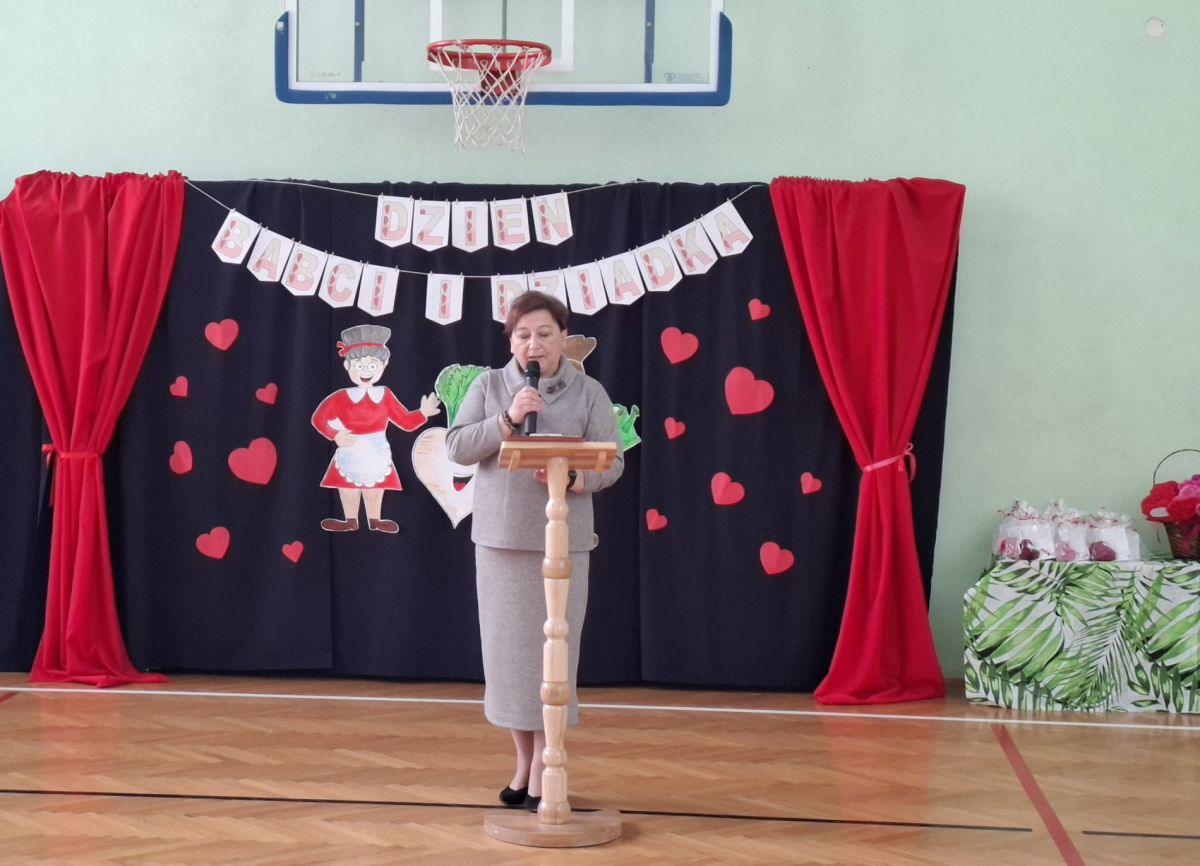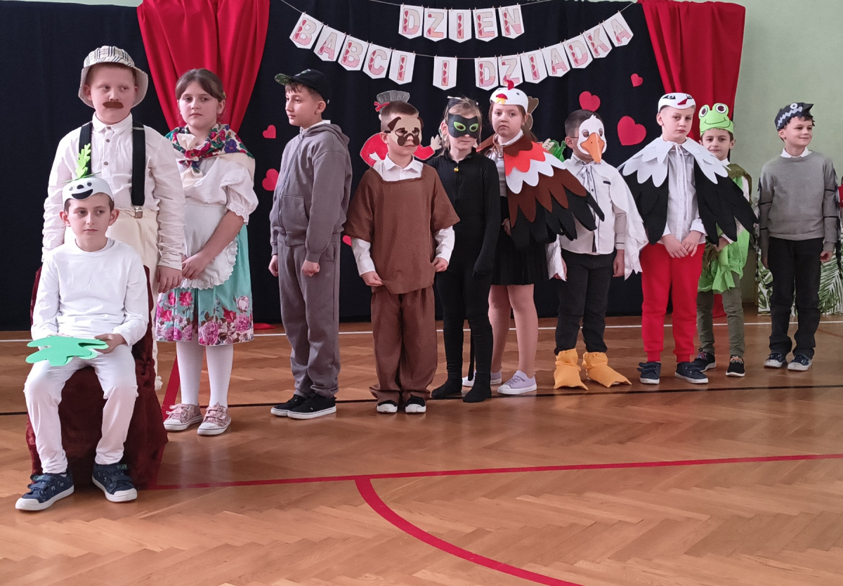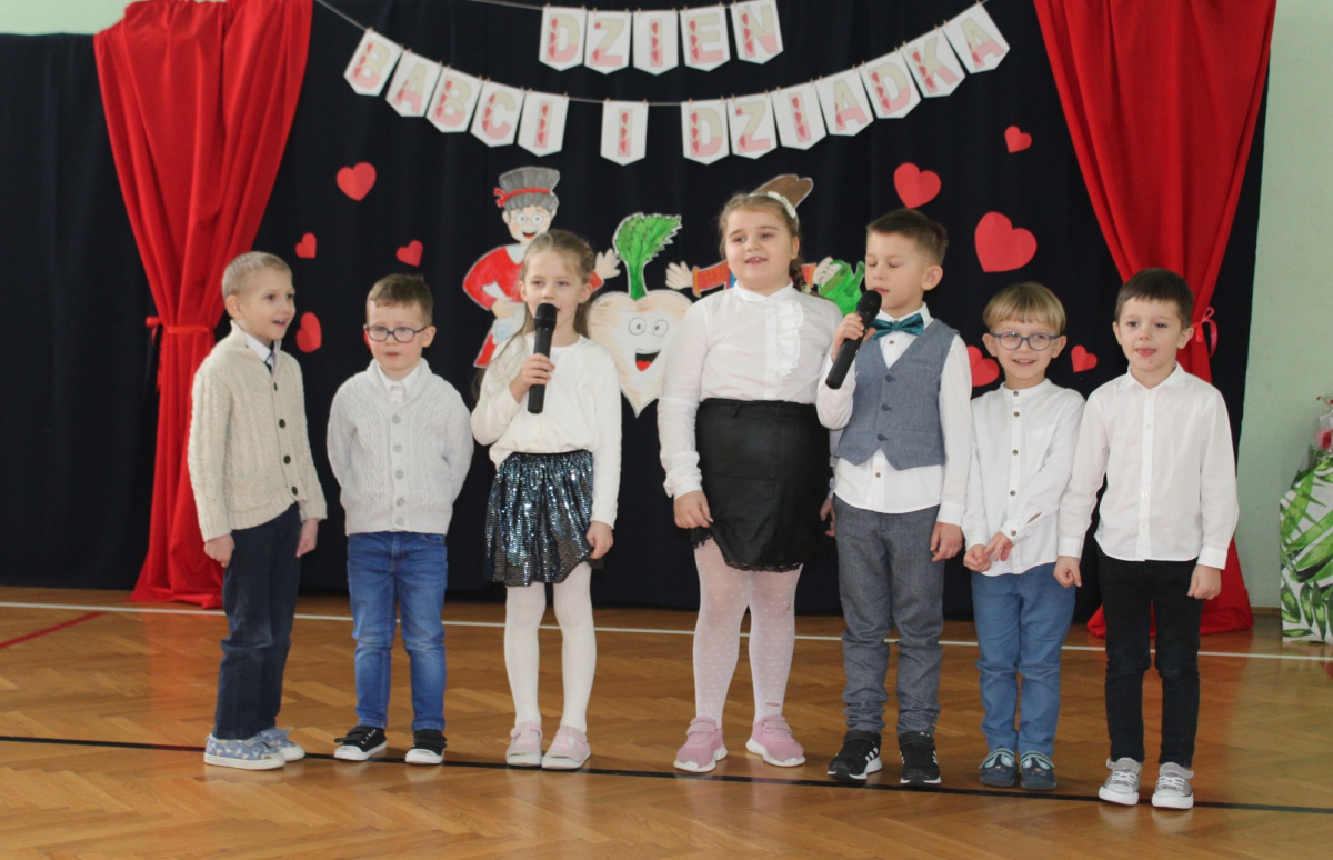 Mimo, że styczeń jest zimowym miesiącem, pełnym chłodnych dni, to 21 i 22 każdemu robi się cieplej na sercu. Są to dni kiedy obchodzimy święto wszystkich Babć i Dziadków. To dni pełne uśmiechów, wzruszeń i radości. 23 stycznia 2026 roku gościliśmy w naszej szkole Babcie i Dziadków zaproszonych na uroczystą akademię z okazji ich święta. Uroczystość przygotowały dzieci z oddziału przedszkolnego oraz uczniowie klas I-III. Spotkanie rozpoczęła Pani dyrektor, która serdecznie przywitała przybyłych gości. Życzyła im samych pięknych chwil w życiu, zdrowia i tego, aby zawsze byli dumni ze swoich wnuków. Następnie młodzi artyści zaprezentowali inscenizację do wiersza Juliana Tuwima pt. Rzepka. Wykazali się doskonałą grą sceniczną, humorem i odwagą, a ich występ został nagrodzony gromkimi brawami. Przedszkolaki z ogromnym zaangażowaniem recytowały wiersz i zaśpiewały piękną piosenkę pt. Jak Babcię kocham i Dziadka. Uczniowie klas 1-3 dołączyli się do życzeń śpiewając wspólnie piosenkę pt. Kochana Babciu, Kochany Dziadku oraz recytując wiersze. Część artystyczną zakończył taniec z serduszkami do utworu Pędzą wnuki z laurkami.