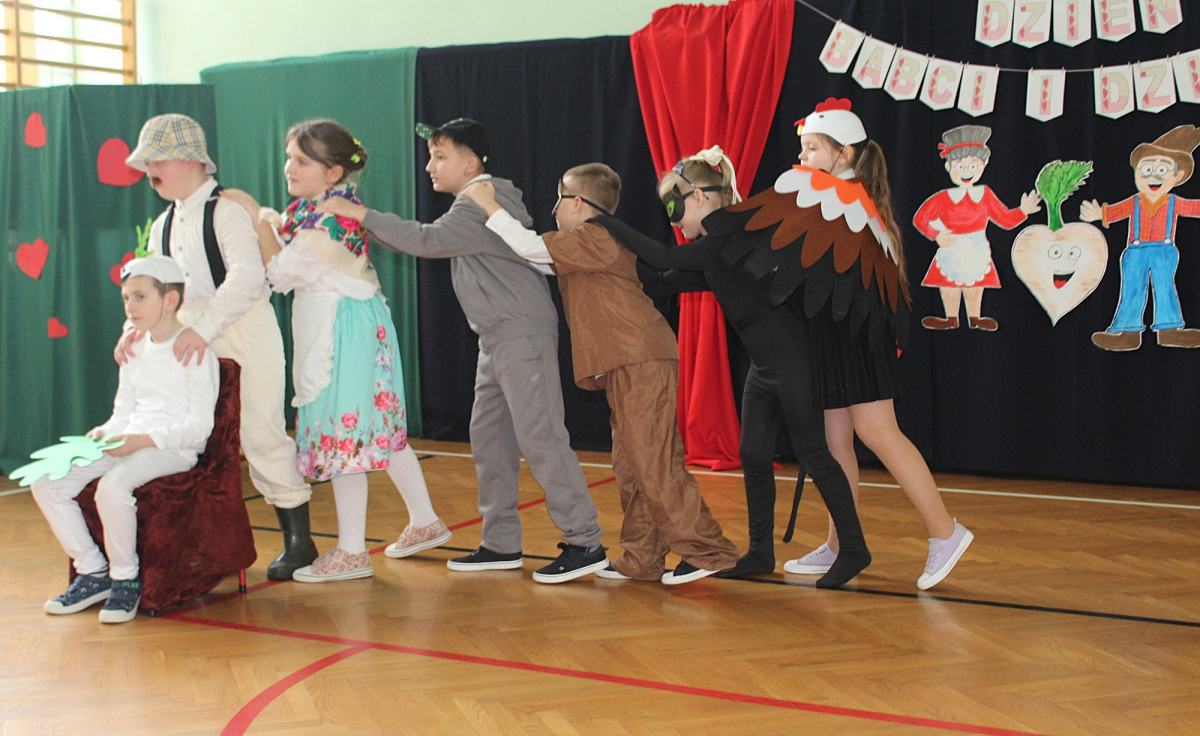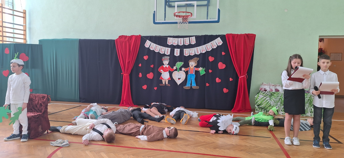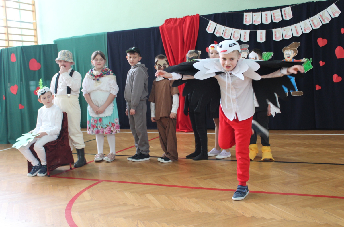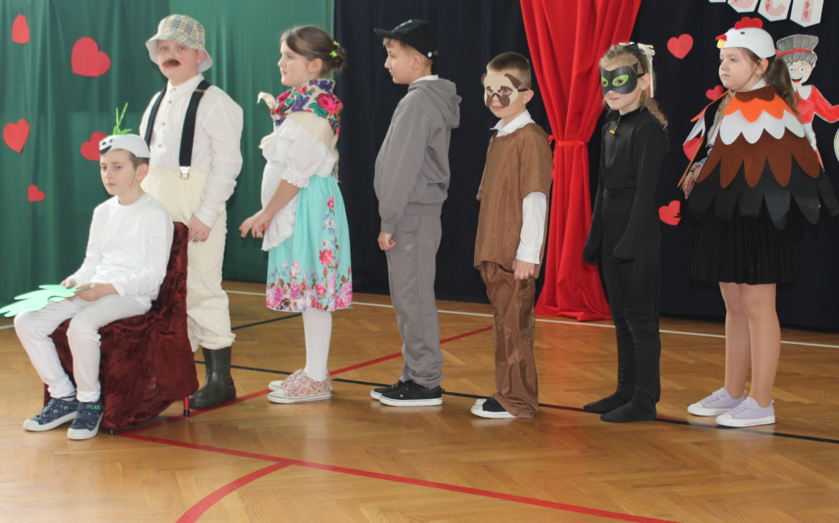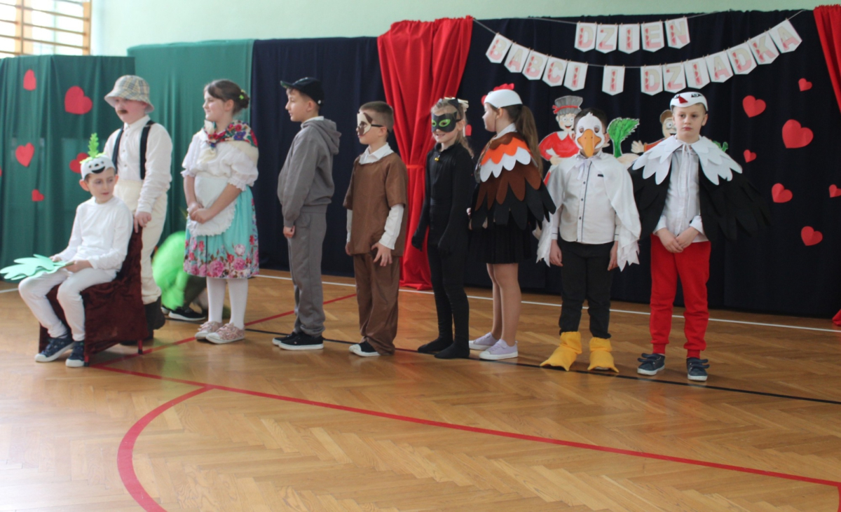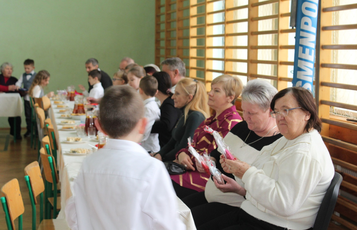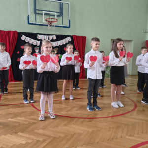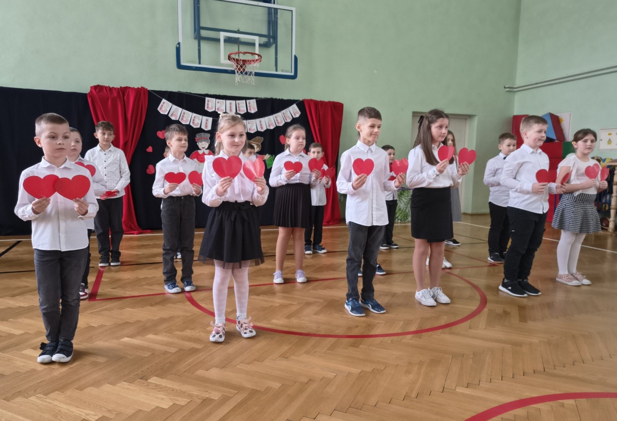 Mimo, że styczeń jest zimowym miesiącem, pełnym chłodnych dni, to 21 i 22 każdemu robi się cieplej na sercu. Są to dni kiedy obchodzimy święto wszystkich Babć i Dziadków. To dni pełne uśmiechów, wzruszeń i radości. 23 stycznia 2026 roku gościliśmy w naszej szkole Babcie i Dziadków zaproszonych na uroczystą akademię z okazji ich święta. Uroczystość przygotowały dzieci z oddziału przedszkolnego oraz uczniowie klas I-III. Spotkanie rozpoczęła Pani dyrektor, która serdecznie przywitała przybyłych gości. Życzyła im samych pięknych chwil w życiu, zdrowia i tego, aby zawsze byli dumni ze swoich wnuków. Następnie młodzi artyści zaprezentowali inscenizację do wiersza Juliana Tuwima pt. Rzepka. Wykazali się doskonałą grą sceniczną, humorem i odwagą, a ich występ został nagrodzony gromkimi brawami. Przedszkolaki z ogromnym zaangażowaniem recytowały wiersz i zaśpiewały piękną piosenkę pt. Jak Babcię kocham i Dziadka. Uczniowie klas 1-3 dołączyli się do życzeń śpiewając wspólnie piosenkę pt. Kochana Babciu, Kochany Dziadku oraz recytując wiersze. Część artystyczną zakończył taniec z serduszkami do utworu Pędzą wnuki z laurkami.