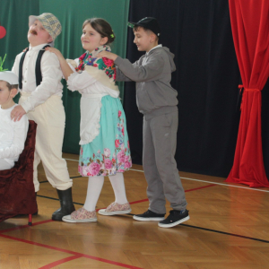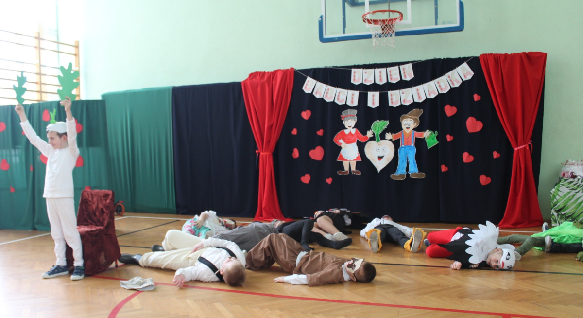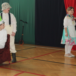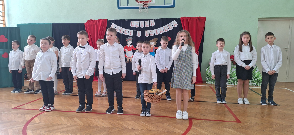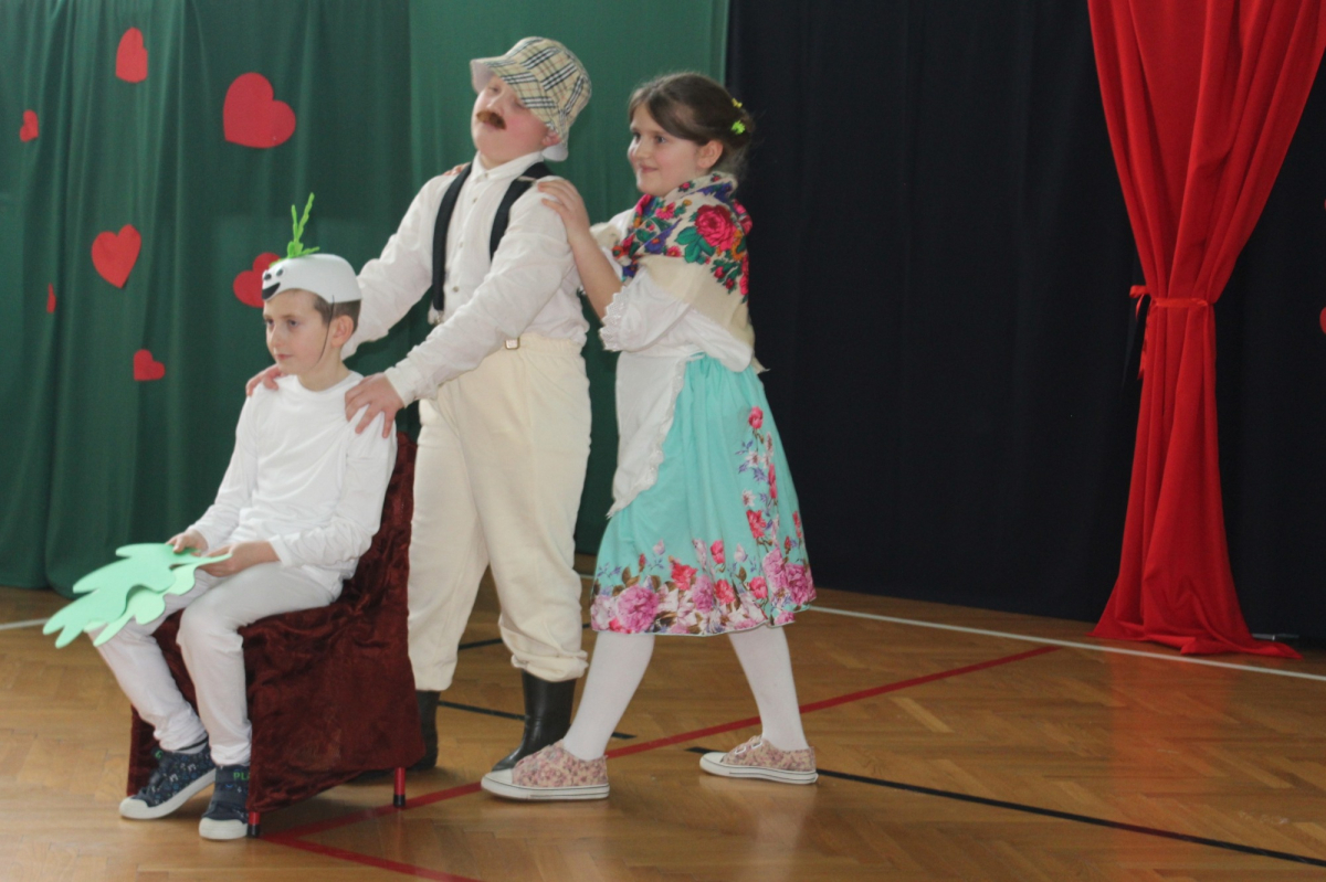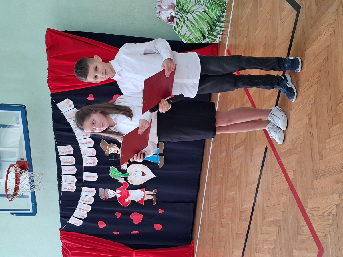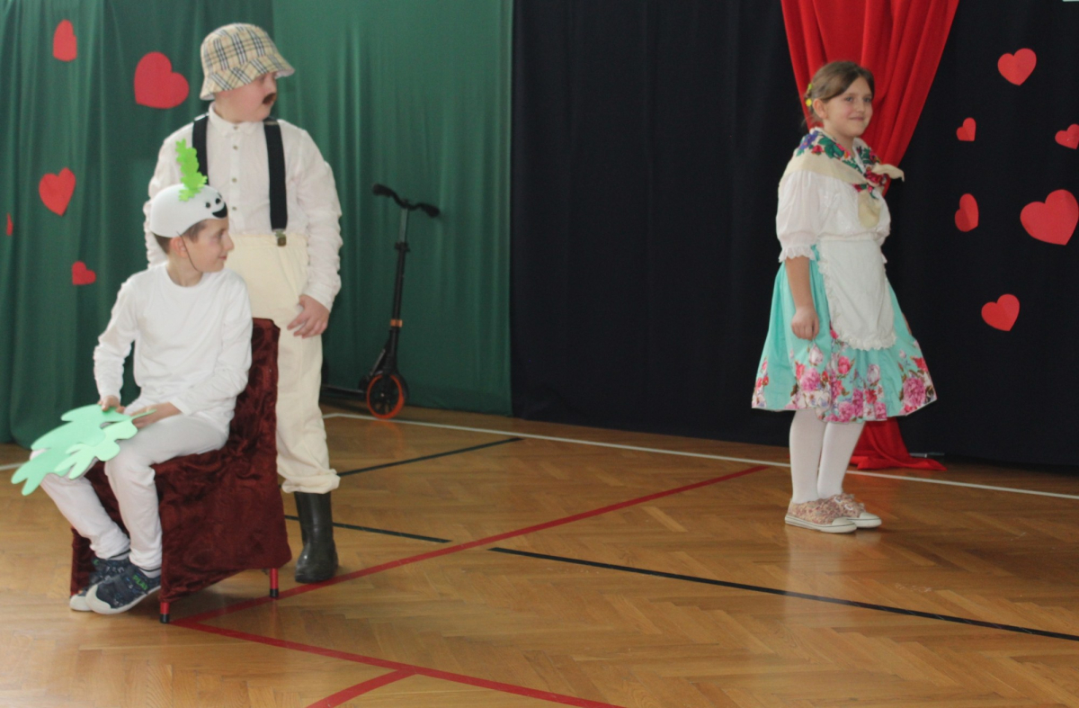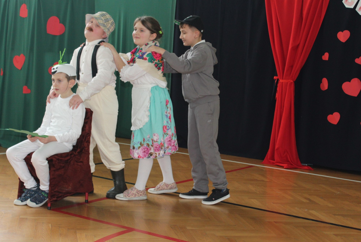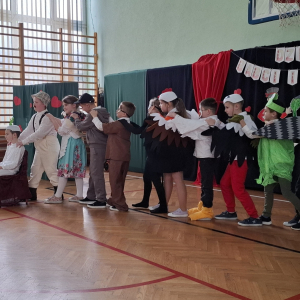 Mimo, że styczeń jest zimowym miesiącem, pełnym chłodnych dni, to 21 i 22 każdemu robi się cieplej na sercu. Są to dni kiedy obchodzimy święto wszystkich Babć i Dziadków. To dni pełne uśmiechów, wzruszeń i radości. 23 stycznia 2026 roku gościliśmy w naszej szkole Babcie i Dziadków zaproszonych na uroczystą akademię z okazji ich święta. Uroczystość przygotowały dzieci z oddziału przedszkolnego oraz uczniowie klas I-III. Spotkanie rozpoczęła Pani dyrektor, która serdecznie przywitała przybyłych gości. Życzyła im samych pięknych chwil w życiu, zdrowia i tego, aby zawsze byli dumni ze swoich wnuków. Następnie młodzi artyści zaprezentowali inscenizację do wiersza Juliana Tuwima pt. Rzepka. Wykazali się doskonałą grą sceniczną, humorem i odwagą, a ich występ został nagrodzony gromkimi brawami. Przedszkolaki z ogromnym zaangażowaniem recytowały wiersz i zaśpiewały piękną piosenkę pt. Jak Babcię kocham i Dziadka. Uczniowie klas 1-3 dołączyli się do życzeń śpiewając wspólnie piosenkę pt. Kochana Babciu, Kochany Dziadku oraz recytując wiersze. Część artystyczną zakończył taniec z serduszkami do utworu Pędzą wnuki z laurkami.