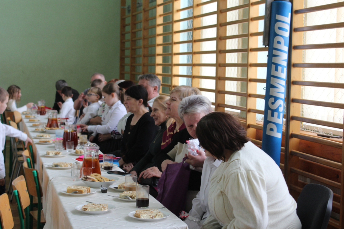 Babcie i Dziadkowie z dumą patrzyli na swoje wnuczęta, które włożyły wiele wysiłku w to, aby jak najlepiej wyrazić swoją miłość, szacunek oraz podziękować Dziadkom za ich cierpliwość, zrozumienie i opiekę. Na zakończenie Szanowni Goście zostali obdarowani przez wnuki własnoręcznie przygotowanymi laurkami. Dziękujemy rodzicom za przygotowanie poczęstunku w postaci pysznych ciast, kawy i herbaty.