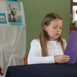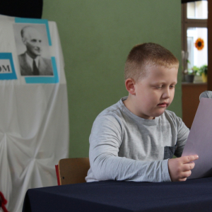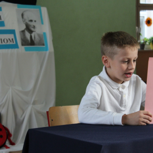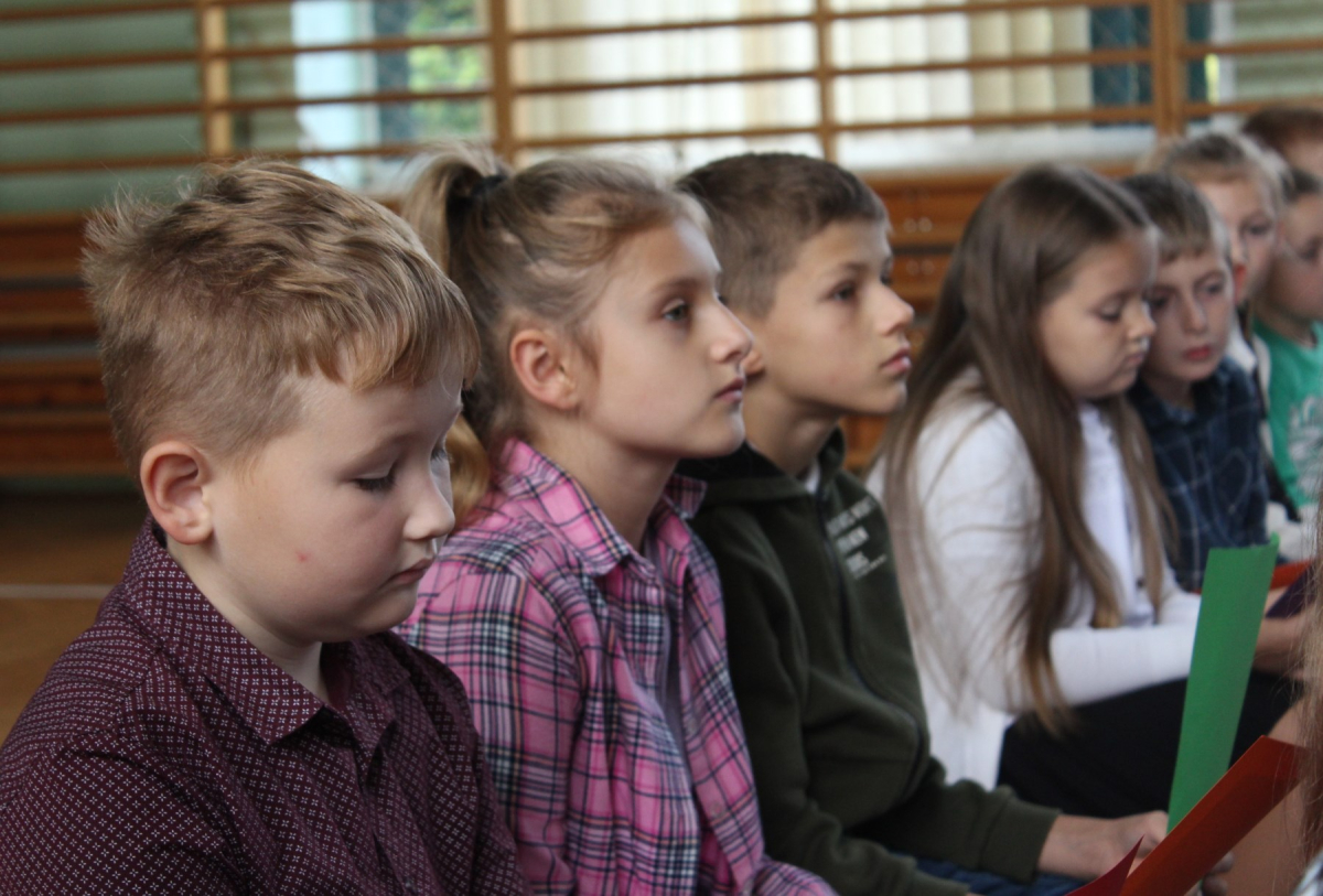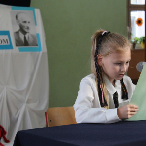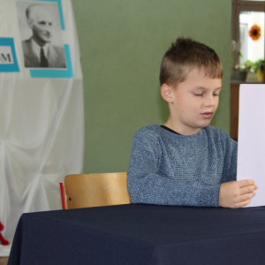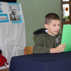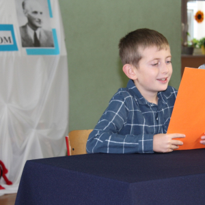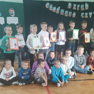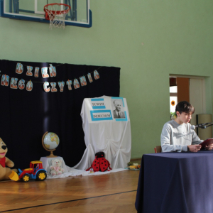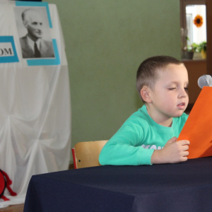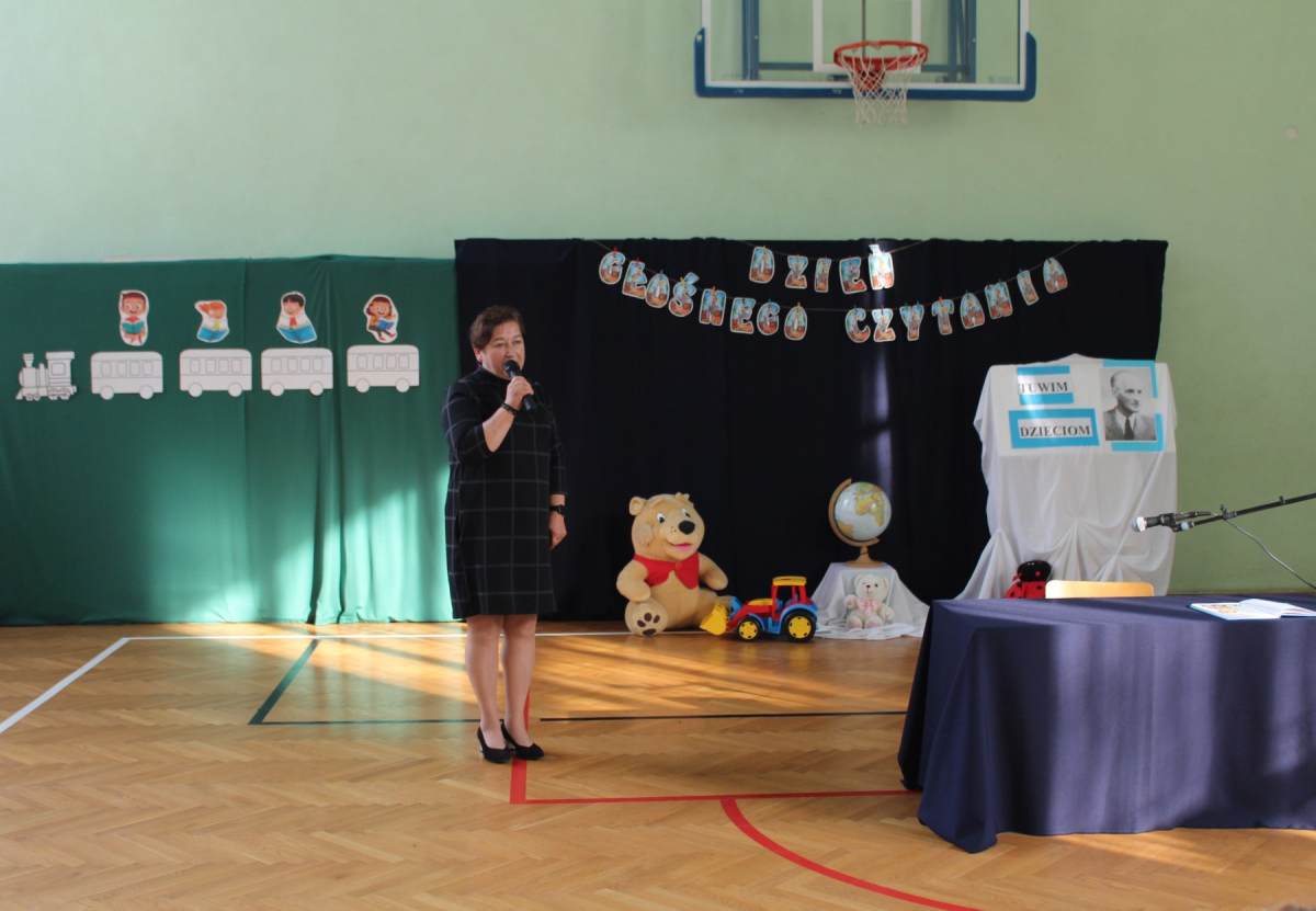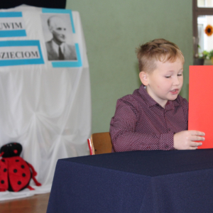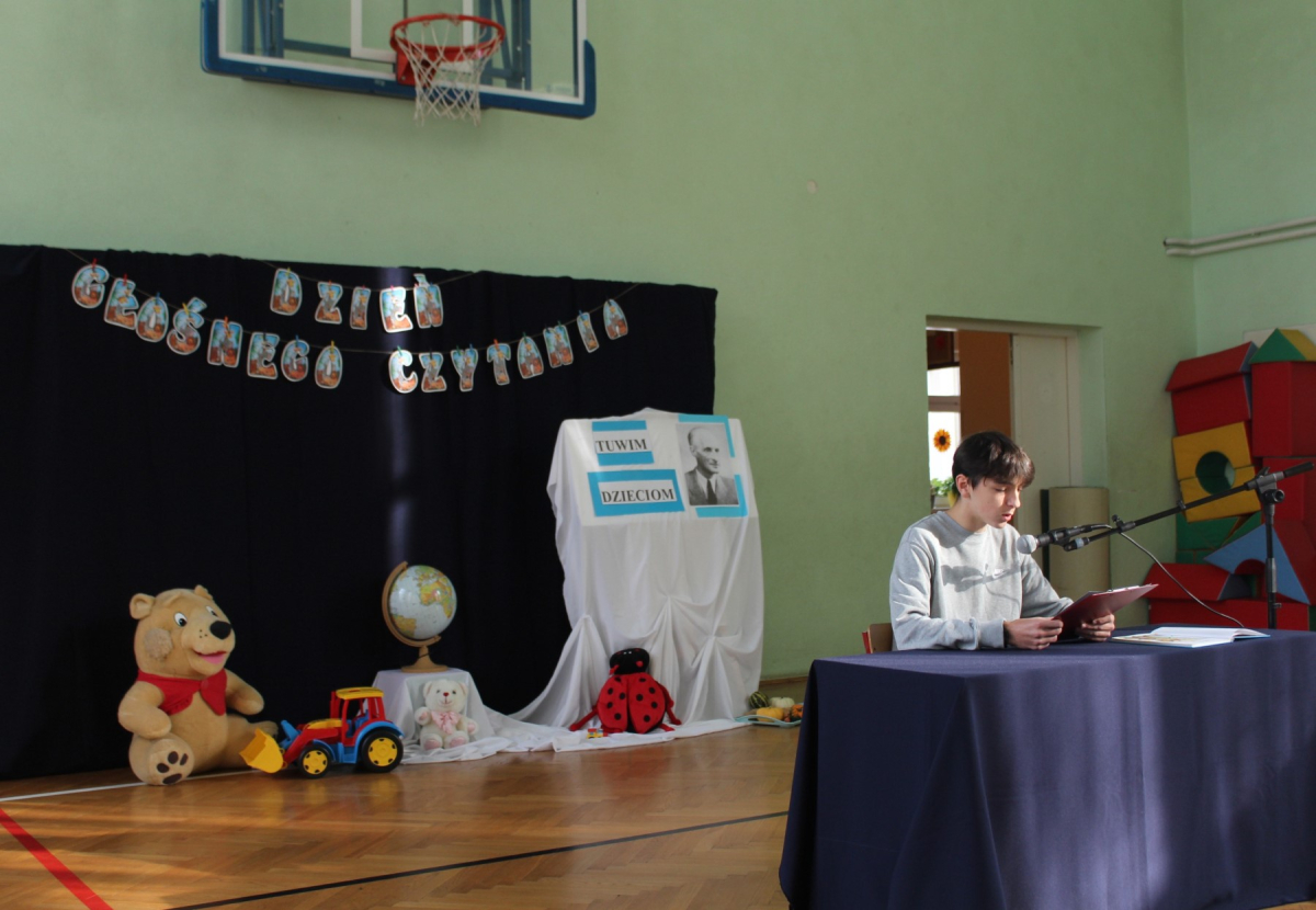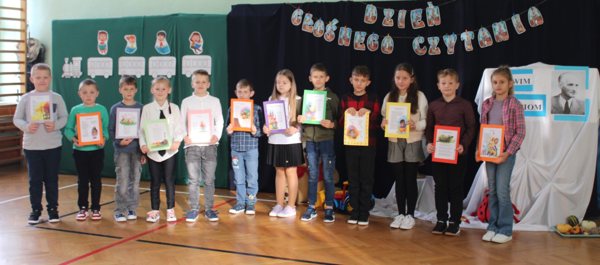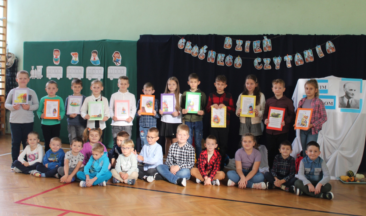 13 września przypadała 131 rocznica urodzin Juliana Tuwima – polskiego poety, satyryka, tłumacza, znanego z literatury dziecięcej i dorosłej. Z tej okazji, wspólne czytanie upłynęło pod hasłem „Tuwim Dzieciom”. W tym dniu dzieci z klasy II i III przygotowane przez wychowawcę zaprezentowały swoim młodszym kolegom i koleżankom z klasy I i oddziału przedszkolnego następujące wiersze: Brej Maja – „Wszyscy dla wszystkich”, Brej Michalina – „Abecadło”, Budziak Filip – „Pstryk”, Dedo Leon – „Dyzio Marzyciel”, Dedo Michał – „Skakanka”, Jędryczka Emilia – „O Grzesiu kłamczuchu i jego cioci”, Jędryczka Igor – „Warzywa”, Joncel Leon – „Zosia Samosia”, Maczuga Jessica – „Bambo”, Mikrut Ksawery – „Okulary”, Wyżkiewicz Bartłomiej – „Idzie Grześ”, Wyżkiewicz Filip – „Spóźniony słowik”. Podróż z wierszami Juliana Tuwima rozpoczęła pani Dyrektor prezentując wszystkim zebranym na sali gimnastycznej wiersz pt. ”Abecadło”. Do akcji z wielkim zaangażowaniem włączyli się uczniowie z klasy VIII. Lena Wyżkiewicz przybliżyła życiorys Juliana Tuwima, natomiast Józef Leśniak mistrzowsko zaprezentował wiersz pt. ”Ptasie radio”, które zostało nagrodzone przez wszystkich słuchających gromkimi brawami.