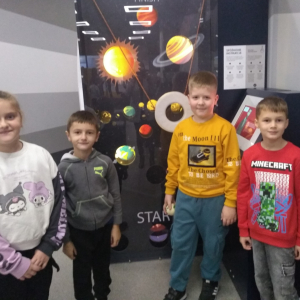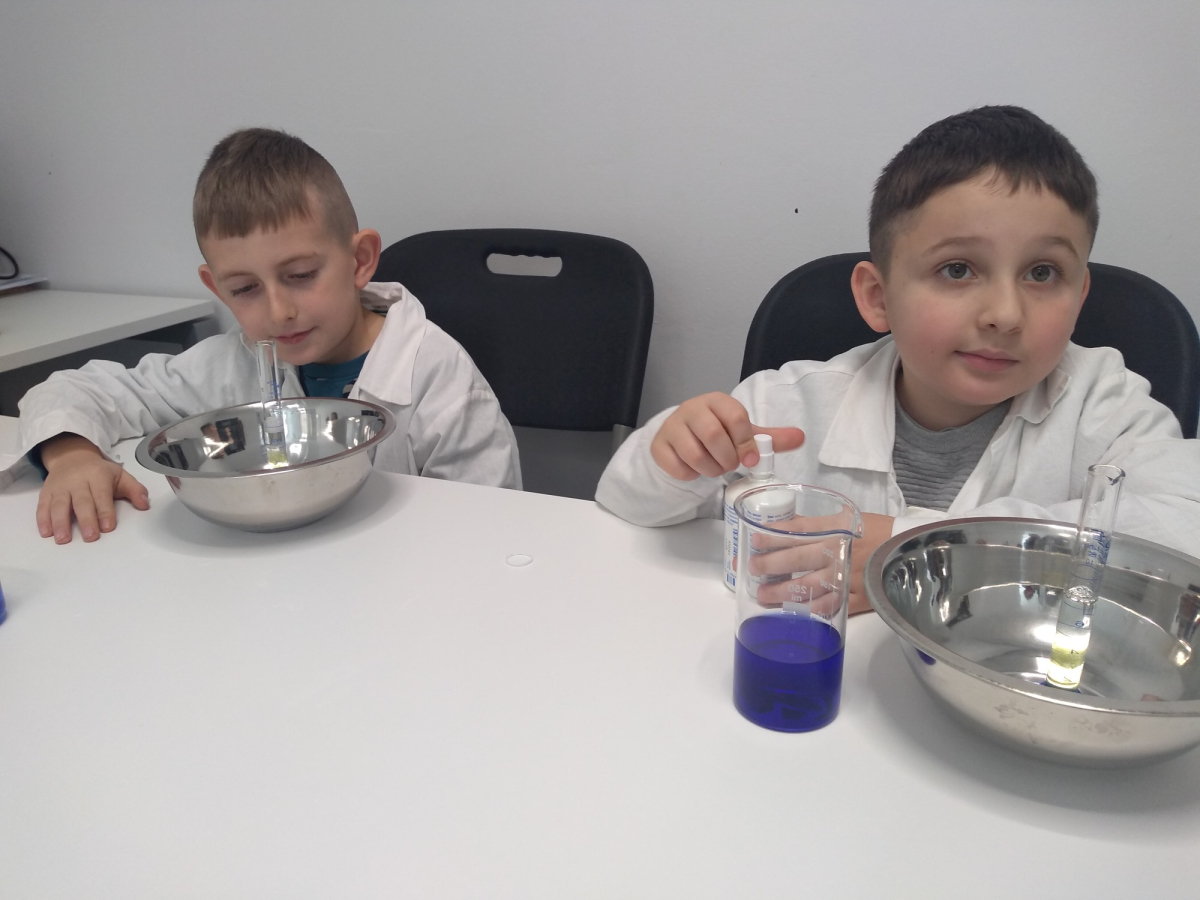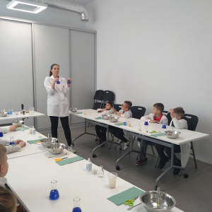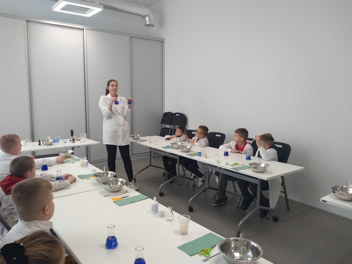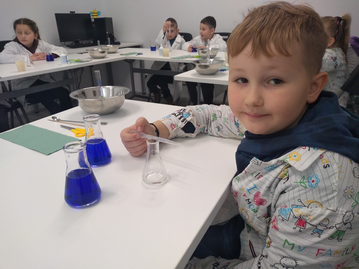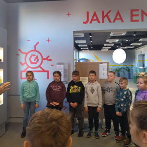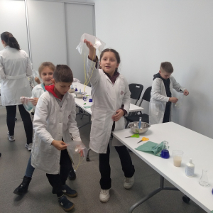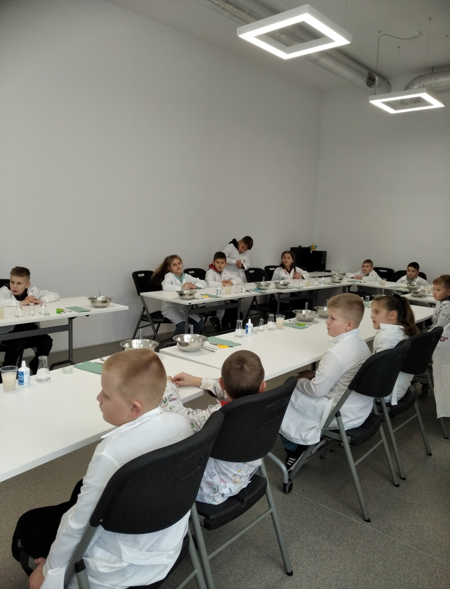 5 listopada 2025 roku. uczniowie klas I-III zwiedzali Generator Nauki w Jaśle oraz uczestniczyli w ciekawych warsztatach „Laboratorium Małego Naukowca”. Poznawali tajniki zjawisk fizycznych i chemicznych, przeprowadzając eksperymenty takie jak: „Pasta do zębów dla słonia”, „Chemiczna lokomotywa” i „Zegar jodowy”. Dzięki przeprowadzanym doświadczeniom uczniowie poznali bliżej m. in. zjawisko dyfuzji, czy fluorescencji z użyciem kory kasztanowca. Każdy mógł chociaż przez chwilę poczuć się, jak prawdziwy naukowiec./AR/