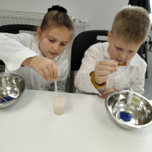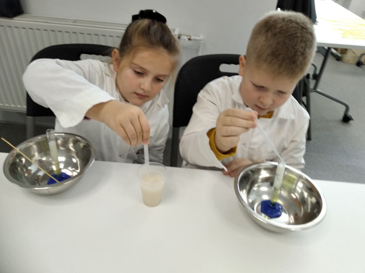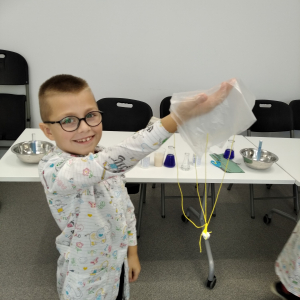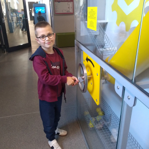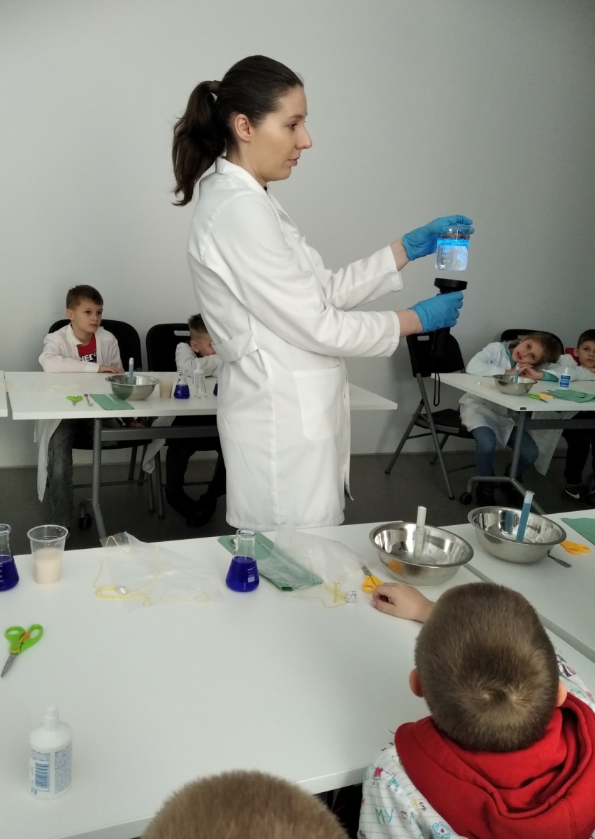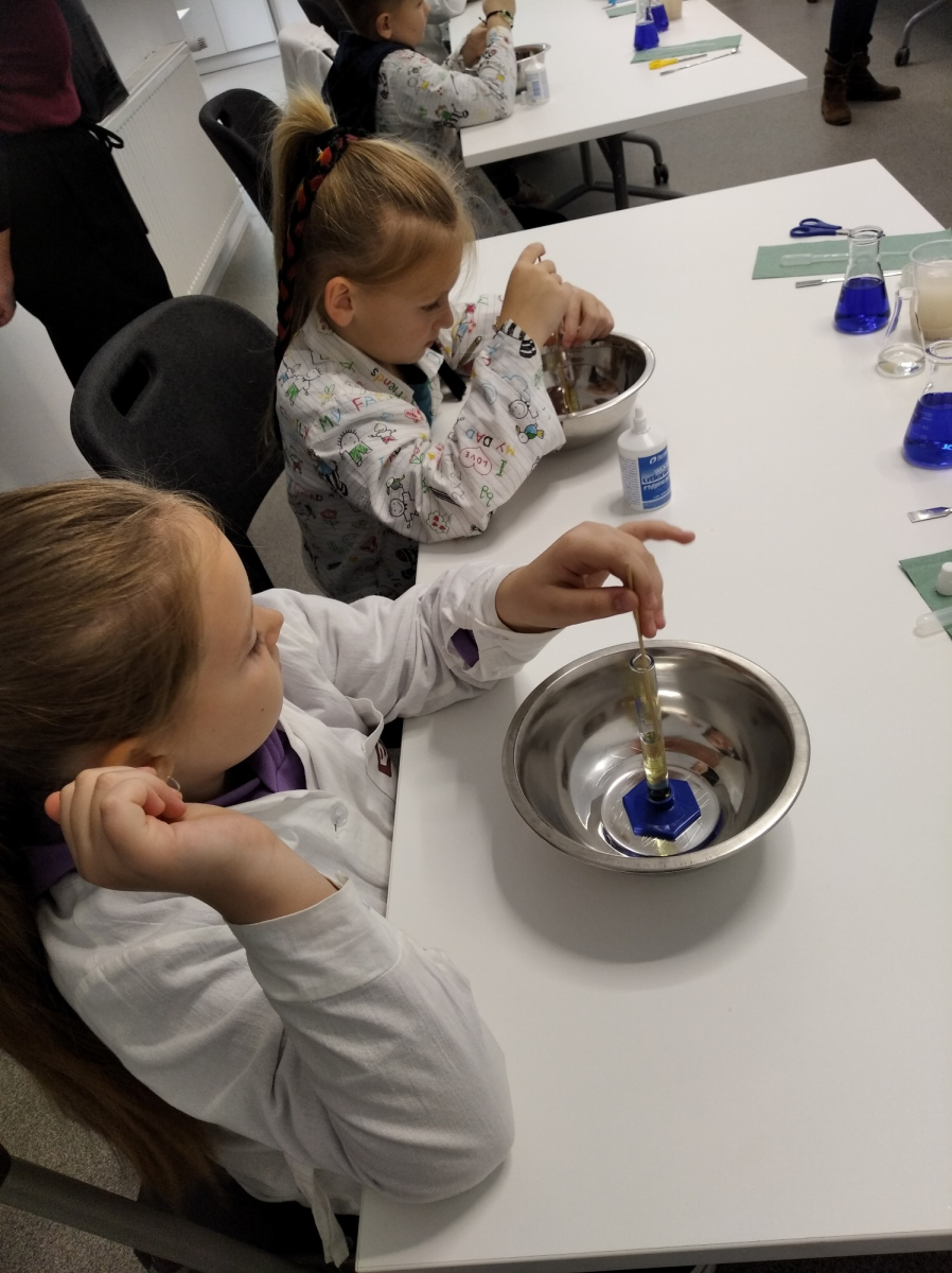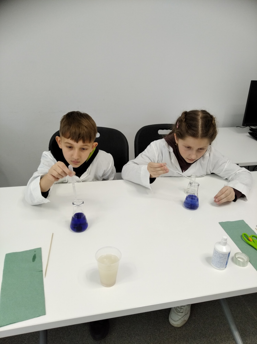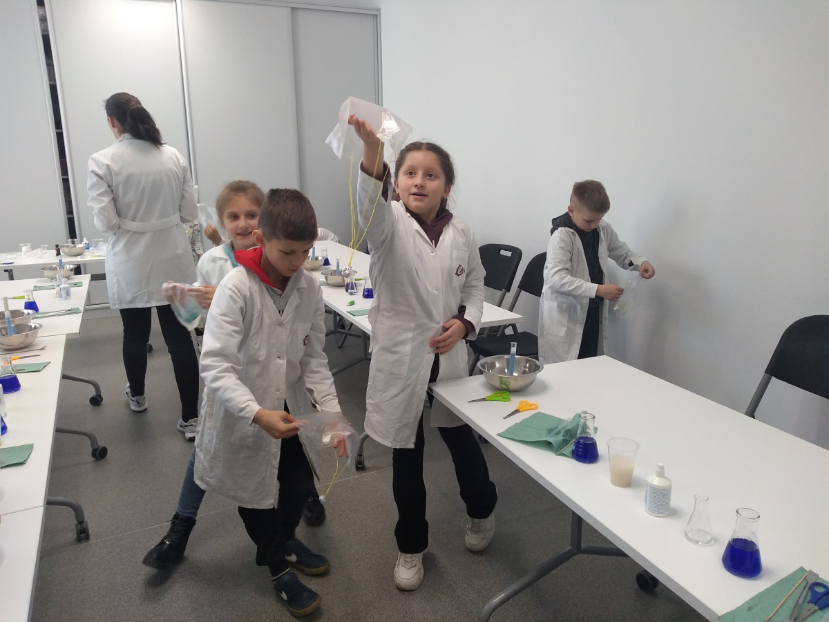 5 listopada 2025 roku. uczniowie klas I-III zwiedzali Generator Nauki w Jaśle oraz uczestniczyli w ciekawych warsztatach „Laboratorium Małego Naukowca”. Poznawali tajniki zjawisk fizycznych i chemicznych, przeprowadzając eksperymenty takie jak: „Pasta do zębów dla słonia”, „Chemiczna lokomotywa” i „Zegar jodowy”. Dzięki przeprowadzanym doświadczeniom uczniowie poznali bliżej m. in. zjawisko dyfuzji, czy fluorescencji z użyciem kory kasztanowca. Każdy mógł chociaż przez chwilę poczuć się, jak prawdziwy naukowiec./AR/