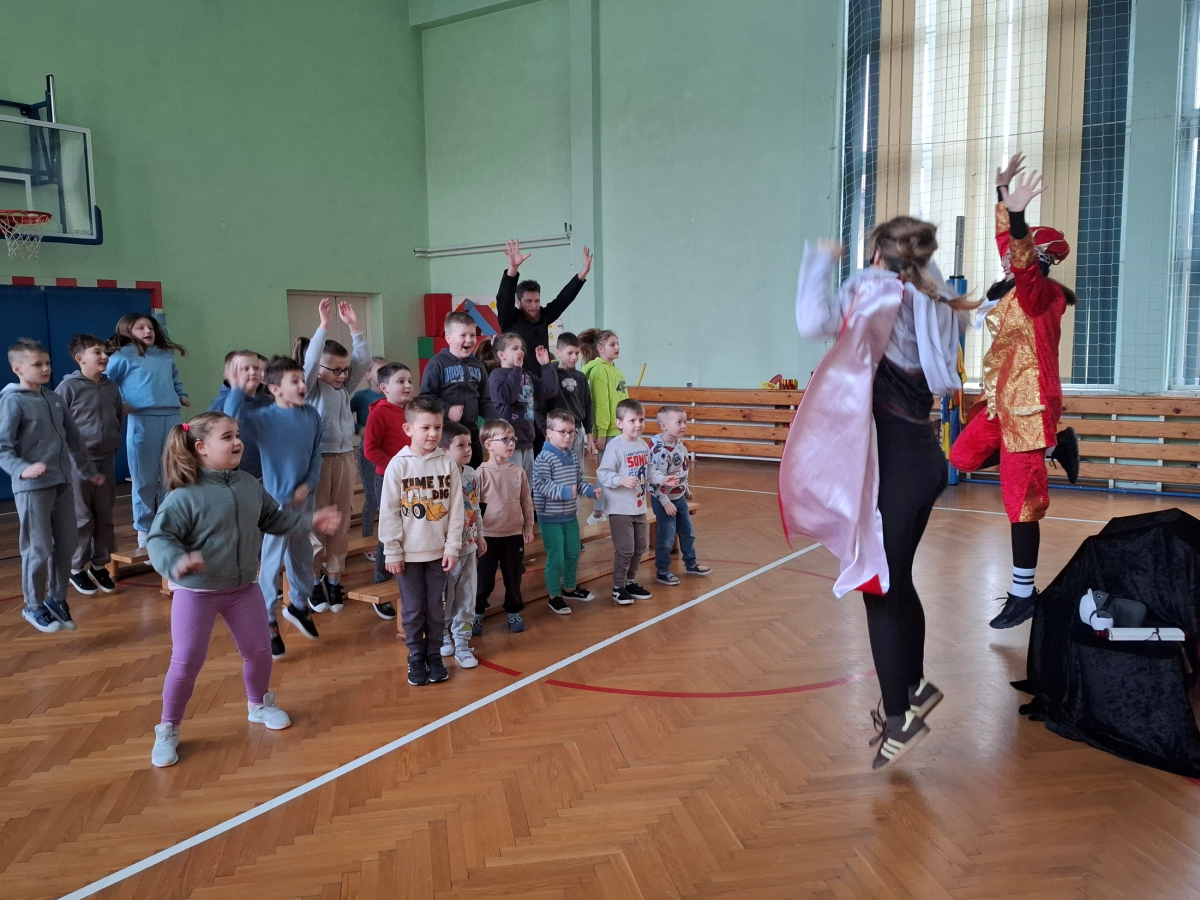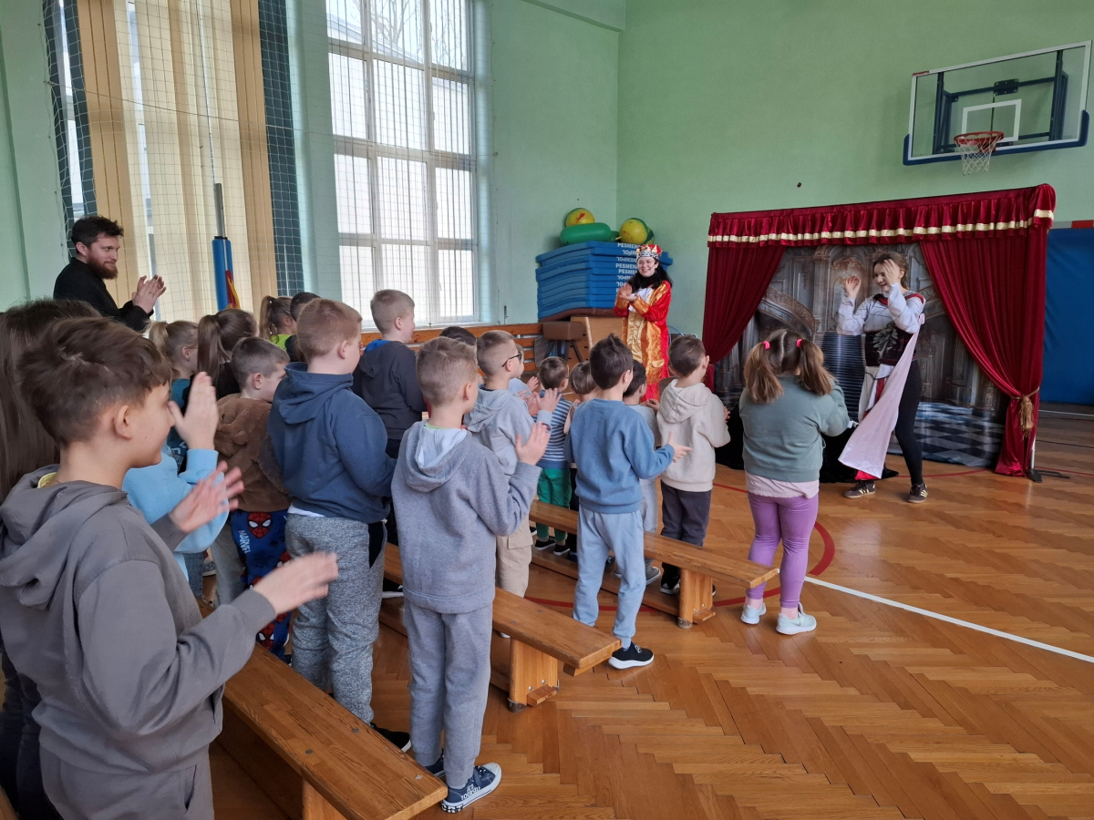 3 lutego 2026 roku do naszej szkoły ponownie zawitał Krakowski Teatr Profilaktyczny „Magiczna Scena”. Aktorzy przedstawili wyjątkowy spektakl pt. „Tajemnica zaginionych książek”, który skierowany był do przedszkolaków oraz uczniów klas 1-3. Celem przedstawienia było zwrócenie uwagi na znaczenie czytania książek oraz problem uzależnień. Spektakl wzbudził ogromne zainteresowanie, dostarczył wielu emocji oraz przekazał dzieciom wartościowe przesłanie.