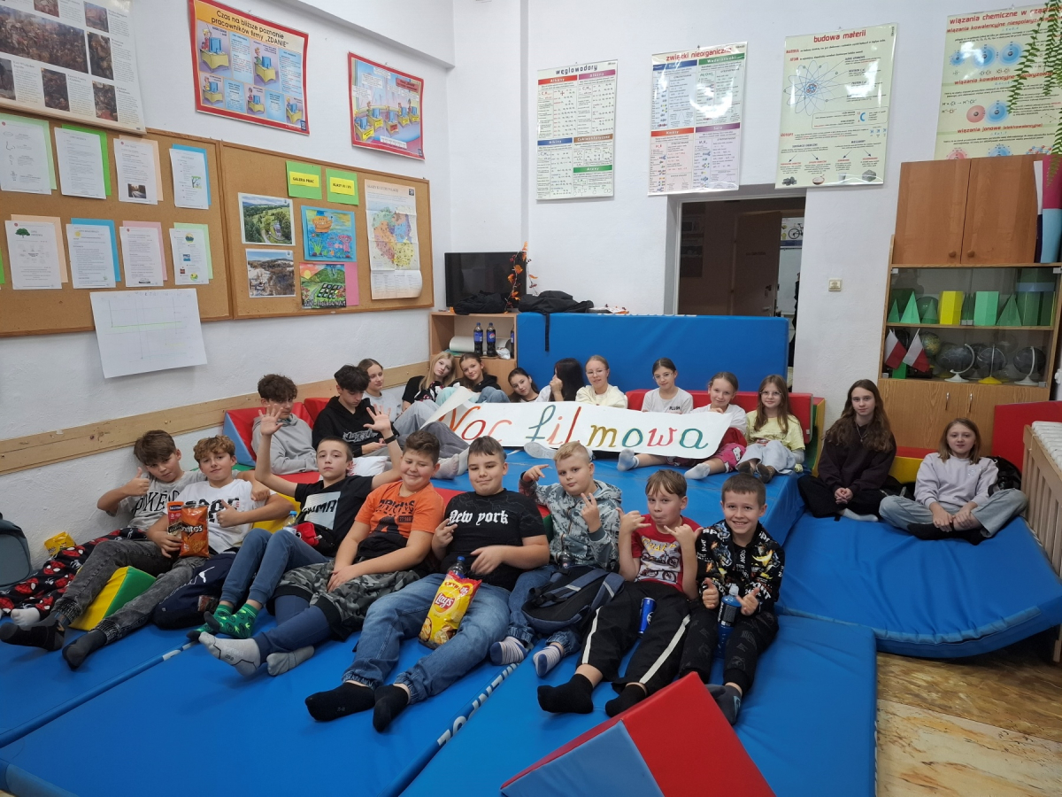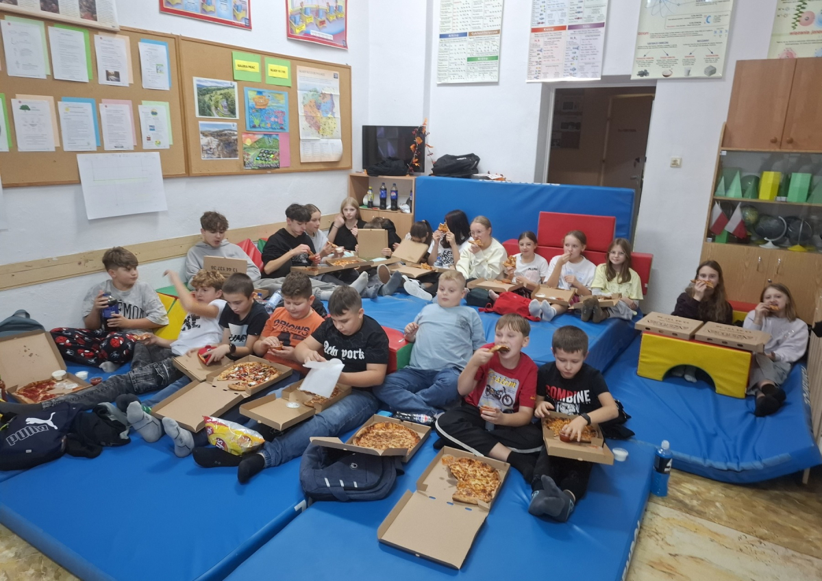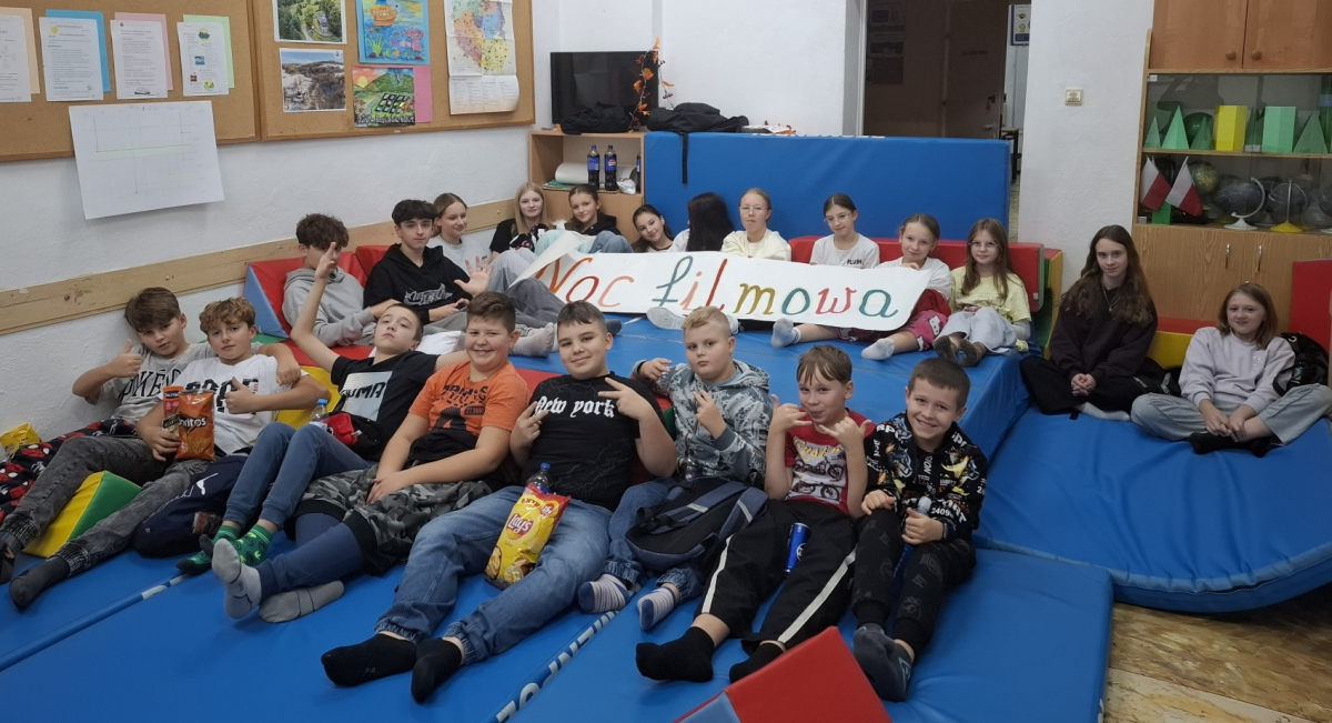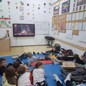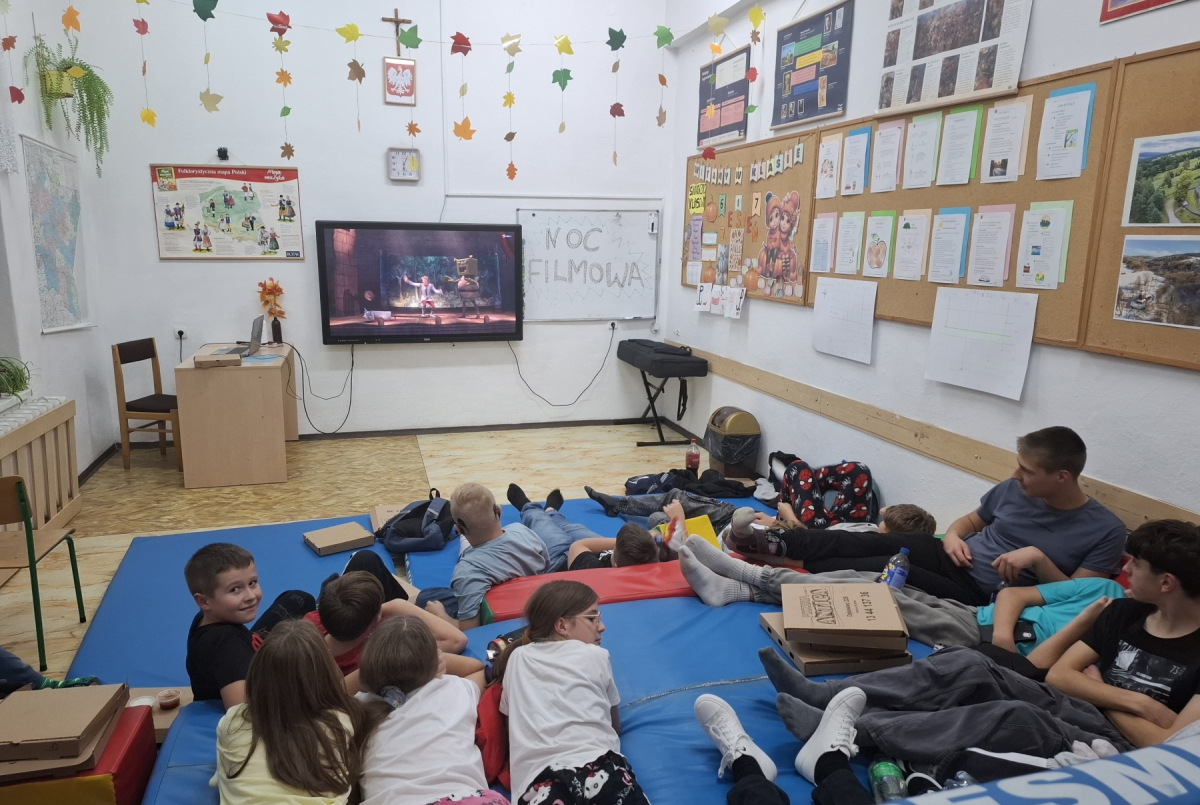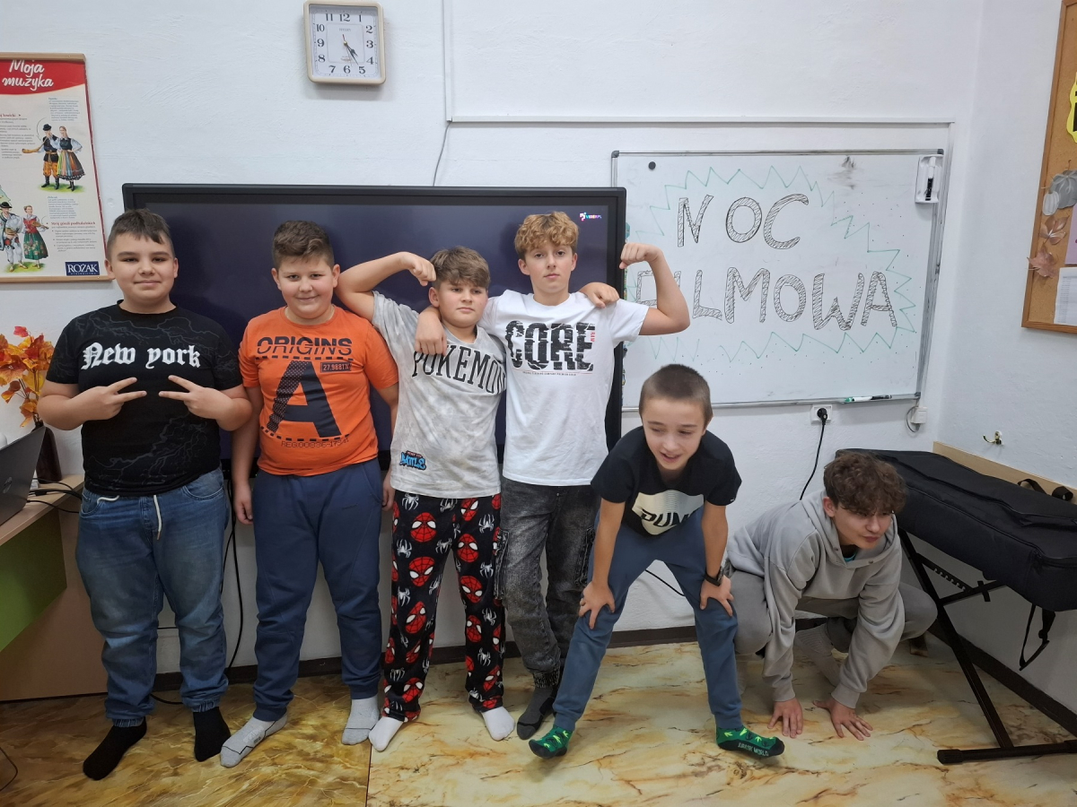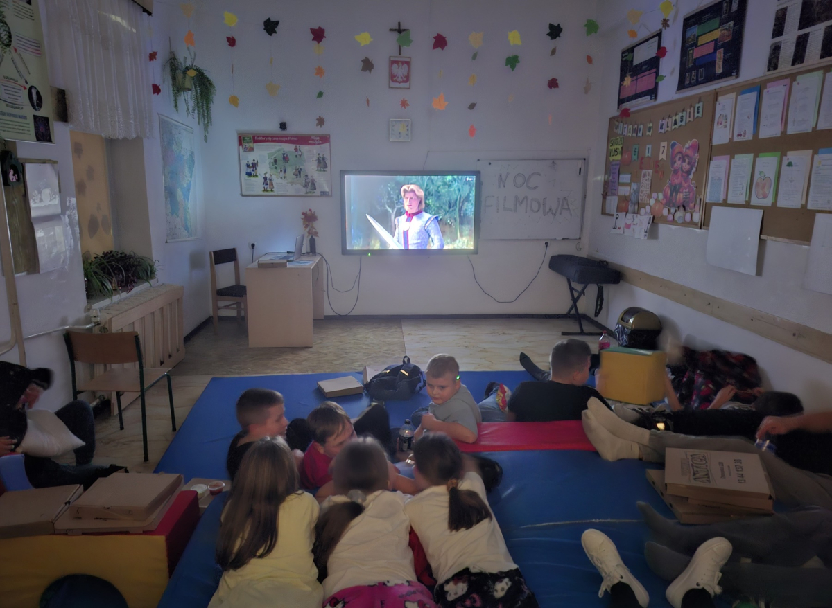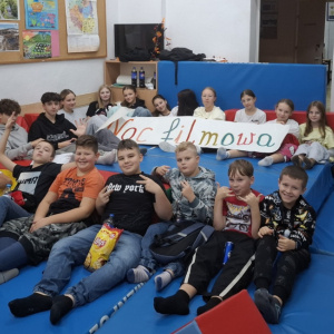 28.10.2025 roku w naszej szkole odbyła się „Noc filmowa”. Wzięli w niej udział chętni uczniowie z klas IV- VIII. Była to wyjątkowa okazja, by wspólnie spędzić wieczór w atmosferze zabawy, śmiechu i integracji. Podczas spotkania uczniowie oglądali filmy i miło spędzali czas z kolegami i koleżankami z innych klas. Nie zabrakło też pysznej pizzy, która dodała energii na filmowe emocje. Spotkanie odbyło się w przesympatycznej i naprawdę luźnej atmosferze. Opiekę nad uczniami i całą imprezą sprawowali wychowawcy klas. To był naprawdę miło spędzony czas w szkolnych murach./JB/