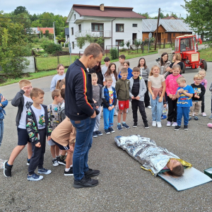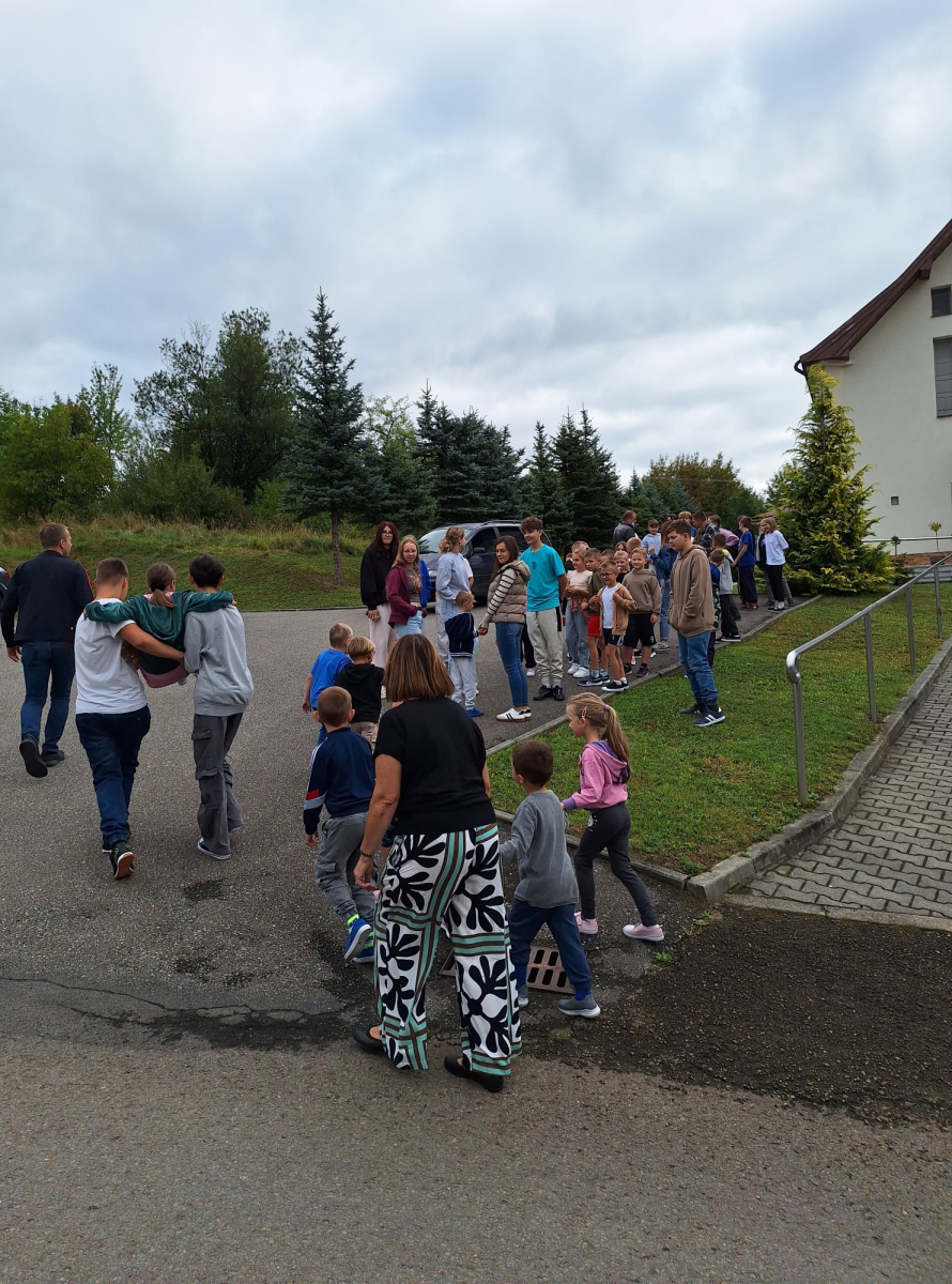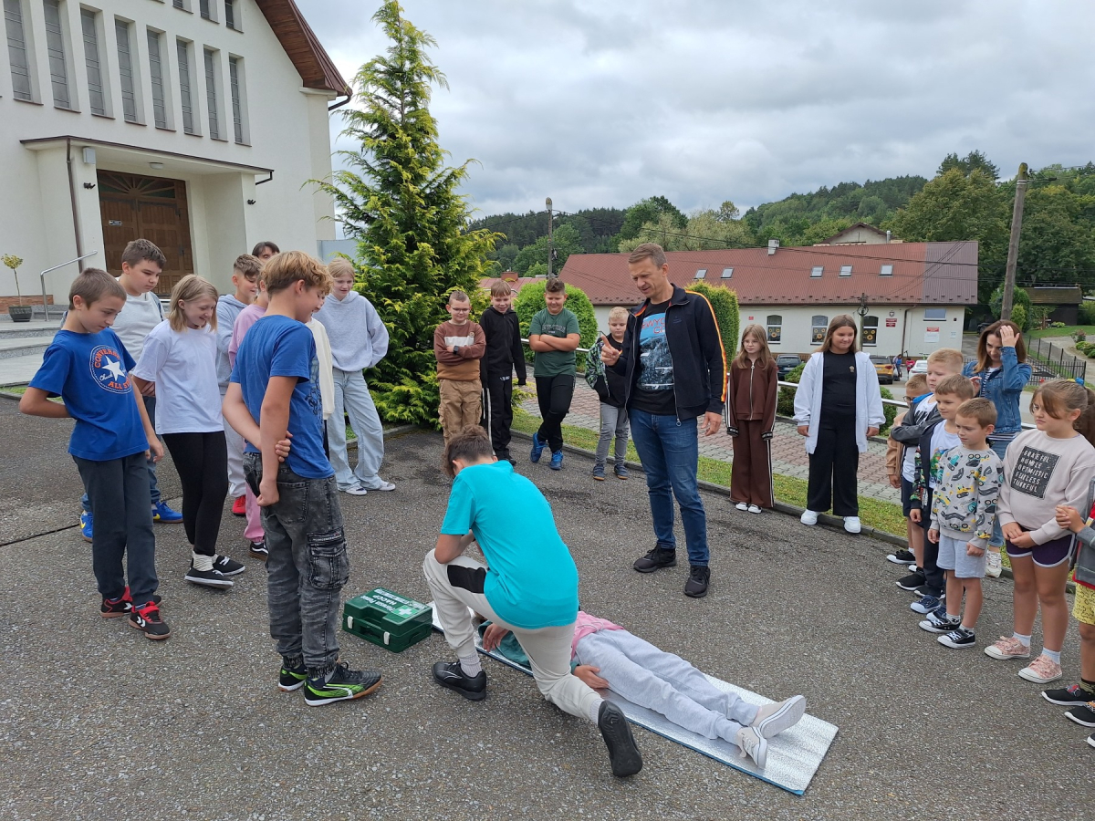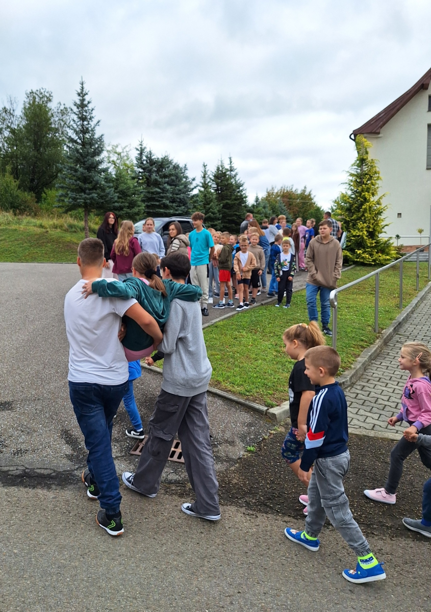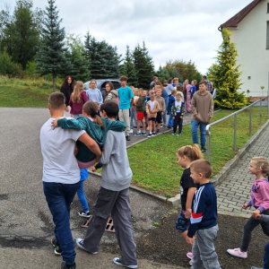 15.09.2025 roku odbyła się w naszej szkole próbna ewakuacja. Głównym celem przeprowadzonych ćwiczeń było zapoznanie uczniów i pracowników szkoły z praktycznym zastosowaniem procedur dotyczących zachowania się w przypadku wybuchu pożaru lub powstania innego zagrożenia dla życia i zdrowia. Po trzykrotnym sygnale dźwiękowym, uczniowie wraz z nauczycielami i pracownikiem szkoły opuścili budynek i udali się na miejsce zbiórki - plac przy naszym kościele. Cała akcja w wyznaczonym czasie przebiegła sprawnie i zgodnie z zasadami postępowania w czasie niebezpieczeństw. Ewakuację przeprowadził pan Ireneusz Michalik inspektor BHP.