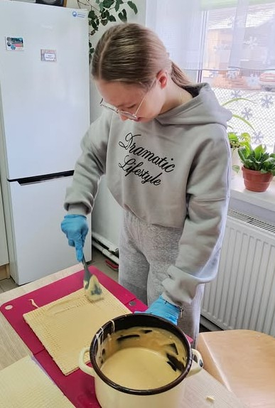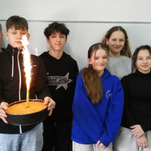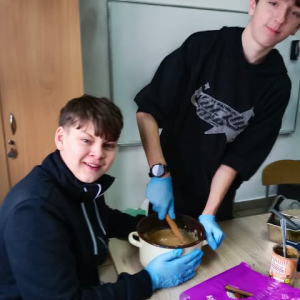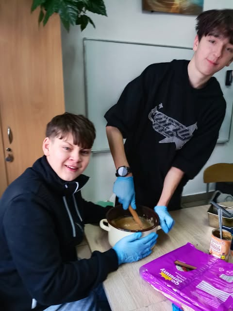 2 lutego 2026 roku podczas zajęć w szkole pokusiliśmy się o skorzystanie ze starych przepisów i przygotowaliśmy wspólnie z uczniami następujące łakocie: krem sułtański, oczywiście w wersji bezalkoholowej, szyszki z masy kajmakowej i ryżu dmuchanego, kultowy blok czekoladowy, oraz wafel przekładany. Uczniowie zajadali także torcik ambasador z galaretką z ananasem – w czasach PRL-u ananasy w puszce były symbolem luksusu - można je było kupić wyłącznie w Peweksie za dewizy lub bony towarowe. Wspólna praca sprawiła naszym wychowankom wiele radości, podczas projektu uczniowie wykorzystali sprzęt z programu Laboratoria Przyszłości. Nasyceni prostymi słodkościami ósmoklasiści chętnie dzielili się wytworami swojej pracy z dziećmi z młodszych klas.
