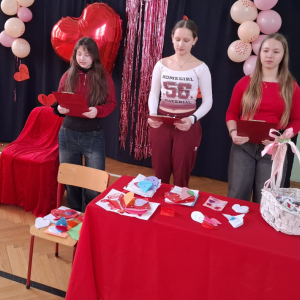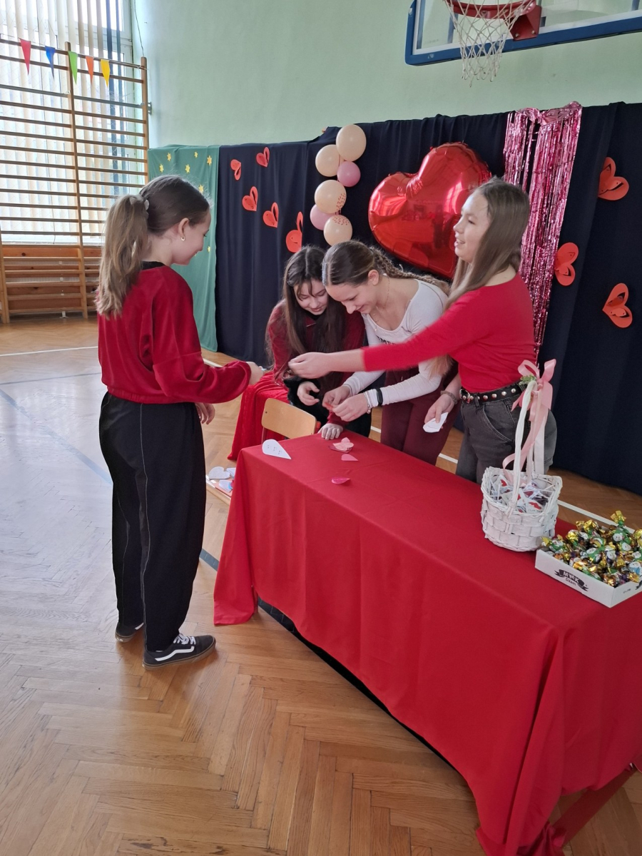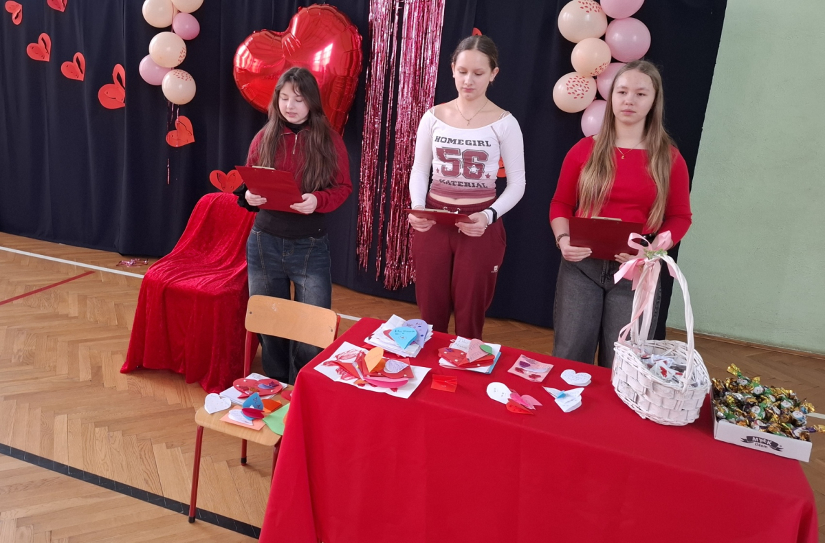13.02.2026 roku w naszej szkole obchodziliśmy Walentynki. Z tej okazji Samorząd Szkolny zorganizował walentynkową akcję, w ramach której uczniowie ubrali się na czerwono lub różowo, tworząc wyjątkową i radosną atmosferę. Nie zabrakło również poczty walentynkowej – uczniowie mogli wysyłać i otrzymywać kartki walentynkowe, sprawiając sobie nawzajem miłe niespodzianki. Dodatkowo Samorząd Szkolny przygotował drobne upominki dla uczniów, które były miłym akcentem tego wyjątkowego dnia.