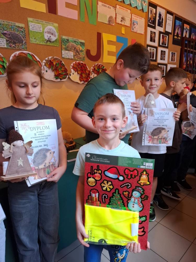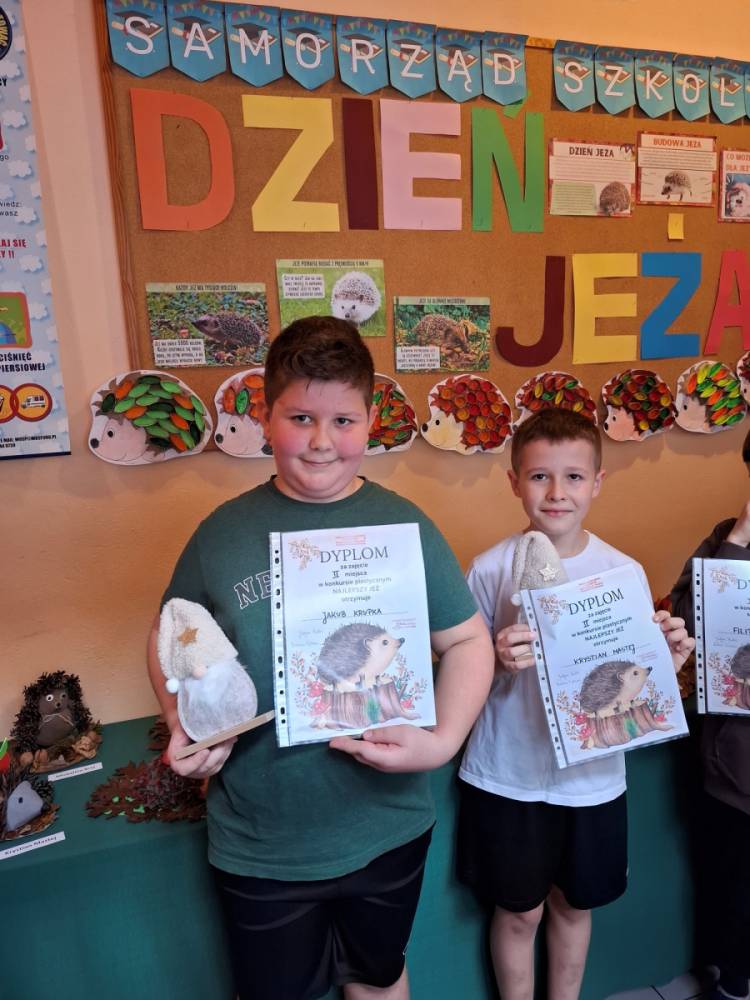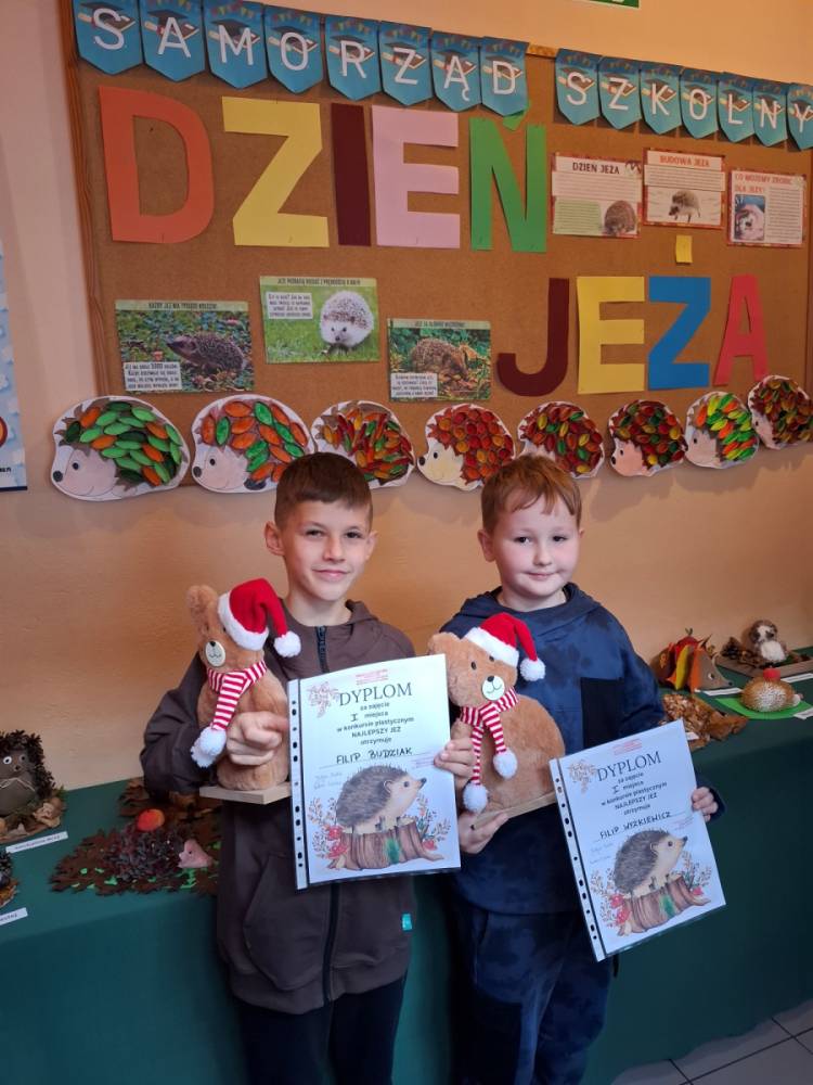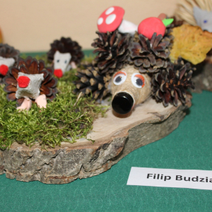 W ramach obchodów Samorząd Szkolny zorganizował również konkurs plastyczny pt. „Najlepszy jeż”. Zadaniem uczestników było stworzenie przestrzennej pracy plastycznej. Kreatywność uczniów przerosła wszelkie oczekiwania – na konkurs wpłynęło naprawdę wiele pięknych, dopracowanych i pomysłowych prac.
