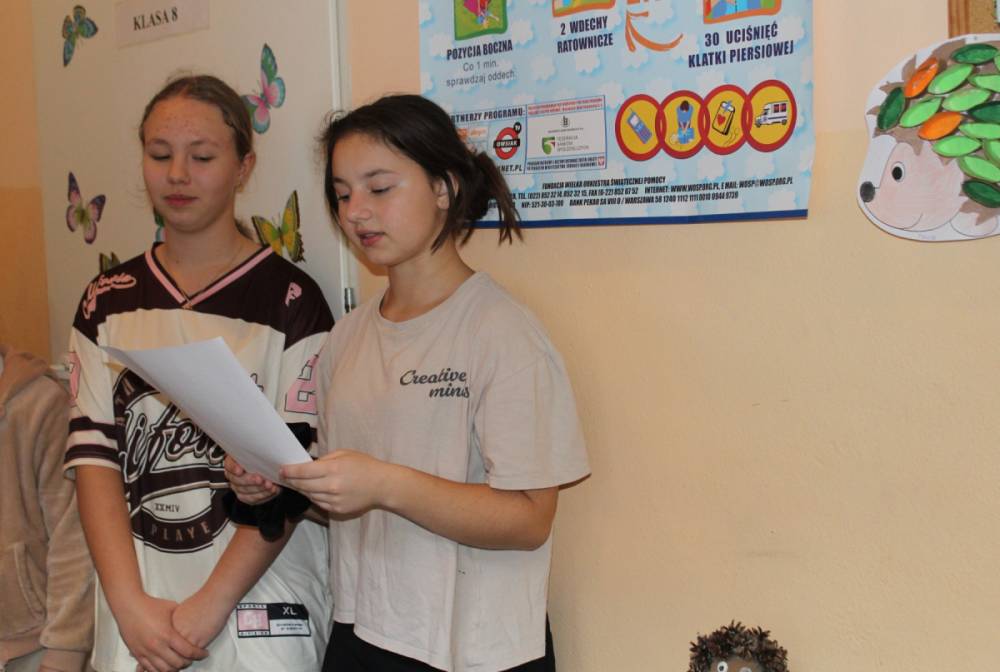 10 listopada 2025 roku w naszej szkole obchodziliśmy Dzień Jeża – wyjątkowe święto, podczas którego zwracaliśmy uwagę na potrzeby i ochronę tych pożytecznych, ale często zagrożonych zwierząt. Z tej okazji Samorząd Szkolny przygotował specjalną gazetkę tematyczną, którą można obejrzeć na szkolnym korytarzu. Znajdują się tam ciekawostki o jeżach, informacje o ich zwyczajach, sposobach pomocy im w okresie jesienno-zimowym oraz kolorowe prace plastyczne wykonane przez uczniów.