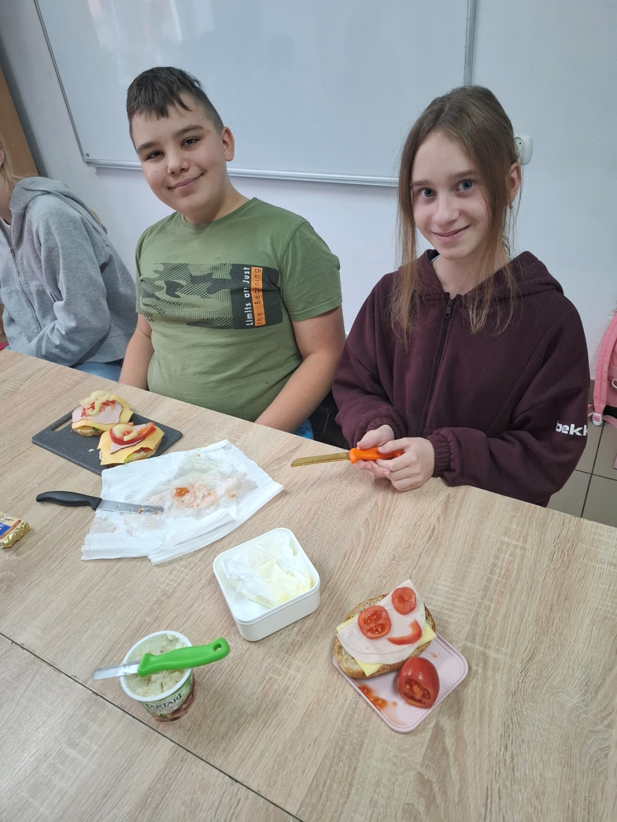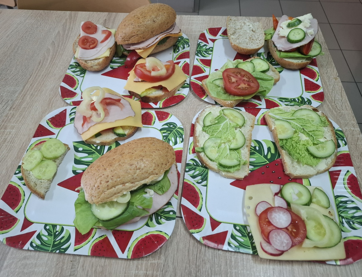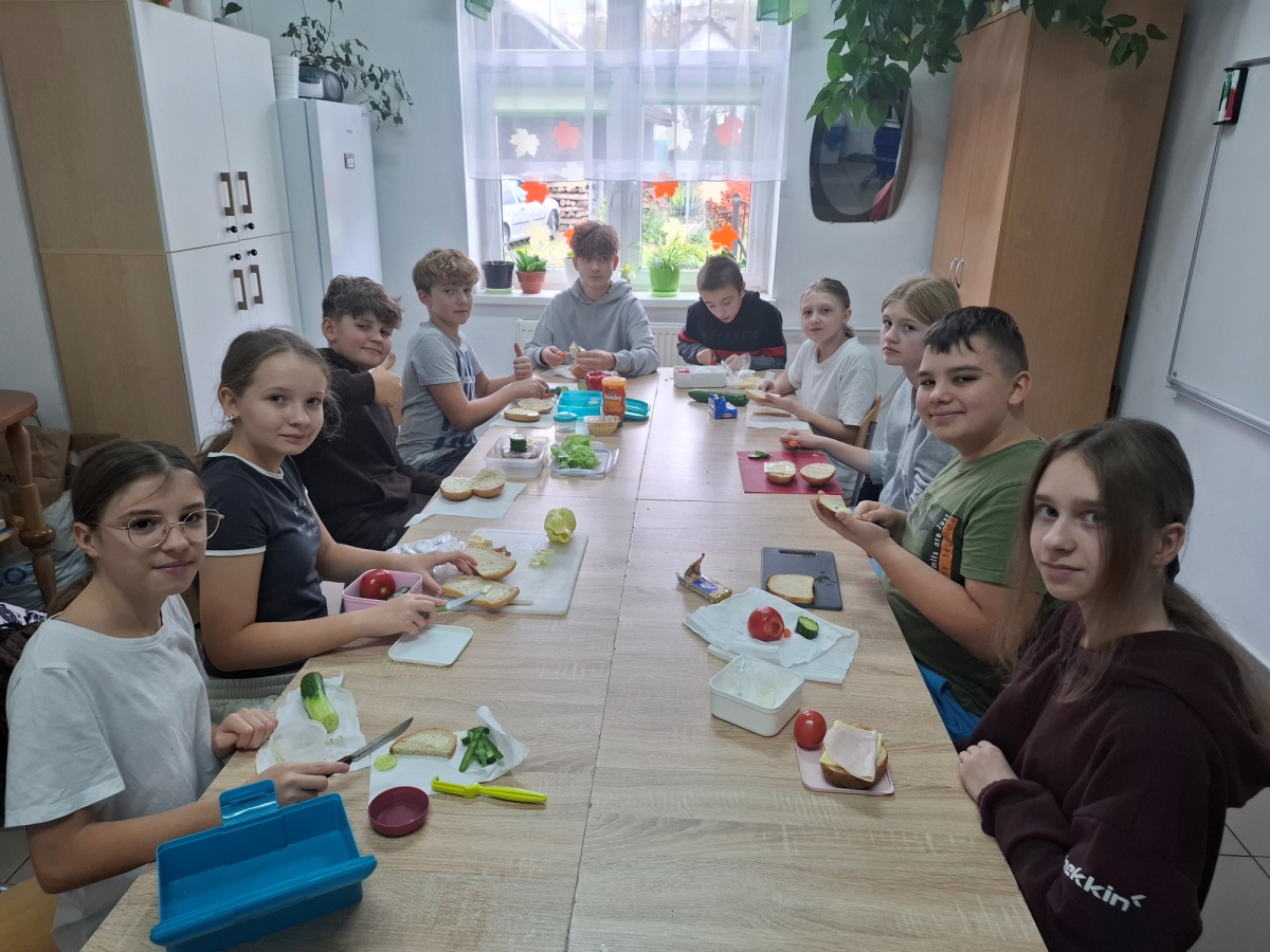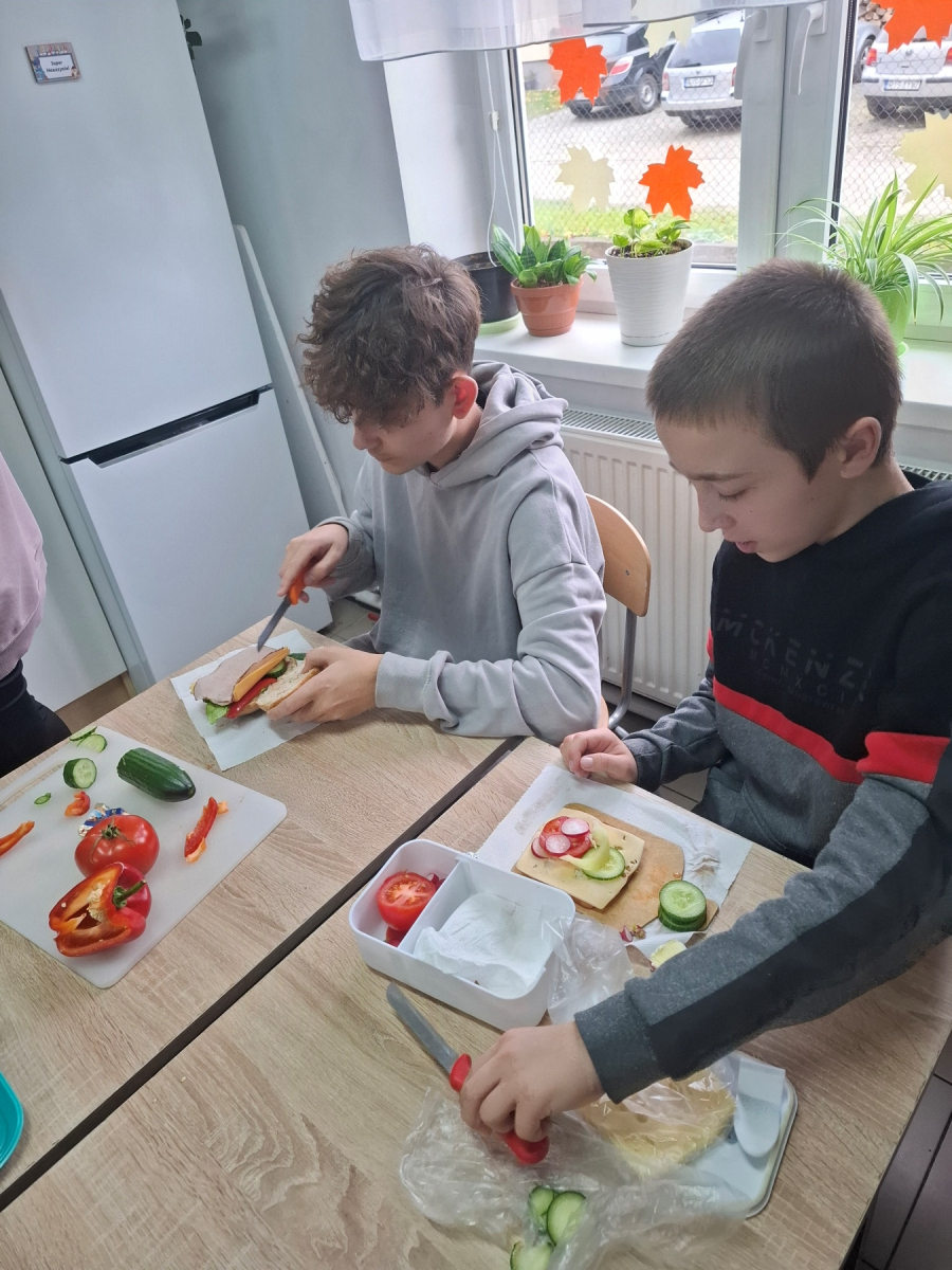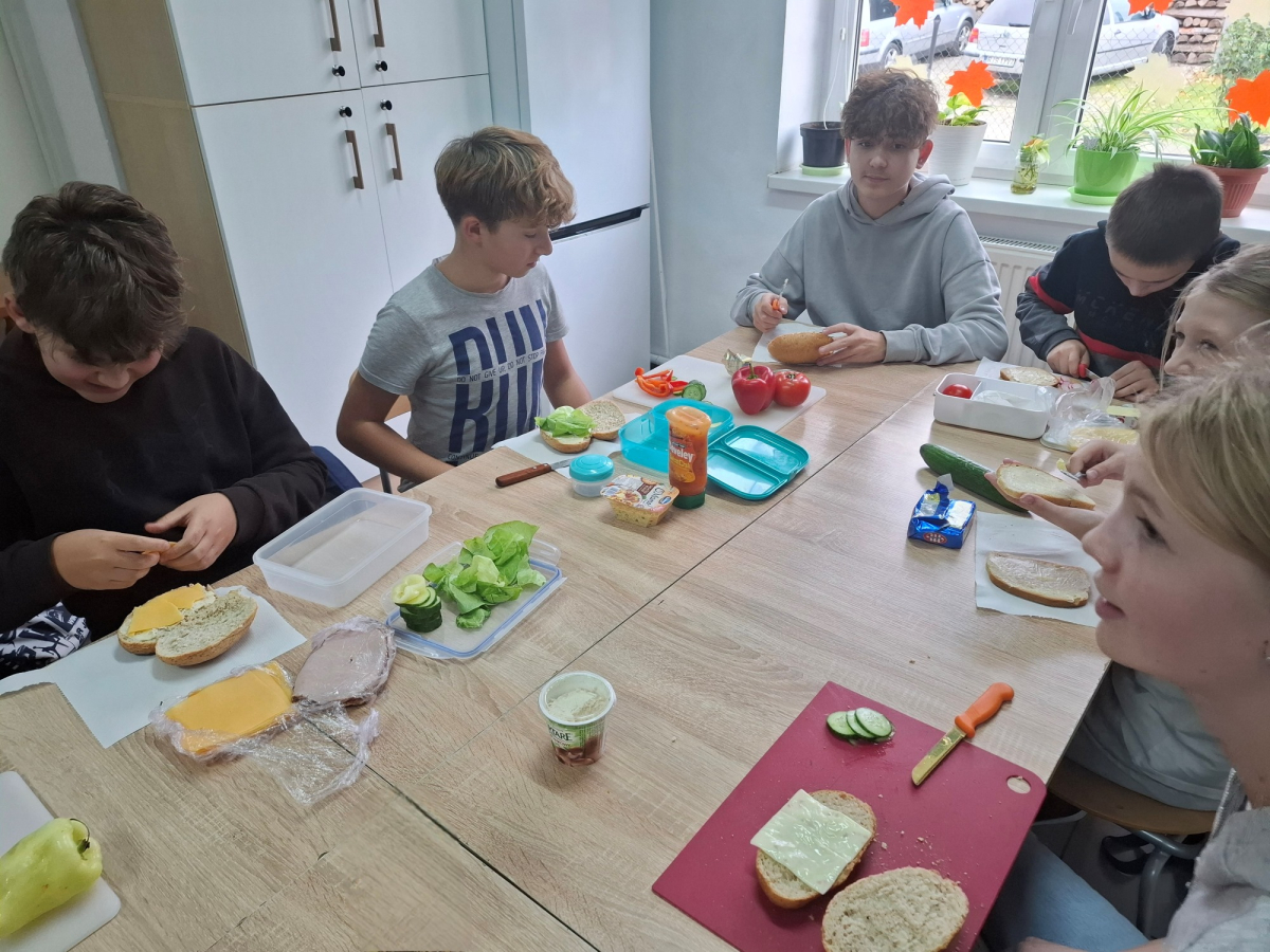 W ramach lekcji wychowawczej uczniowie klas VI i VII wzięli udział w zajęciach poświęconych promowaniu zdrowego stylu życia oraz prawidłowych nawyków żywieniowych. Głównym punktem spotkania było wspólne przygotowywanie zdrowych, kolorowych i smacznych kanapek. Podczas zajęć uczniowie przypomnieli sobie, jak ważne jest codzienne spożywanie drugiego śniadania, a także jak duże znaczenie ma wybór pełnowartościowych produktów. Następnie, wykorzystując różnorodne składniki, każdy uczeń stworzył własną, niepowtarzalną kompozycję kanapki.