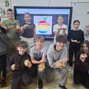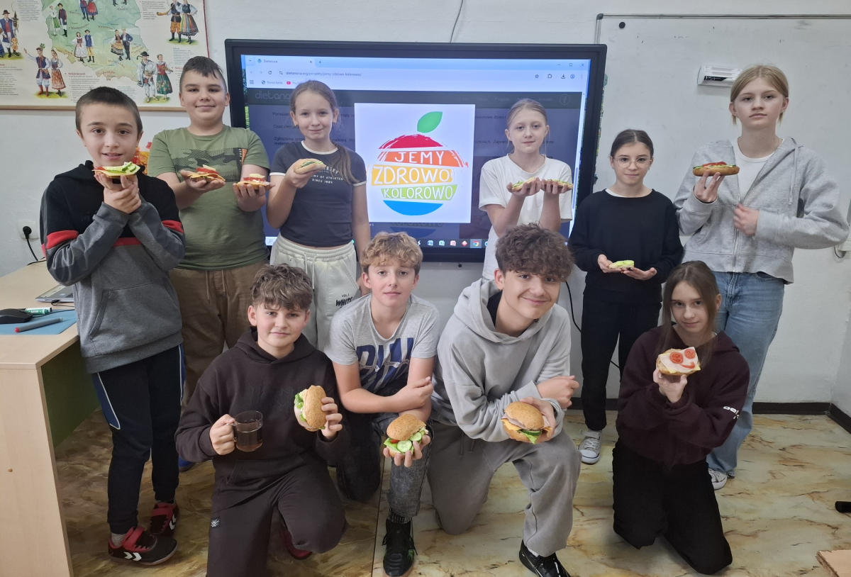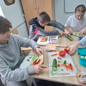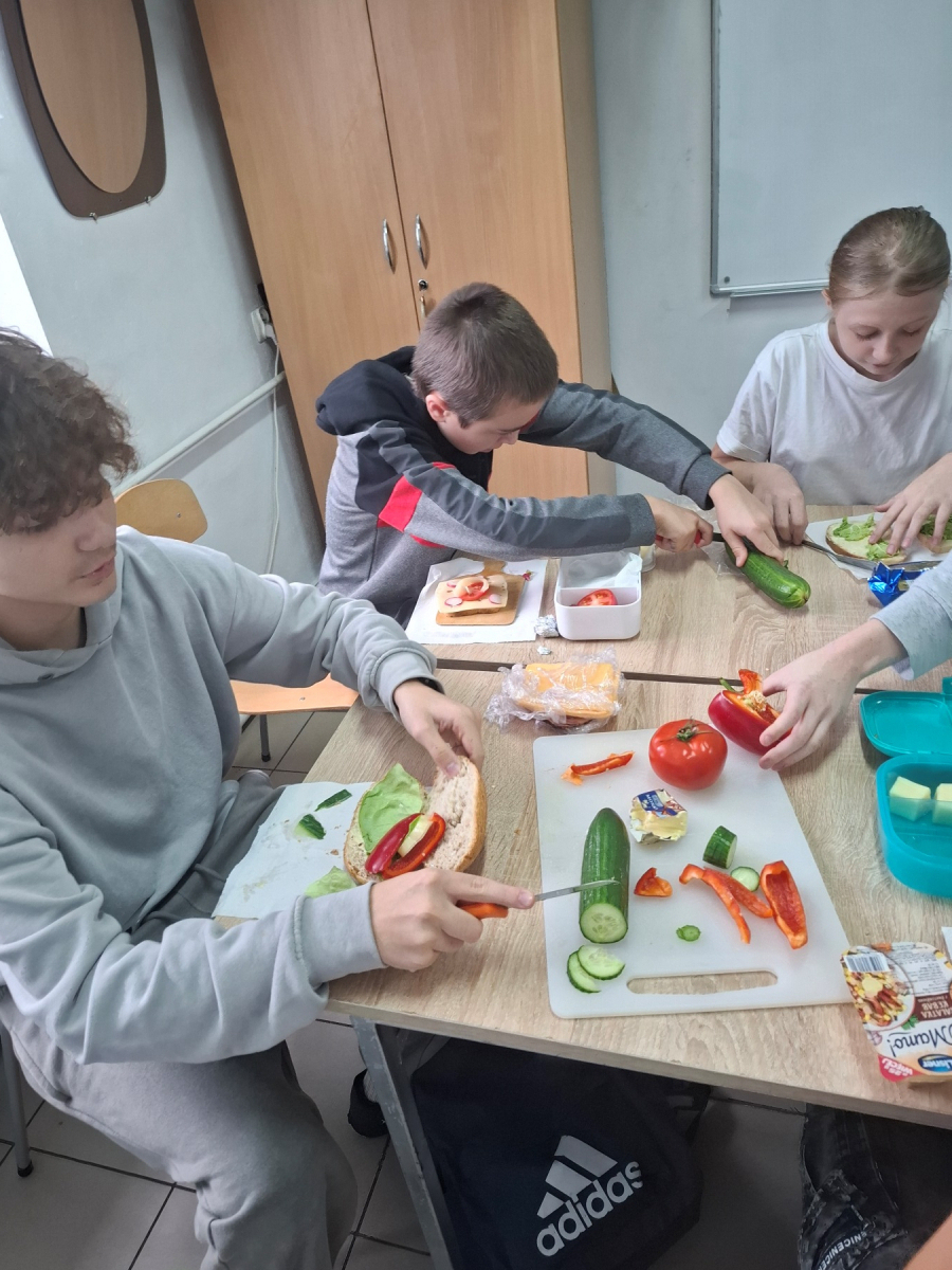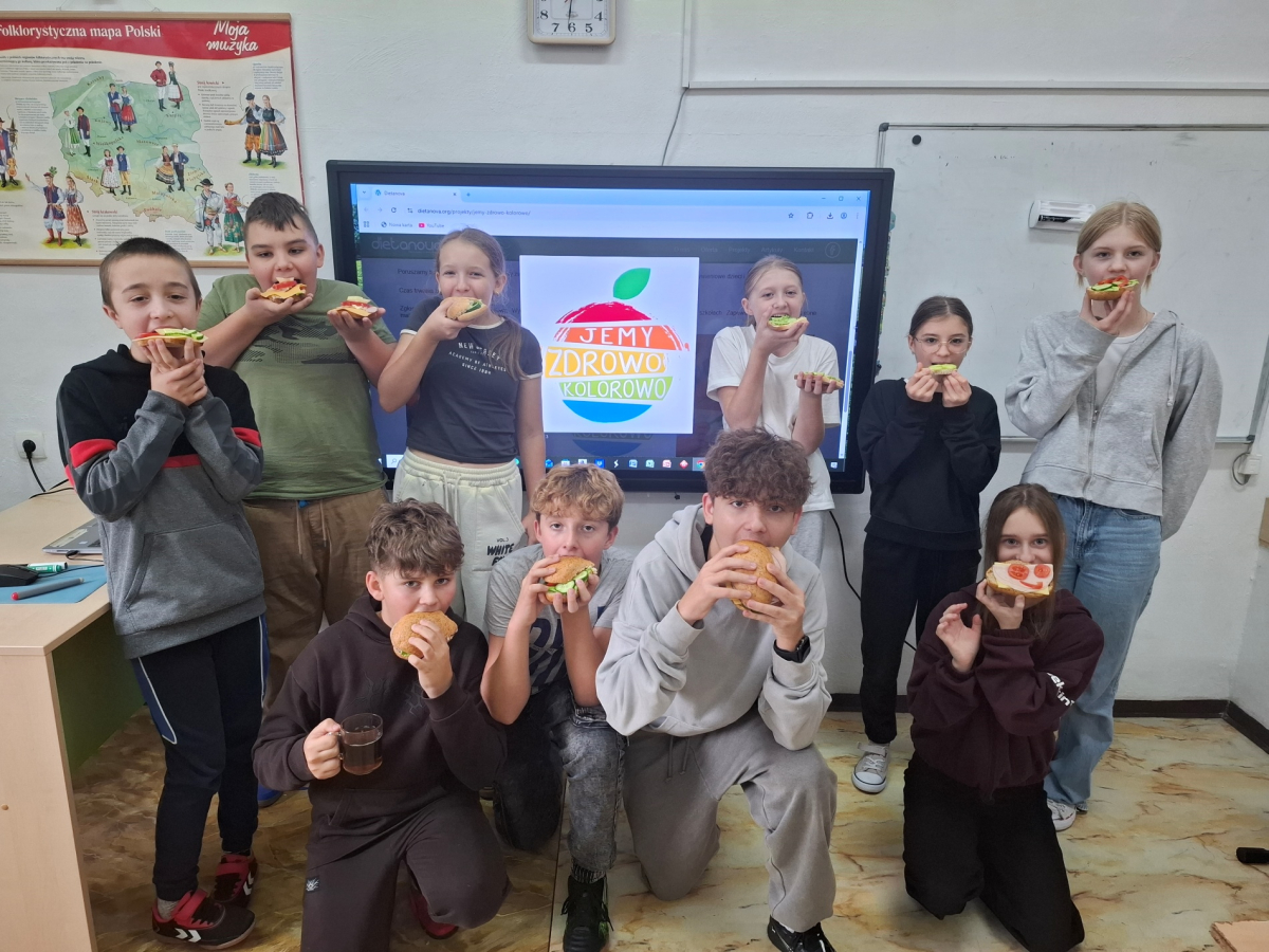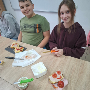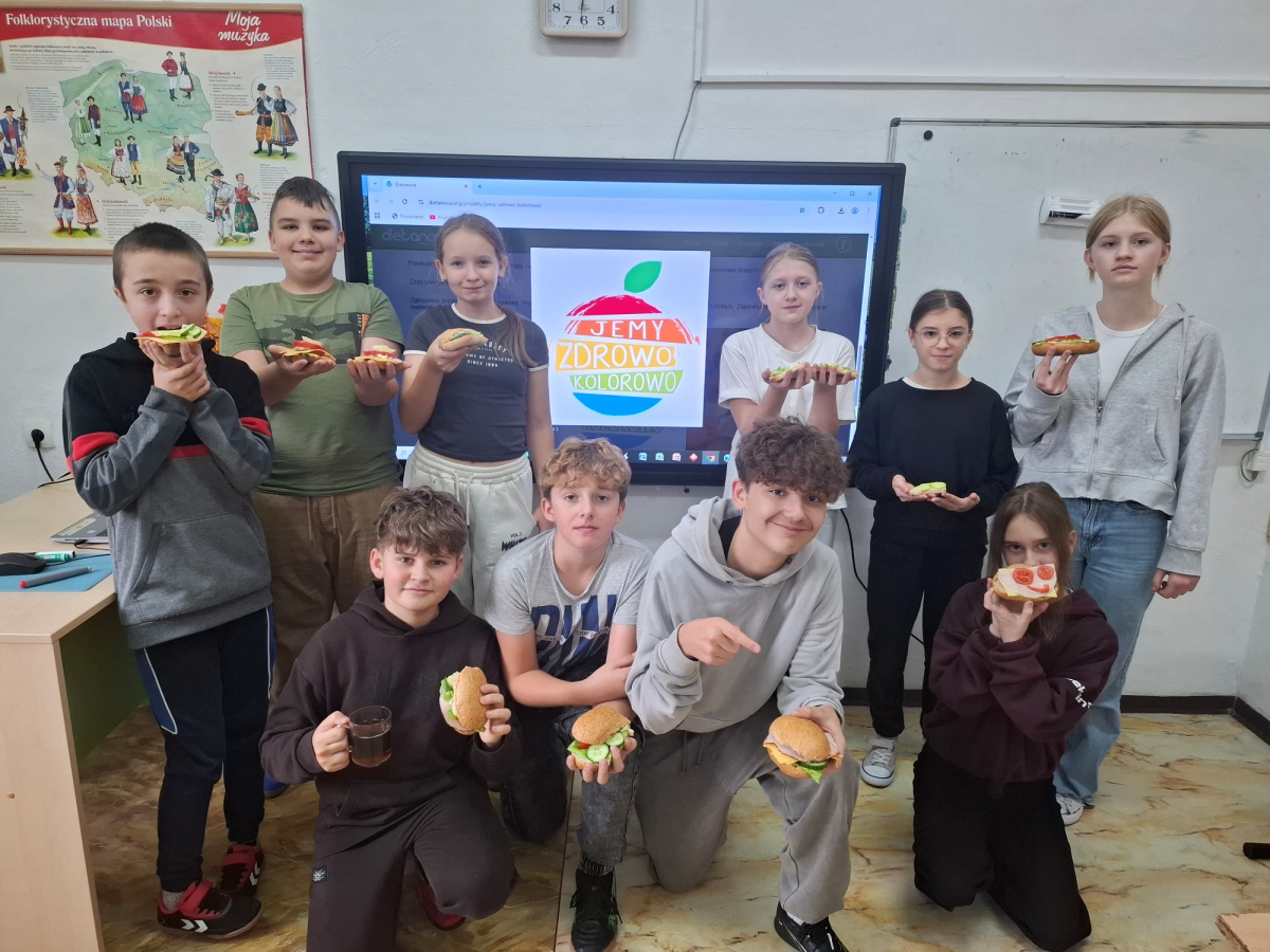 W ramach lekcji wychowawczej uczniowie klas VI i VII wzięli udział w zajęciach poświęconych promowaniu zdrowego stylu życia oraz prawidłowych nawyków żywieniowych. Głównym punktem spotkania było wspólne przygotowywanie zdrowych, kolorowych i smacznych kanapek. Podczas zajęć uczniowie przypomnieli sobie, jak ważne jest codzienne spożywanie drugiego śniadania, a także jak duże znaczenie ma wybór pełnowartościowych produktów. Następnie, wykorzystując różnorodne składniki, każdy uczeń stworzył własną, niepowtarzalną kompozycję kanapki.