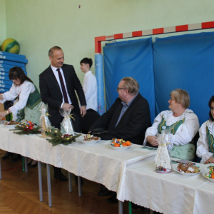 Występ naszych wychowanków uwieńczył taniec dzieci z klasy II-III pt. „Życzymy Wesołych Świąt". Następnie panie z Rady Rodziców zaprosiły wszystkich zebranych na pyszny poczęstunek – pierogi, owoce, oraz pierniczki ozdabiane wcześniej przez naszych uczniów na warsztatach zorganizowanych przez KGW w Dobryni. Pod koniec spotkania Pani Dyrektor Bożena Jurkowska podziękowała dzieciom za ich występy, życząc wszystkim radosnego oczekiwania na narodzenie Jezusa i rodzinnych Świąt Bożego Narodzenia. W ramach podsumowań kończącego się roku 2025 pani dyrektor podziękowała wszystkim za doskonałą współpracę, a uczniowie klasy VIII wręczyli drobne upominki przyjaciołom wspierającym naszą szkołę: Panu Marcinowi Bolkowi - Wójtowi Gminy Dębowiec, panu Mirosławowi Mastejowi z Centrum Zdrowia Dr Mastej, pani Dorocie Sroka-Lewosz - radnej Gminy Dębowiec, pani Bożenie Jędryczce – sołtys wsi Dobrynia, oraz pani Marii Maczudze - przewodniczącej Rady Rodziców i Koła Gospodyń Wiejskich. Zaproszeni goście również zabrali głos wspominając młode lata spędzone w szkole, atmosferę przeżywanych niegdyś Świąt Bożego Narodzenia, oraz życząc zebranym radosnego przeżywania tegorocznej Gwiazdki./BB/