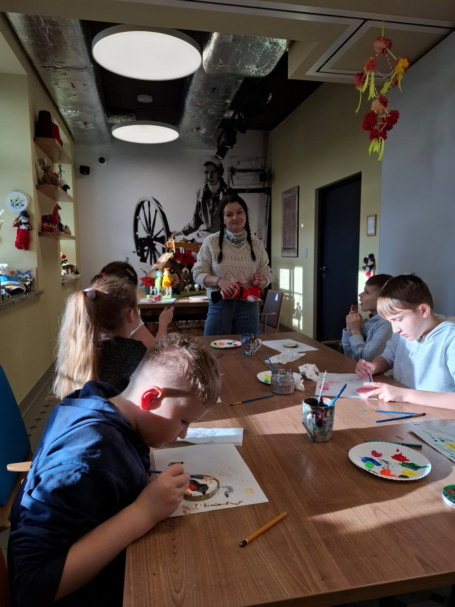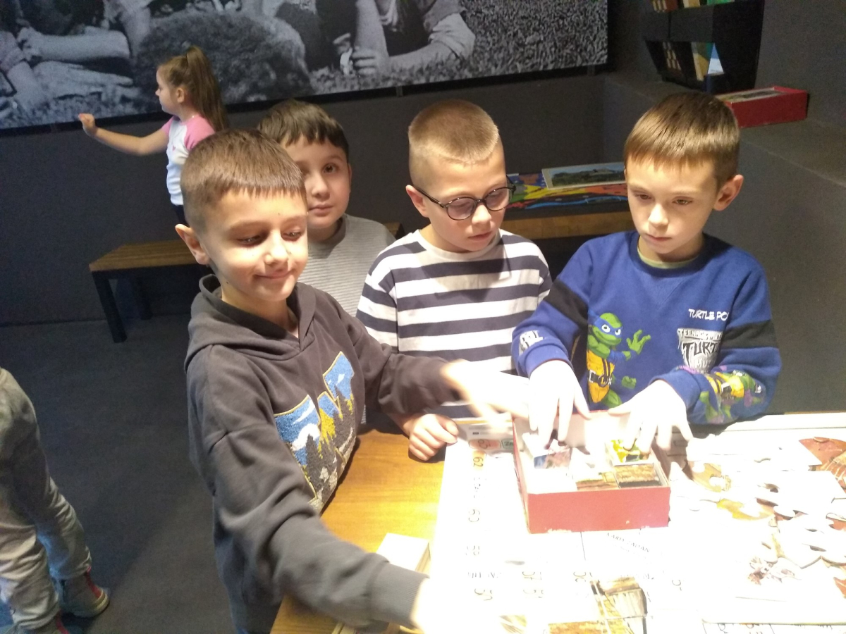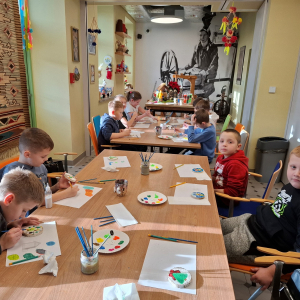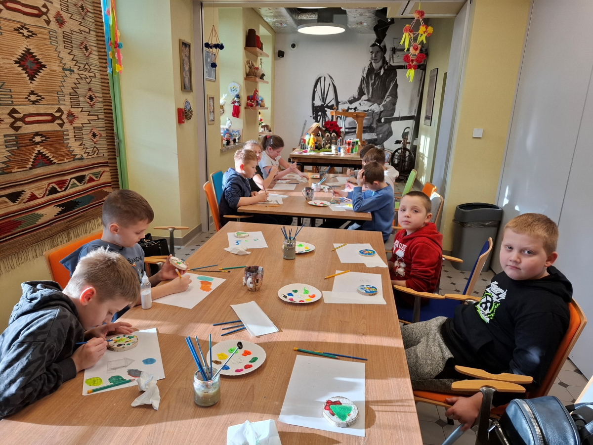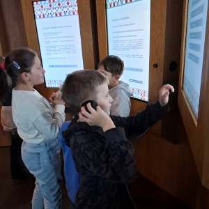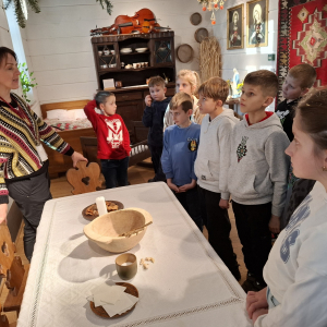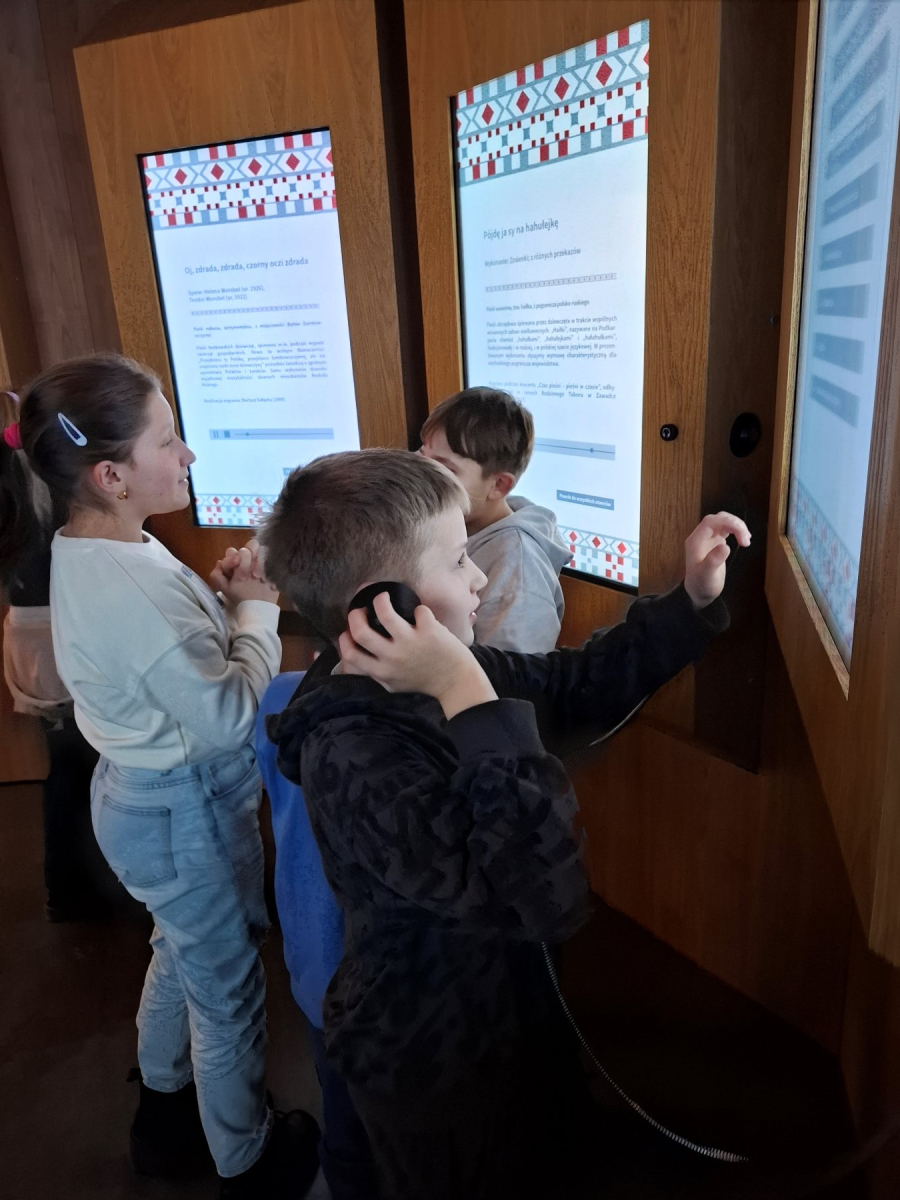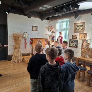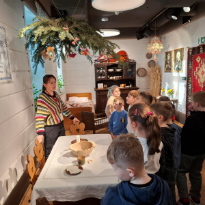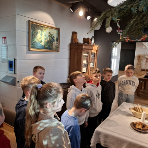 Kolejnym punktem wycieczki była wizyta w Etnocentrum Ziemi Krośnieńskiej oraz warsztaty rękodzielnicze. Dzieci zwiedzając sale stylizowane na historyczne miejsca zwane Podworcem, Pasternikiem, Izbą weselną i Izbą gościnną poznały dawne, dziś częsta zapomniane zwyczaje bożonarodzeniowe. Wszyscy wzięli udział w zajęciach plastycznych i wykonali własnoręcznie drewniane magnesy z motywem świątecznym. W trakcie zwiedzania uczniowie mogli skorzystać z wielu atrakcyjnych i nowoczesnych multimediów, m.in. Etnokaraoke, dzięki czemu mogli wspólnie zaśpiewać wybrane pieśni. Dużą popularnością cieszyła się także sala legend oraz multimedialne gry i zabawy w podziemiach Etnocentrum. Wycieczka była nie tylko ciekawa, ale przede wszystkim pouczająca. Dzieci zdobyły wiedzę o dawnych zwyczajach, rozwijały kreatywność, zdolności manualne, a także poczuły prawdziwą magię świąt./AR/
