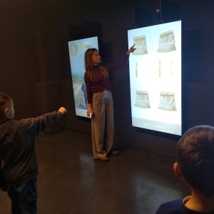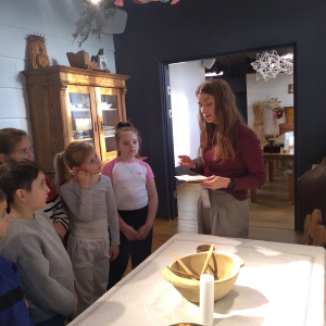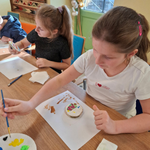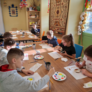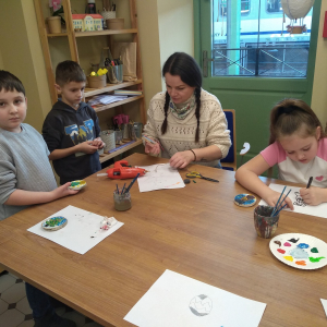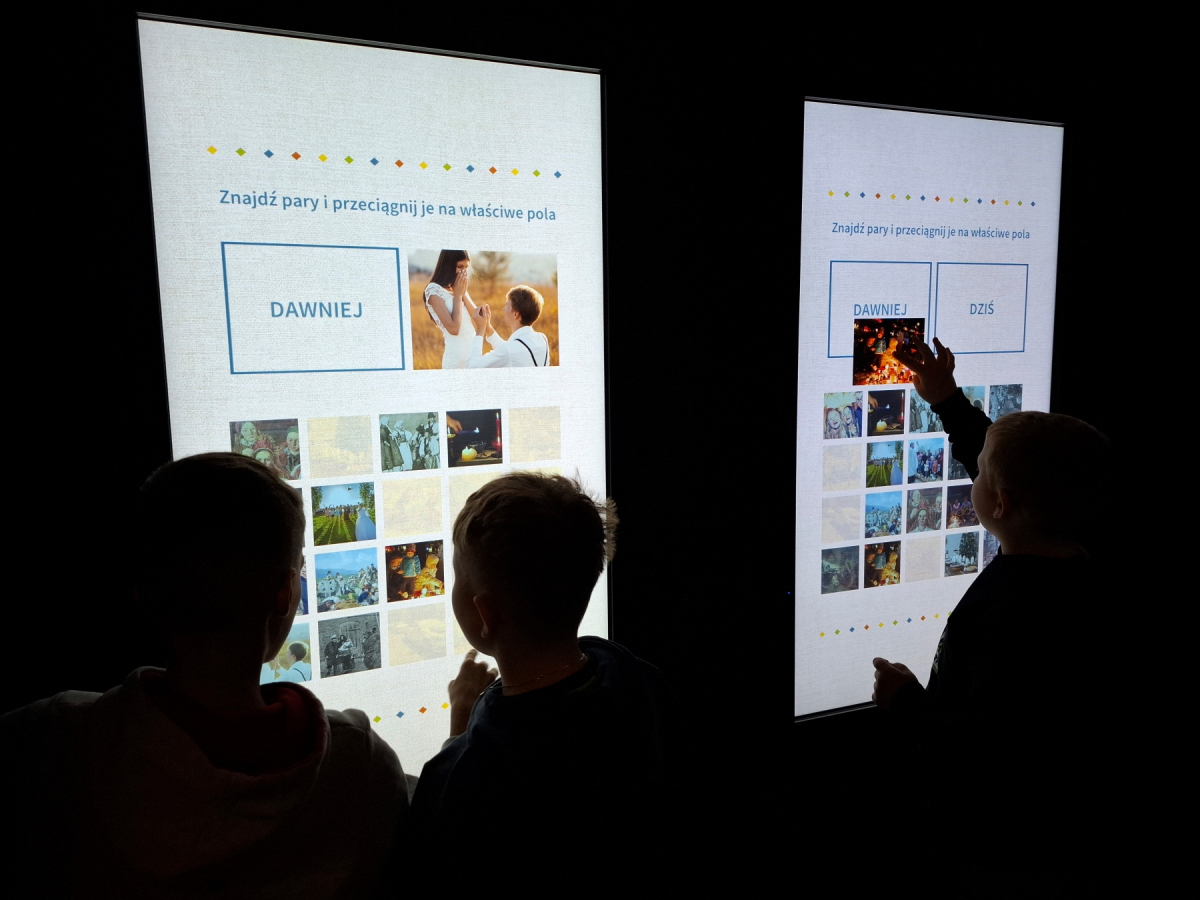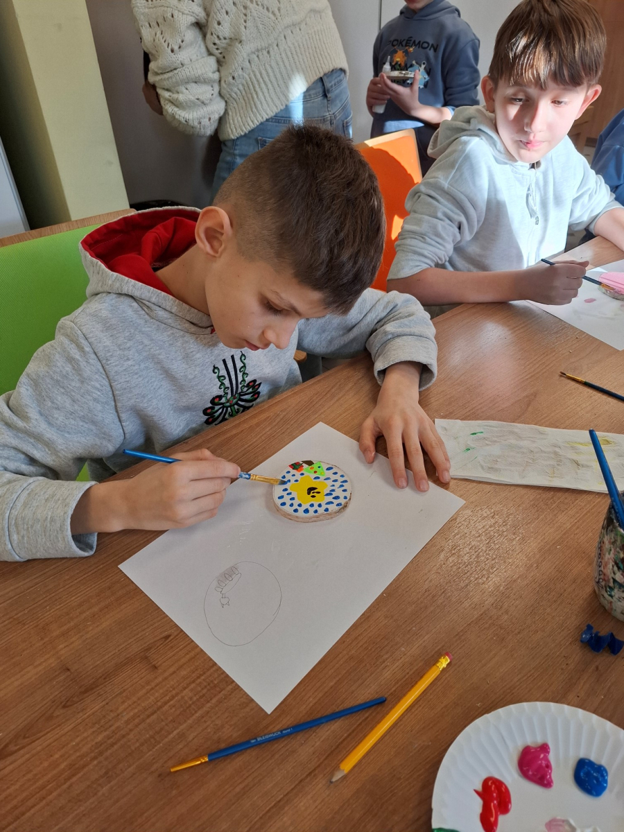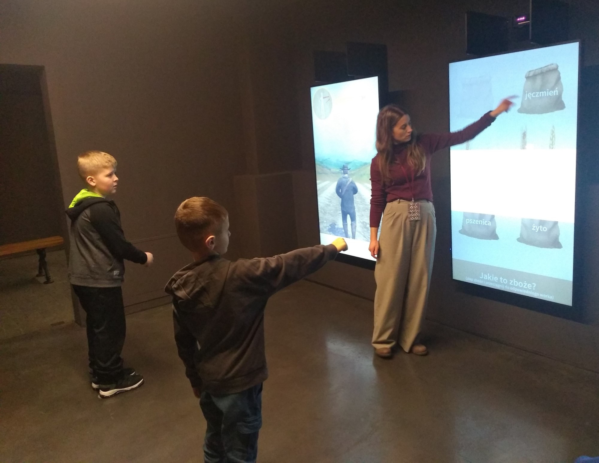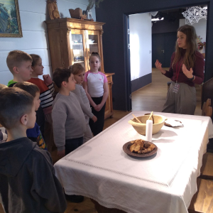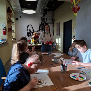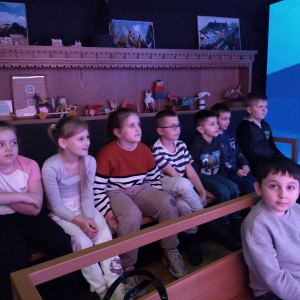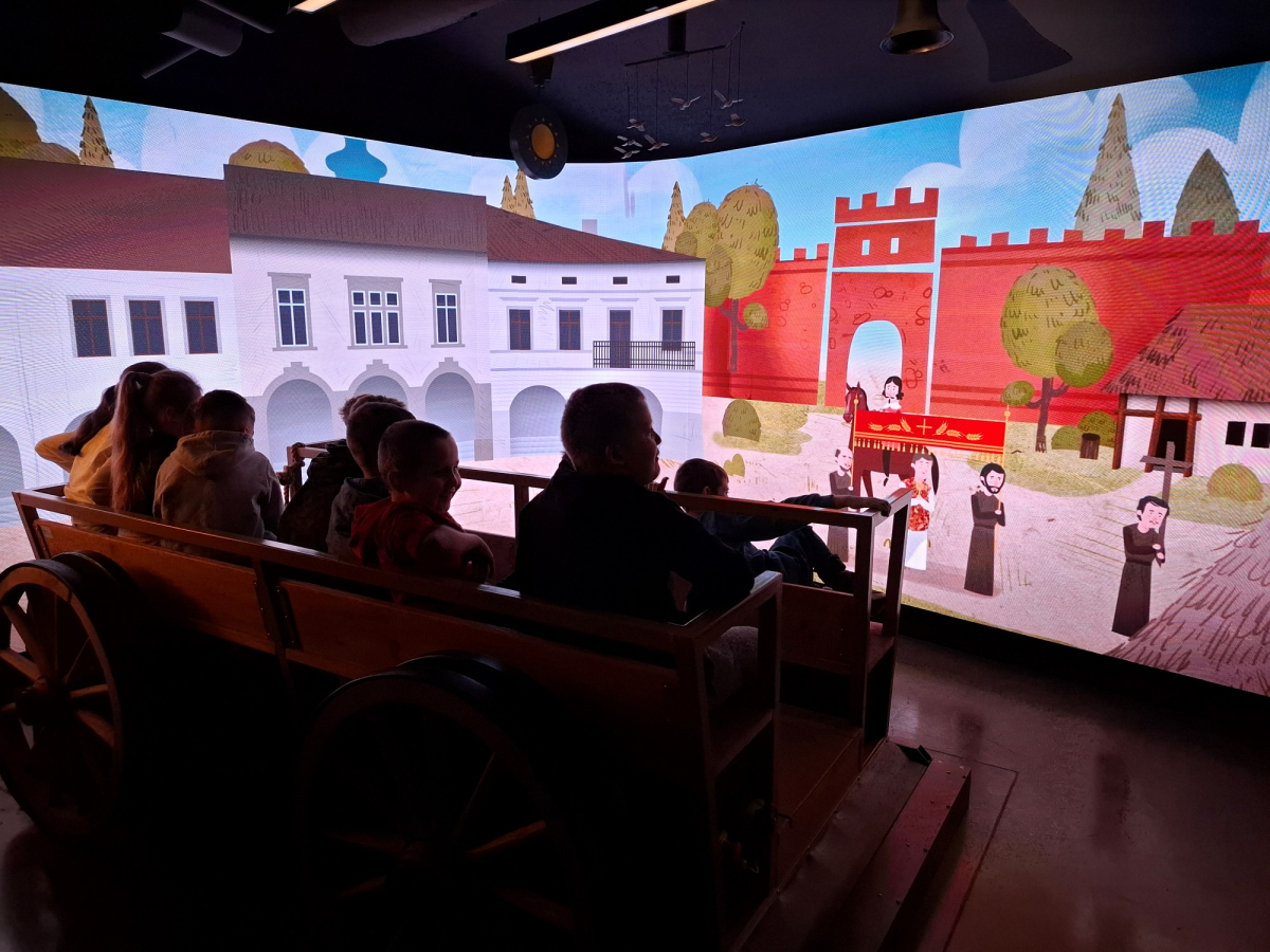Kolejnym punktem wycieczki była wizyta w Etnocentrum Ziemi Krośnieńskiej oraz warsztaty rękodzielnicze. Dzieci zwiedzając sale stylizowane na historyczne miejsca zwane Podworcem, Pasternikiem, Izbą weselną i Izbą gościnną poznały dawne, dziś częsta zapomniane zwyczaje bożonarodzeniowe. Wszyscy wzięli udział w zajęciach plastycznych i wykonali własnoręcznie drewniane magnesy z motywem świątecznym. W trakcie zwiedzania uczniowie mogli skorzystać z wielu atrakcyjnych i nowoczesnych multimediów, m.in. Etnokaraoke, dzięki czemu mogli wspólnie zaśpiewać wybrane pieśni. Dużą popularnością cieszyła się także sala legend oraz multimedialne gry i zabawy w podziemiach Etnocentrum. Wycieczka była nie tylko ciekawa, ale przede wszystkim pouczająca. Dzieci zdobyły wiedzę o dawnych zwyczajach, rozwijały kreatywność, zdolności manualne, a także poczuły prawdziwą magię świąt./AR/