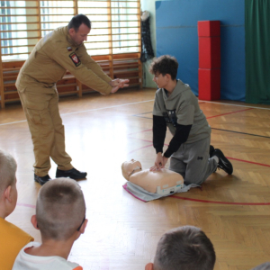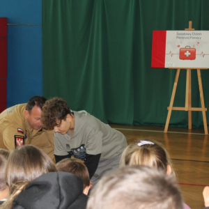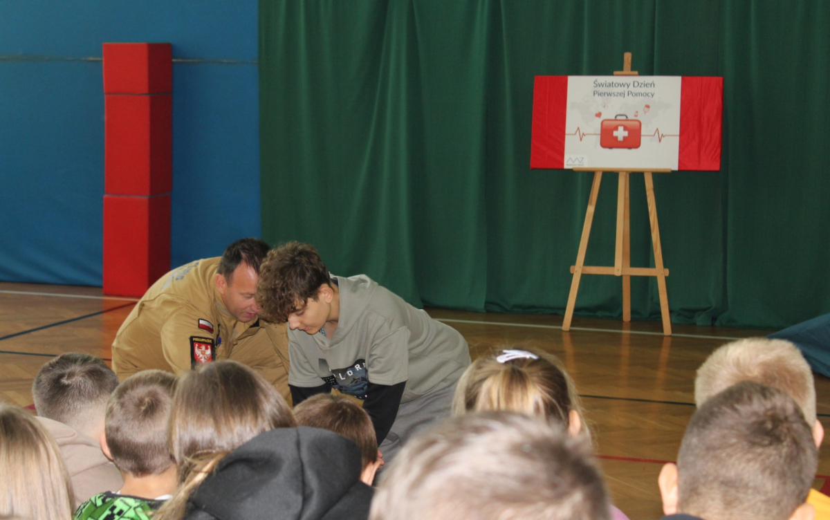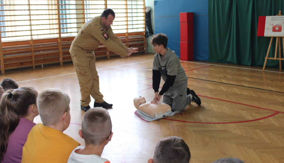 Corocznie w drugą sobotę września, z inicjatywy Międzynarodowego Ruchu Czerwonego Krzyża i Czerwonego Półksiężyca, obchodzony jest Światowy Dzień Pierwszej Pomocy, ustanowiony w 2000 roku. Święto to ma na celu uświadomienie jak ważna jest umiejętność udzielenia pierwszej pomocy. Należy pamiętać, że pierwsza pomoc jest niezbędna nie tylko w sytuacjach kryzysowych, ale również w zwykłym, codziennym życiu. Każdy może nauczyć się udzielać pierwszej pomocy, a te proste, ale niezwykle cenne umiejętności, mogą decydować o ludzkim życiu i zdrowiu. Z racji tegoż święta w naszej szkole, w dniu 26 września 2025 roku, odbyło się spotkanie ze strażakami z Państwowej Straży Pożarnej z Jasła. Panowie strażacy w sposób merytoryczny przekazali uczniom wiedzę na temat zasad udzielania pierwszej pomocy w nagłych przypadkach takich jak zatrzymanie akcji serca, zasłabnięcie czy utrata przytomności. Uczniowie mieli możliwość zastosować wiedzę w praktyce poprzez działania na fantomie oraz na samych sobie poprzez ćwiczenia udzielania pierwszej pomocy./A.S-K./