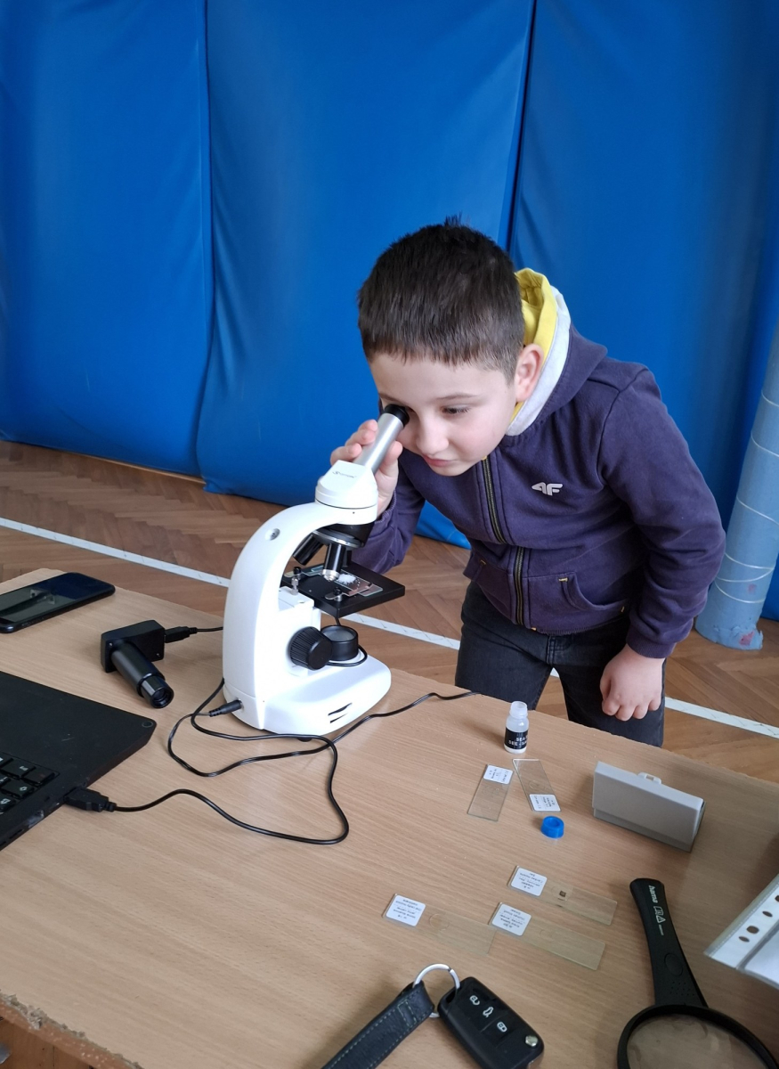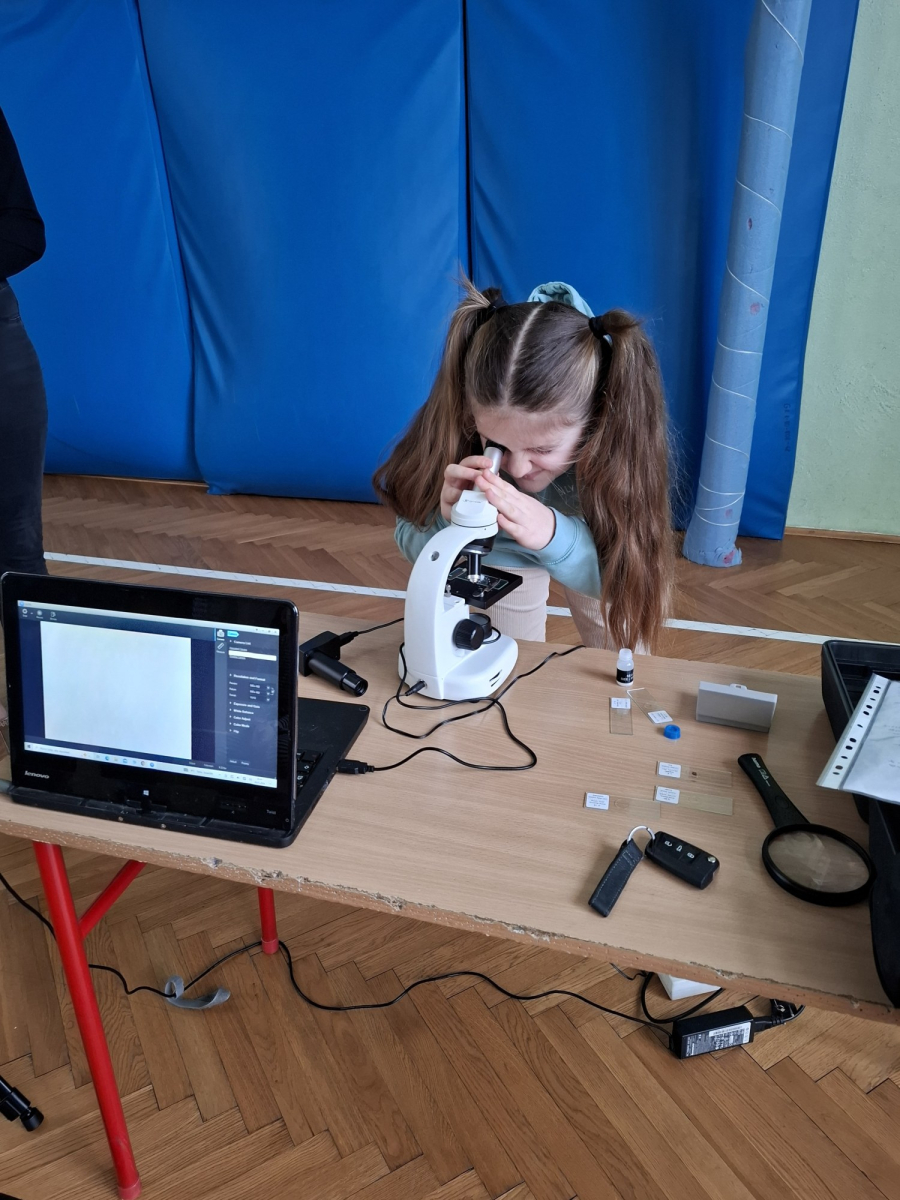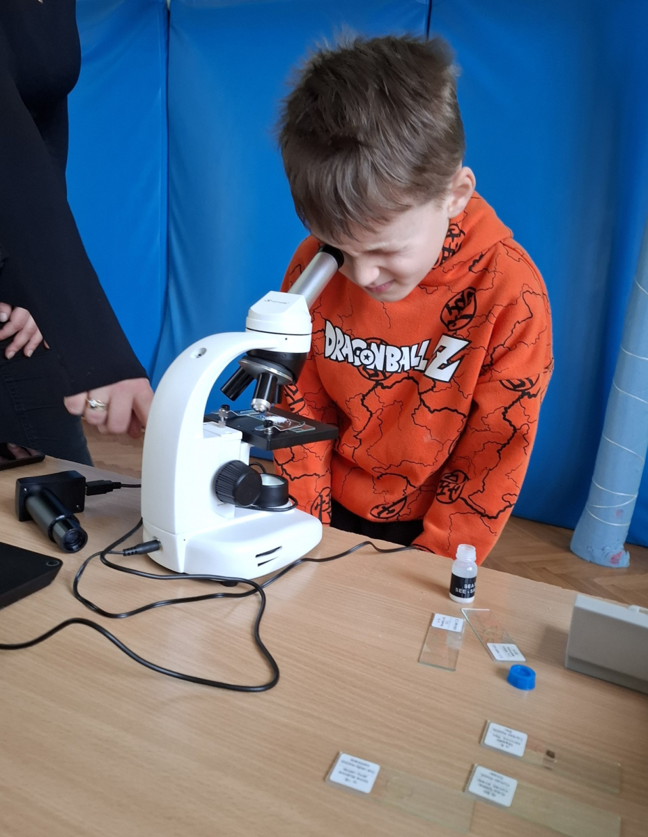 26.01.2026 roku uczniowie klas I-V oraz dzieci z oddziału przedszkolnego uczestniczyły w warsztatach pt. "Odkrywcy Mikroświata". Podczas spotkania uczniowie poznali budowę mikroskopu i obserwowali świat w skali mikro. Zajęcia połączone były z nauką i praktycznym działaniem.