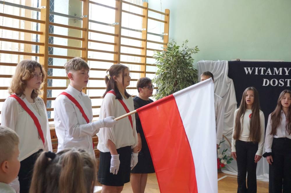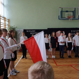 Następnie nasi uczniowie zaprezentowali akademię upamiętniającą 234. rocznicę uchwalenia Konstytucji 3 Maja. Przedstawienie uświetniły pieśni i wiersze majowe w wykonaniu naszych uczniów, którzy mieli okazję popisać się swoimi talentami artystycznymi. Nasi wychowankowie przedstawili genezę Ustawy Rządowej 3 Maja, która odegrała ogromną rolę w historii naszej Ojczyzny, jako pierwsza w Europie a druga na świecie ustawa zasadnicza. Konstytucja 3 Maja wprowadziła trójpodział władzy, decyzje na sejmie zapadały większością głosów, gwarantowano tolerancję religijną. Pomimo upadku Polski w 1795 roku pamięć o Konstytucji 3 Maja nie zaginęła, dodając otuchy kolejnym pokoleniom Polaków walczących o odzyskanie niepodległości. Kiedy kolejne powstania narodowe kończyły się klęską, kiedy gasły nadzieje na wolną Ojczyznę, pozostawała jeszcze pamięć o chlubnych dniach z polskiej przeszłości. Od lat Święto Konstytucji 3 Maja należy do najuroczyściej obchodzonych polskich świąt narodowych. Nasi uczniowie z dużym zaangażowaniem i w ciekawy sposób przedstawili wydarzenia historyczne podkreślając ich wpływ na teraźniejszość, a także zachęcając do czerpania wartości i patriotycznych wzorców z przeszłości.