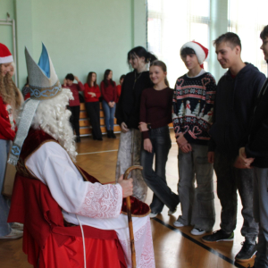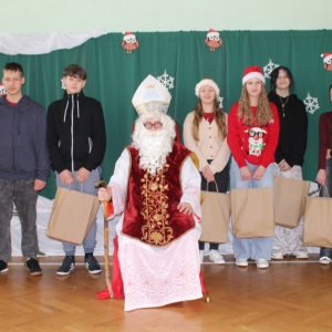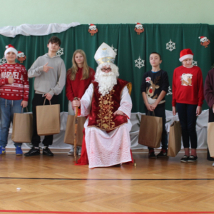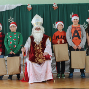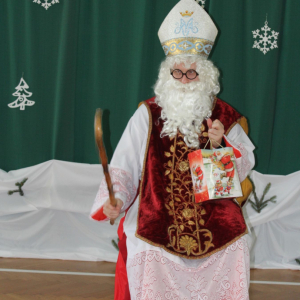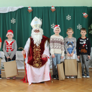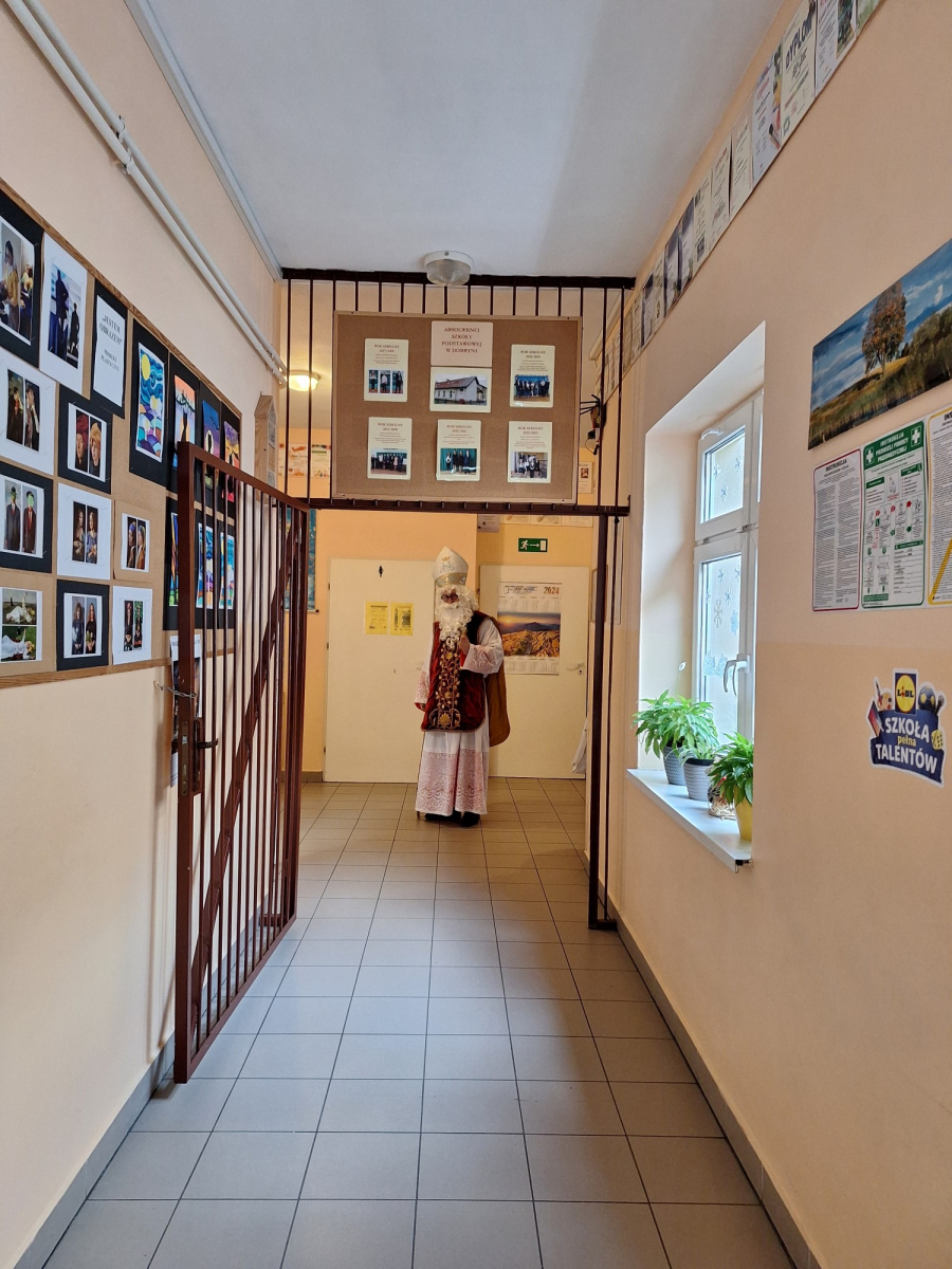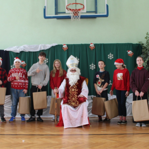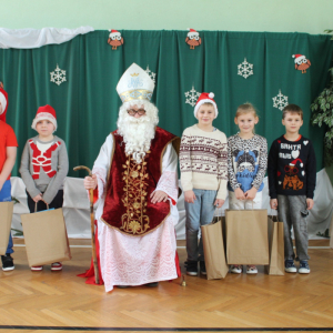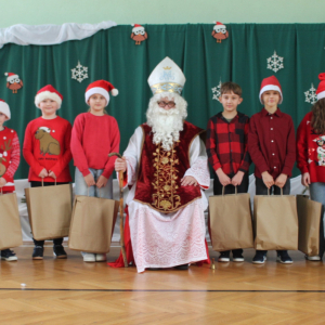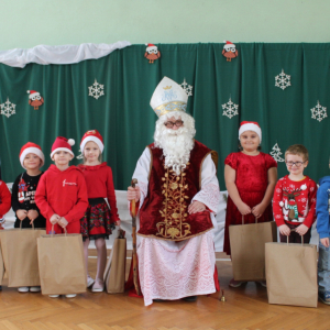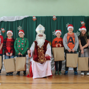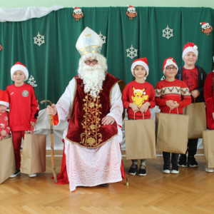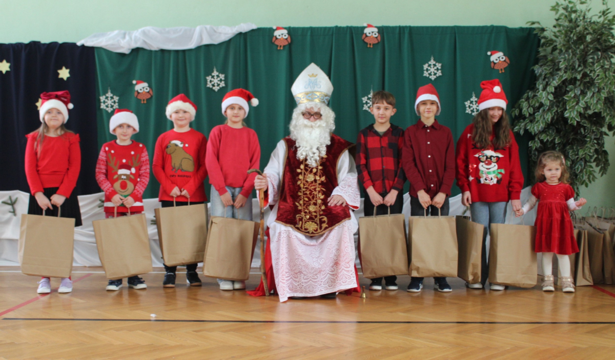 Mikołajki to święto obchodzone na cześć świętego Mikołaja - biskupa Miry. Według wierzeń, tego wyjątkowego dnia Mikołaj obdarowuje wszystkie grzeczne dzieci prezentami. Dzisiaj, 4.12.2025 roku przyjechał także do naszej szkoły. Korytarz i wszystkie klasy były na tę okazję już świątecznie udekorowane. Podczas spotkania z Mikołajem uczniowie klas I-III oraz dzieci z oddziału przedszkolnego zaśpiewały Mikołajowi piosenki. Po występie, nasz znamienity Gość opowiedział zebranym na sali gimnastycznej z czego tak naprawdę zasłynął biskup Miry i jaka była jego historia. Następnie, aby tradycji stało się zadość - obdarował wszystkie dzieci prezentami. Nie zapomniał również o nauczycielach i pracownikach naszej szkoły, i na ręce pani dyrektor wręczył pokaźny woreczek słodyczy. Najwięcej jednak frajdy dostarczył ten wyjątkowy Gość naszym najmłodszym uczniom. Nawet ci, którzy niby nie wierzą w Mikołaja, na chwilę jakby o tym zapomnieli. No cóż, fajnie jest dostawać prezenty. Na koniec tego miłego spotkania, każda klasa zrobiła sobie pamiątkowe zdjęcia. Po latach, miło będzie powspominać.../bj/