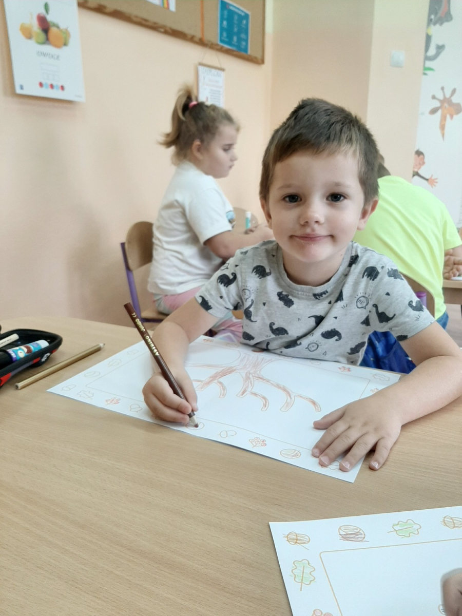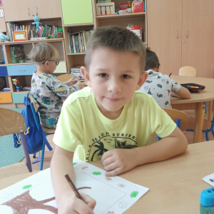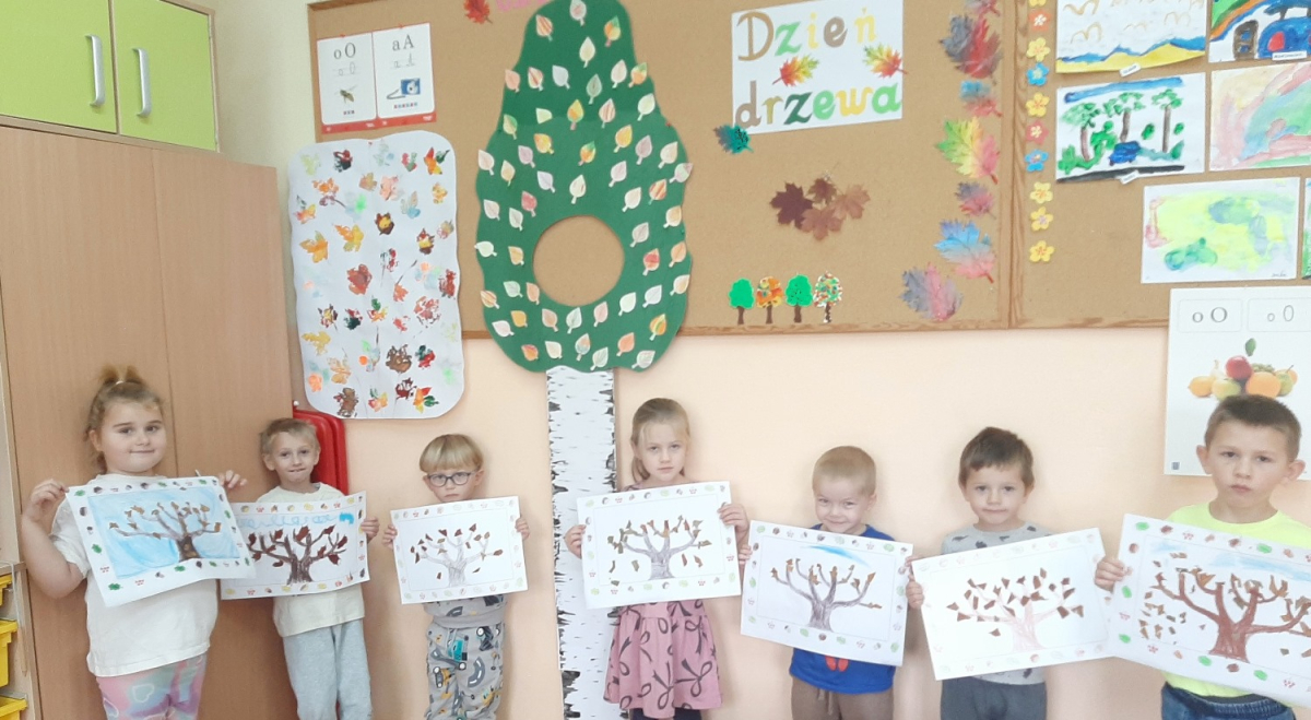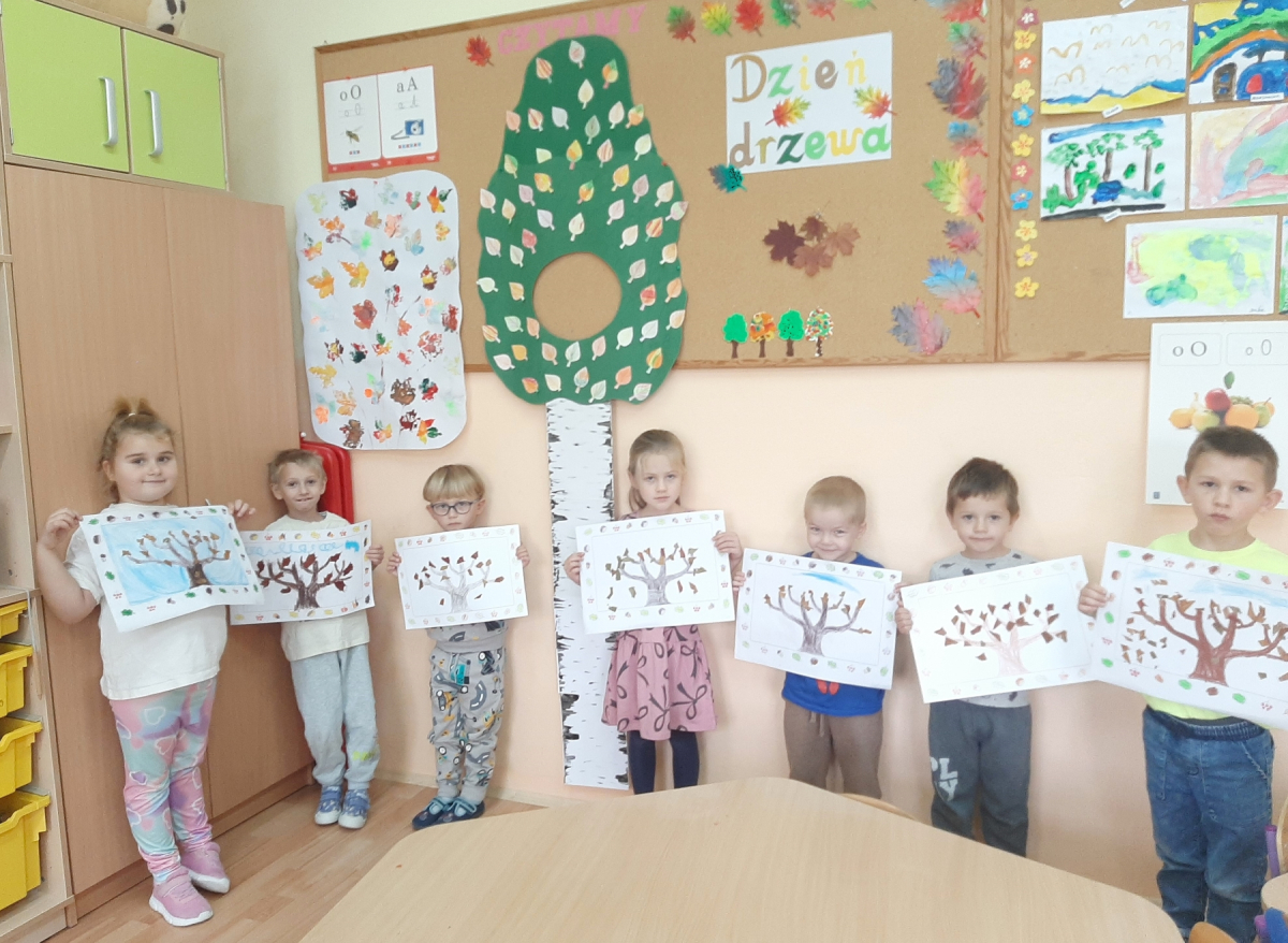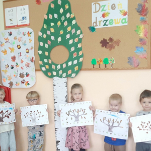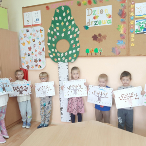 Dzień Drzewa to również doskonała okazja, aby uświadomić najmłodszym, jak ważna jest rola drzew w naszym codziennym życiu. Dzieci dowiedziały się, że drzewa są nie tylko piękną ozdobą krajobrazu – przede wszystkim są źródłem tlenu, oczyszczają powietrze, zatrzymują wodę, dają cień w upalne dni i obniżają temperaturę otoczenia. Dzięki nim możemy cieszyć się czystszym powietrzem i lepszym klimatem. Na zakończenie dnia dzieci wykonały piękne prace plastyczne przedstawiające drzewa w różnych porach roku. Ich zaangażowanie, ciekawość i radość były najlepszym dowodem na to, że warto od najmłodszych lat uczyć szacunku do przyrody i odpowiedzialności za środowisko.