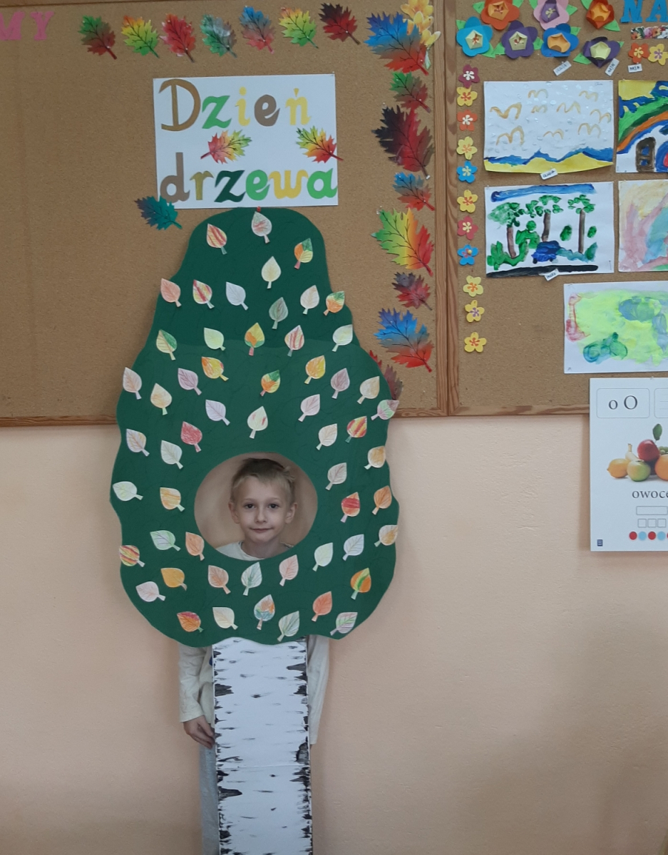 8.10.2025 roku w oddziale przedszkolnym naszej szkoły obchodziliśmy wyjątkowe święto – Dzień Drzewa. To ważna okazja, która przypomina nam o ogromnym znaczeniu drzew dla życia ludzi, zwierząt, przyrody i całej naszej planety. Z tej okazji odbyły się zajęcia edukacyjne, podczas których dzieci poznały budowę drzewa, etapy jego wzrastania – od nasionka aż po dorosłe, rozłożyste drzewo – oraz zmiany, jakie zachodzą w ich wyglądzie w różnych porach roku. Przedszkolaki z zaangażowaniem słuchały opowieści o drzewach, brały udział w rozmowach, oglądały ilustracje oraz uczestniczyły w zabawach tematycznych.